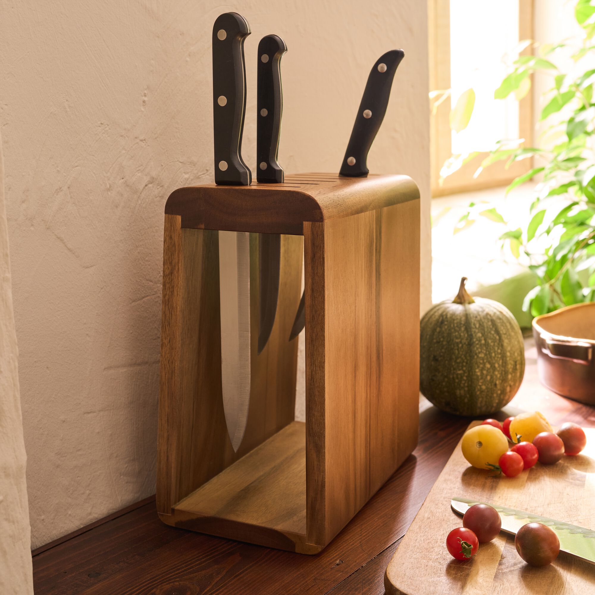 ALISO - Bloc rangement de couteaux en acacia - bois foncé