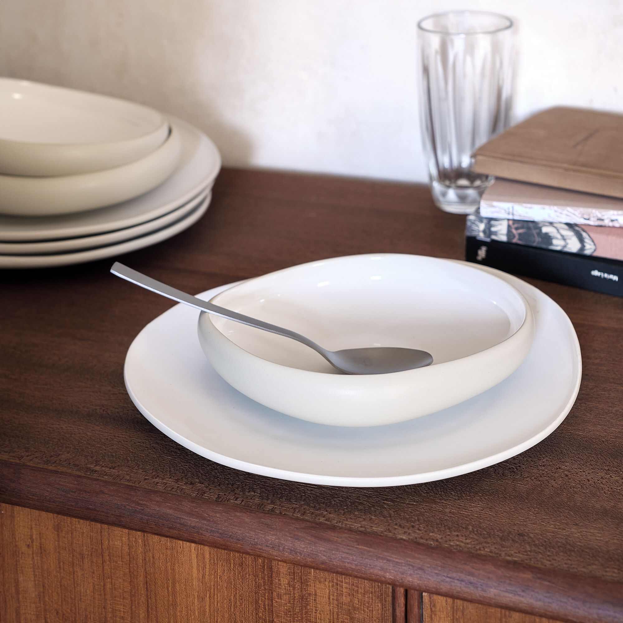 KYMA - Assiette creuse en grès D20cm - blanc ventoux