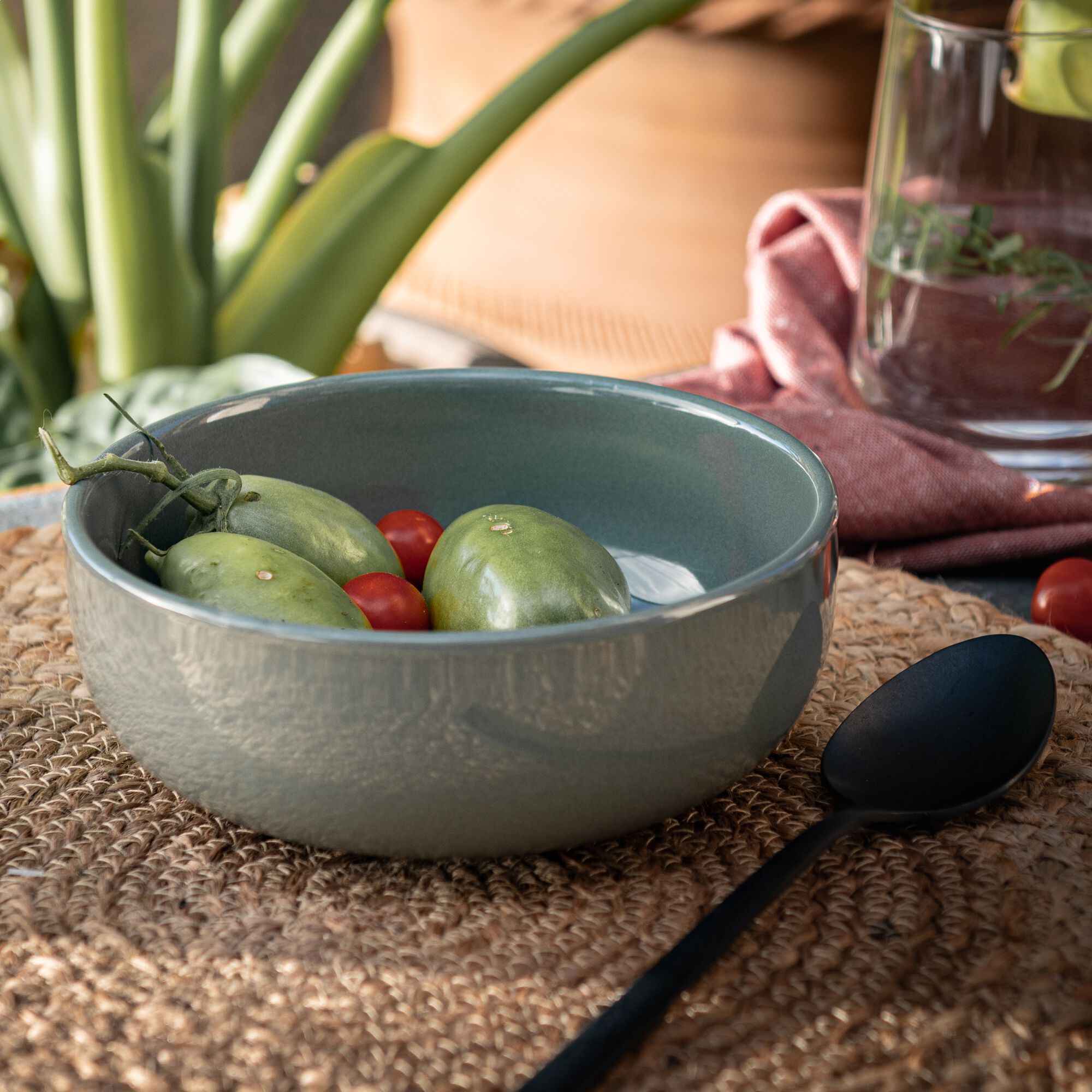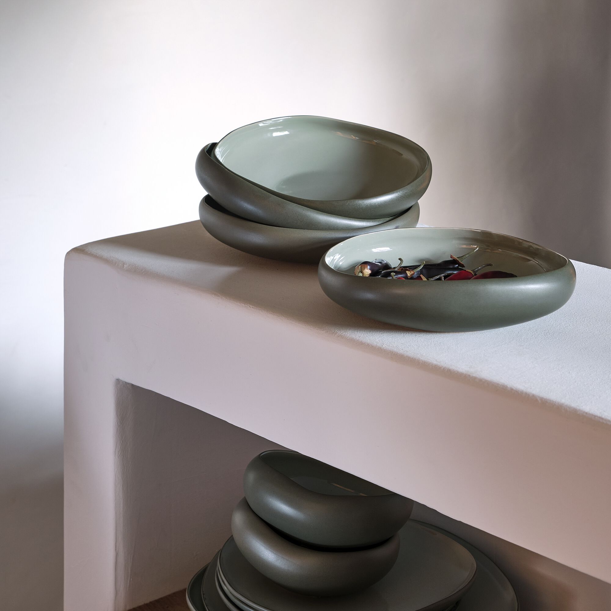 KYMA - Assiette creuse en grès D20cm - vert olivier