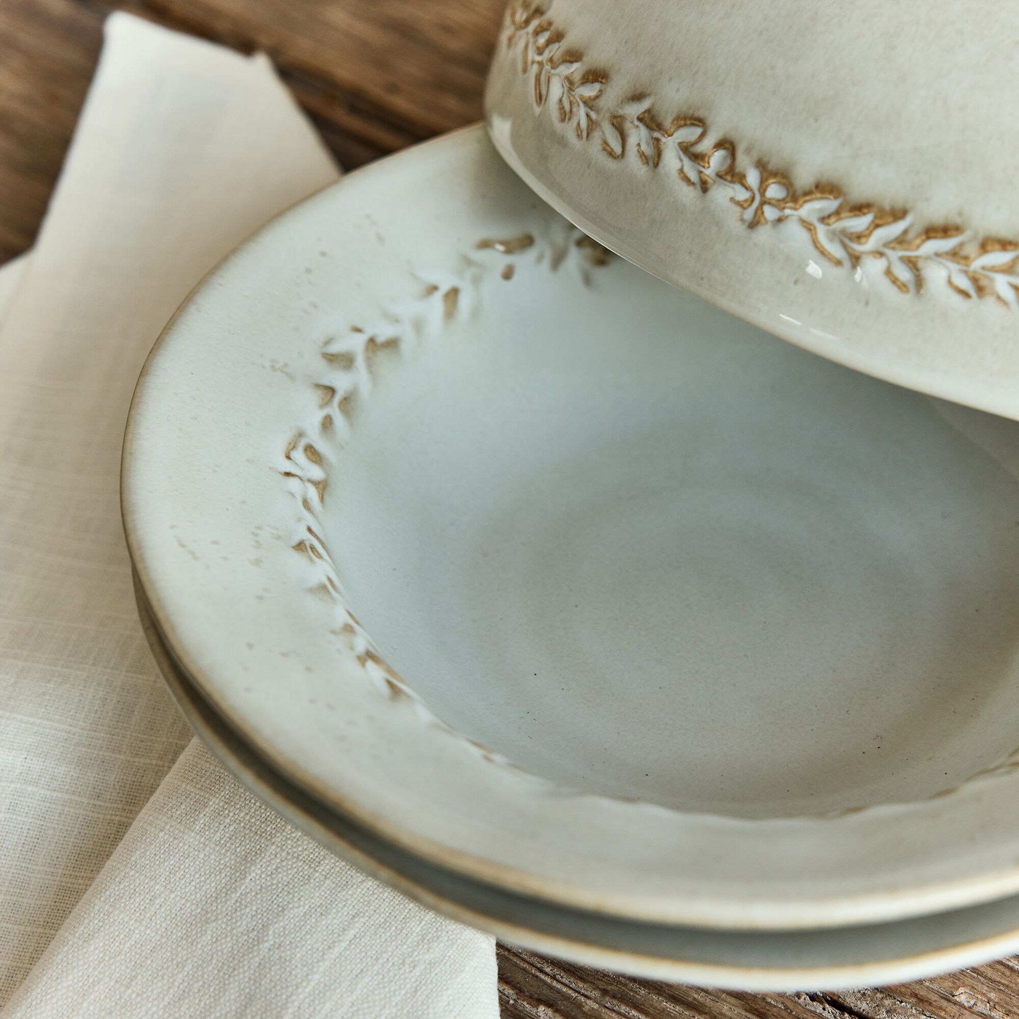 ALBA - Assiette creuse en grès D22,5cm - beige alpilles