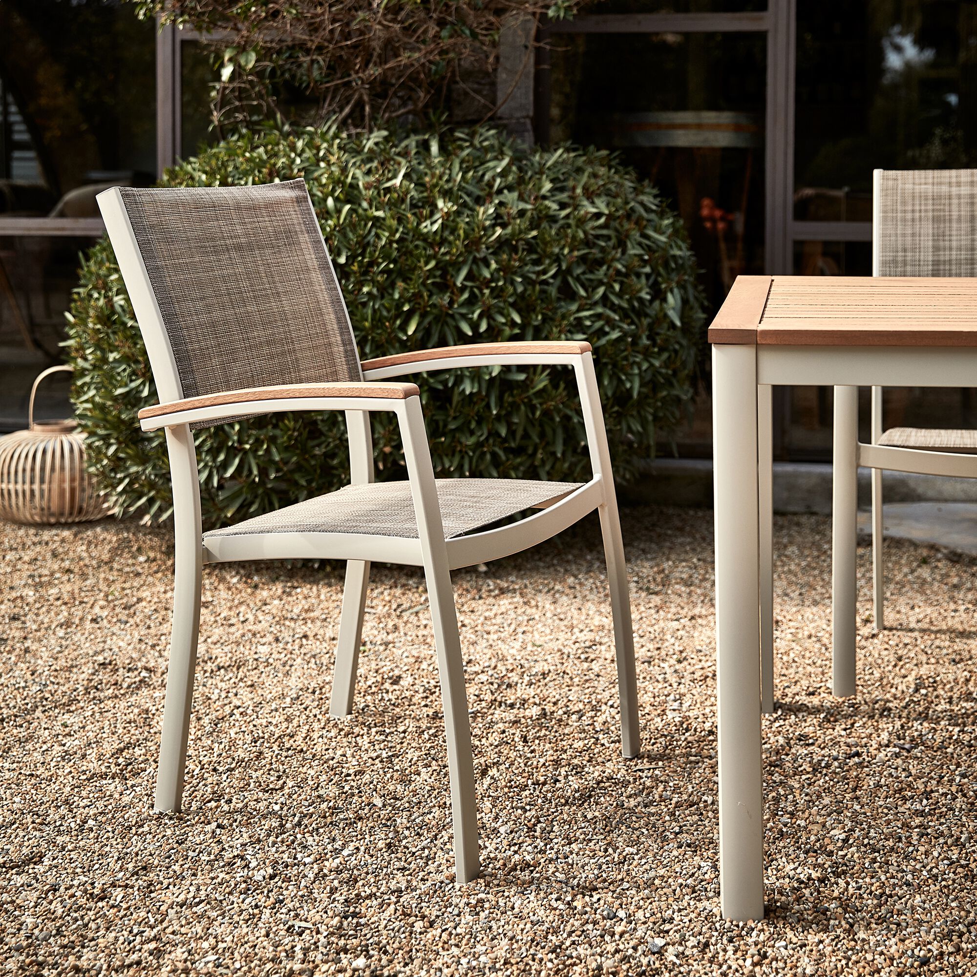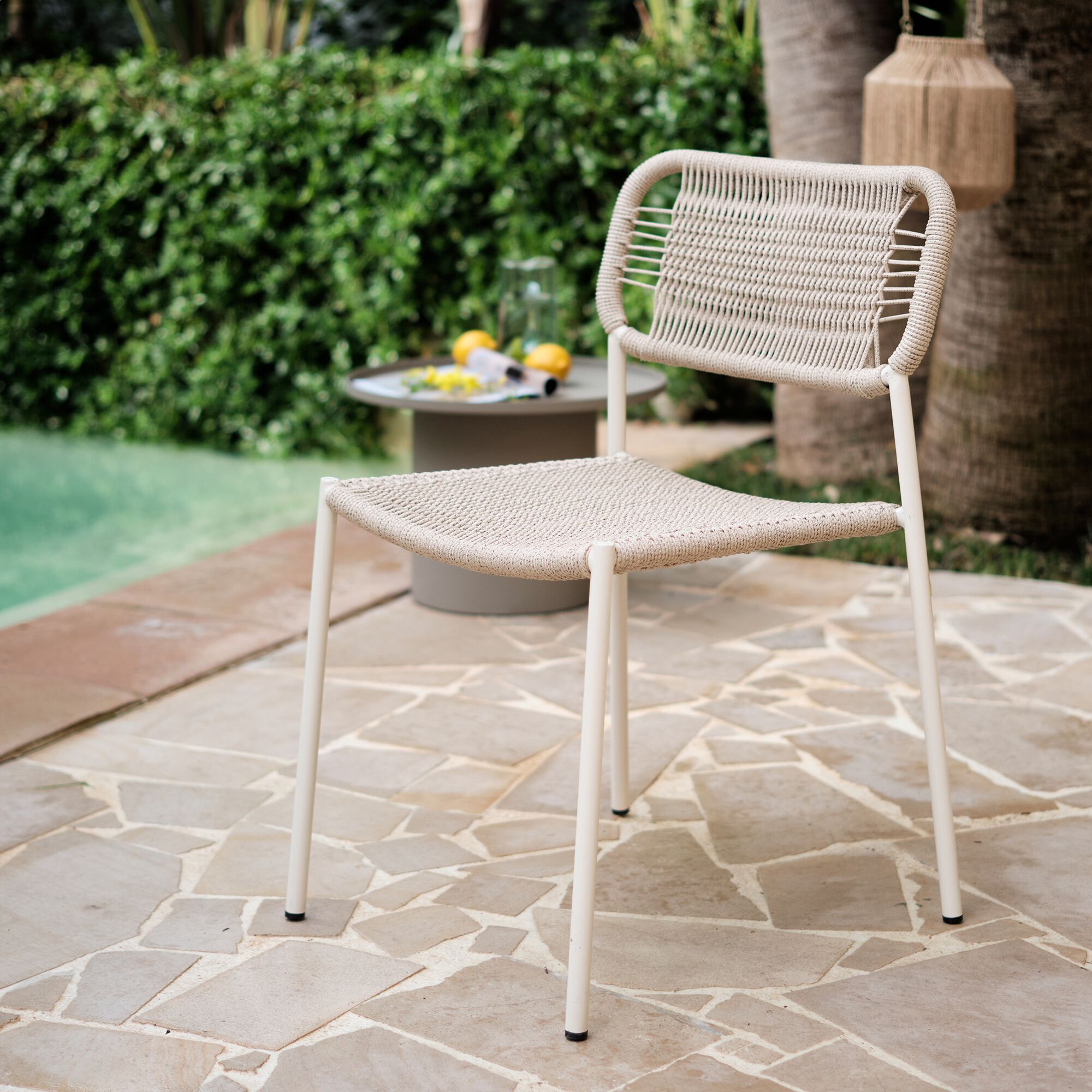 LIAMONE - Chaise de jardin empilable en acier et cordage - beige