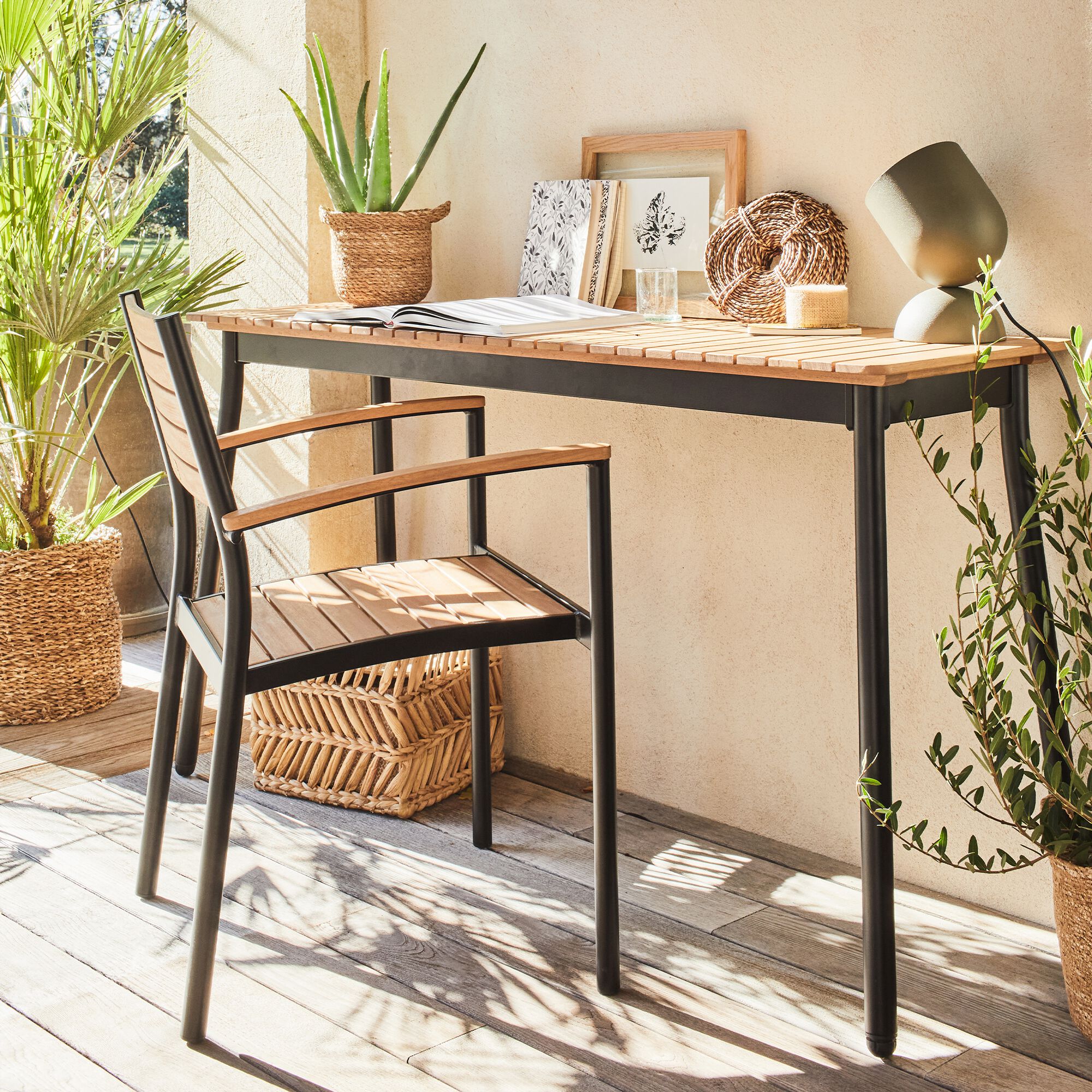CHICOULA - Chaise de jardin avec accoudoirs en acacia - bois foncé