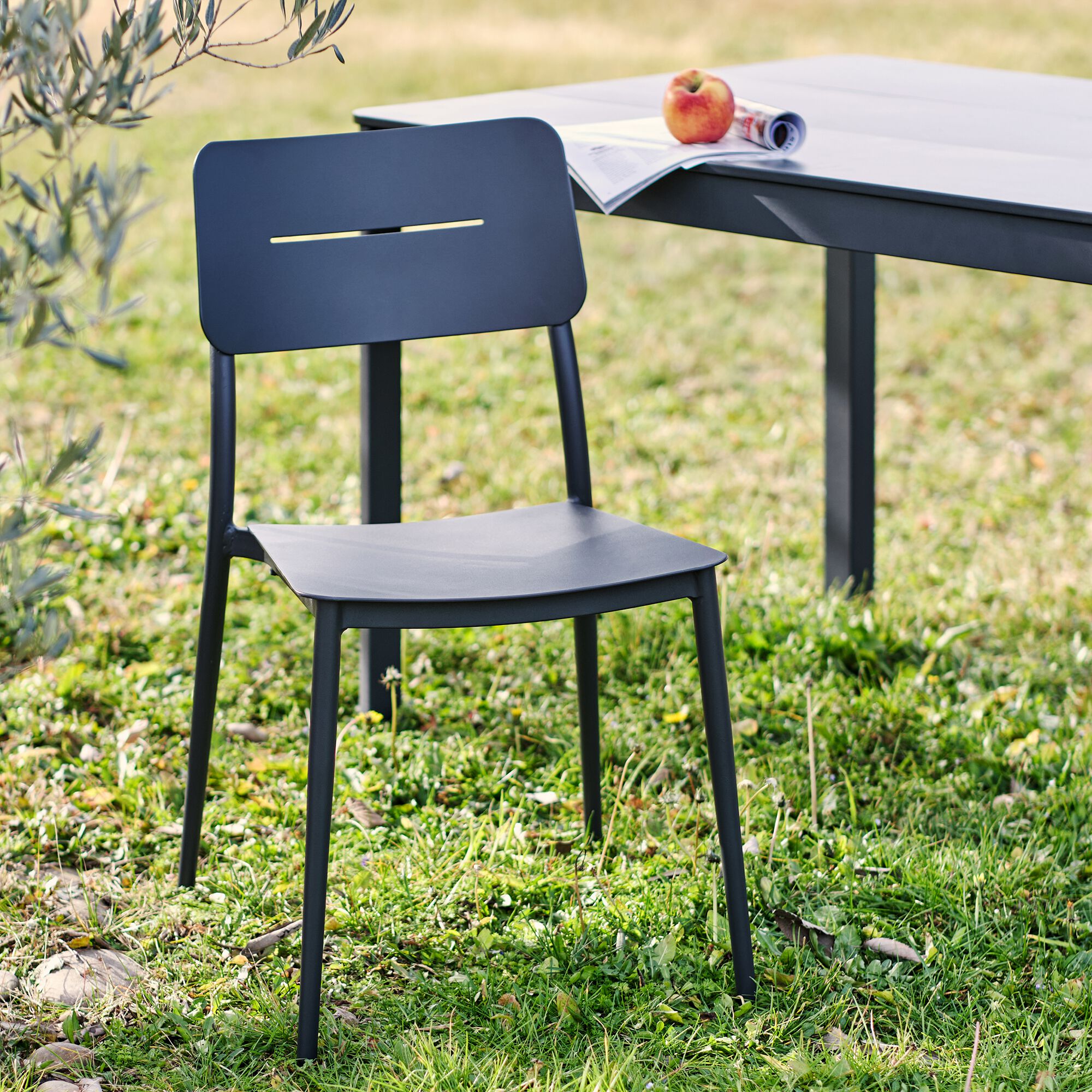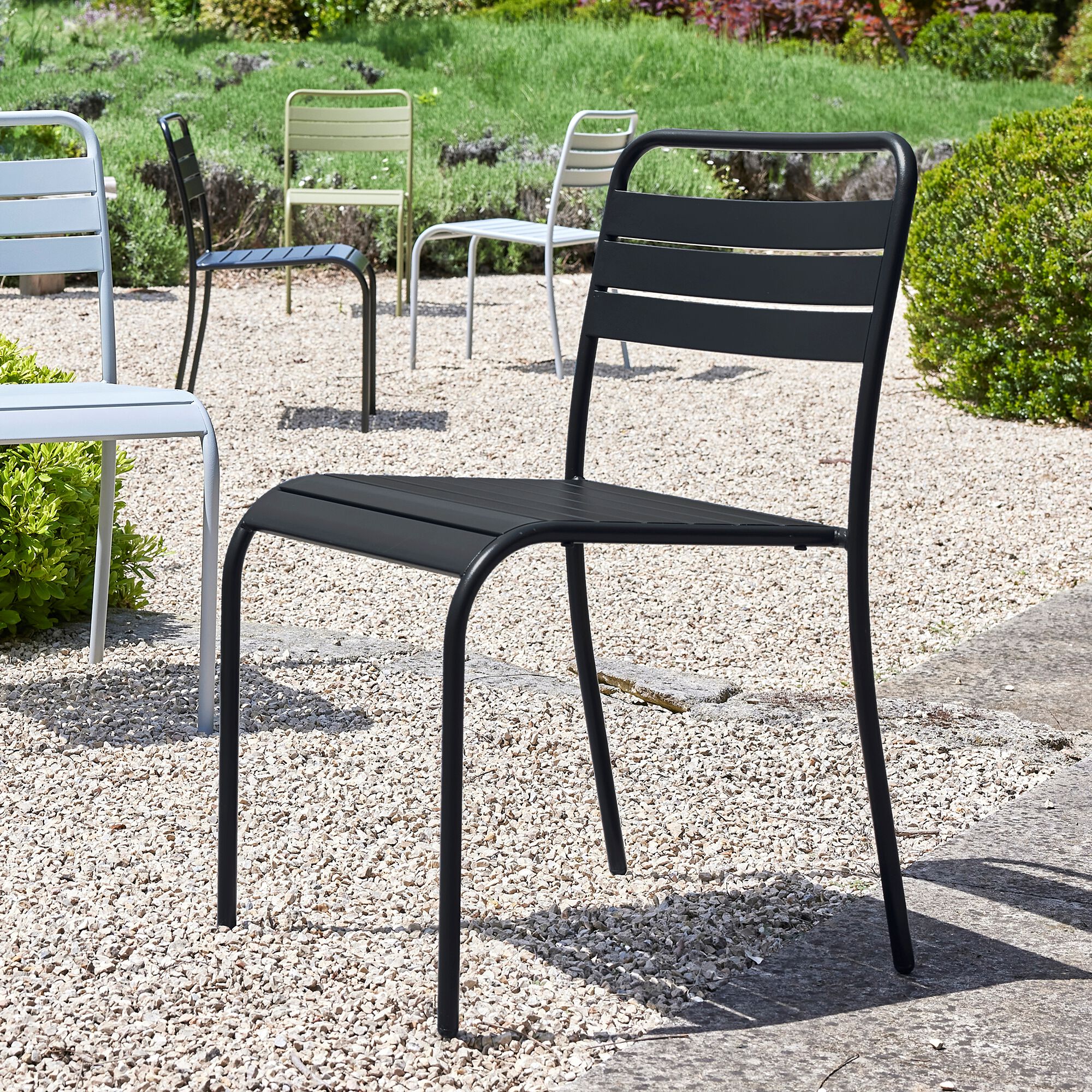 SOURIS - Chaise de jardin empilable en acier - noir