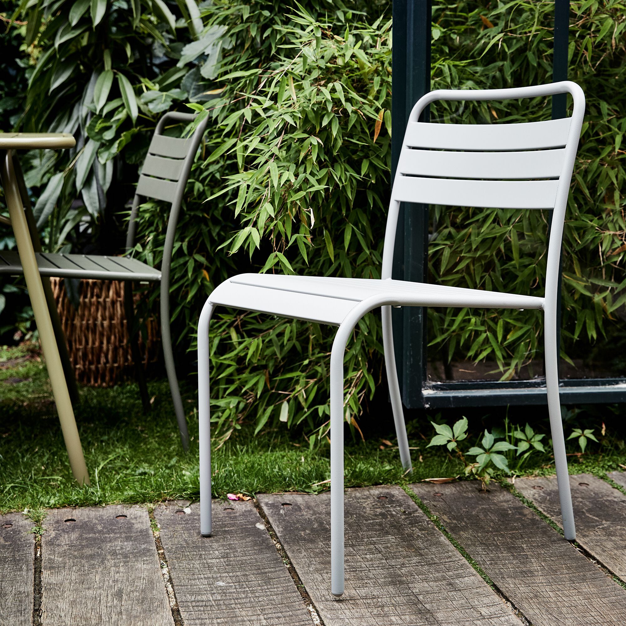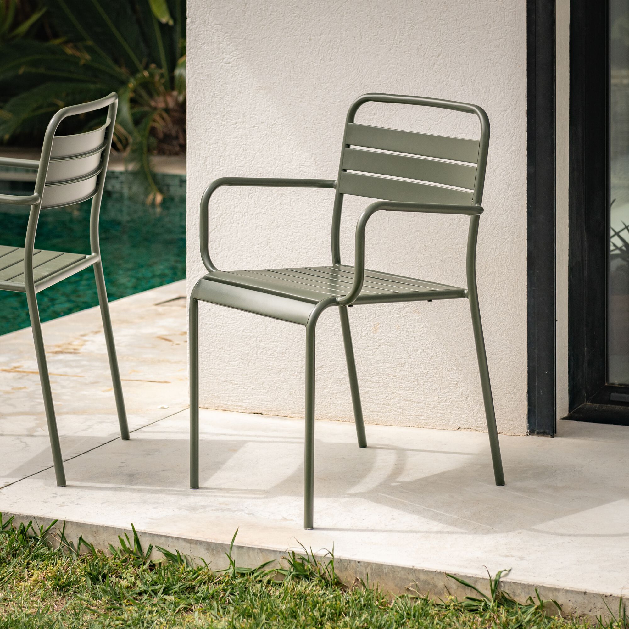SOURIS - Chaise de jardin empilable en acier - vert kaki