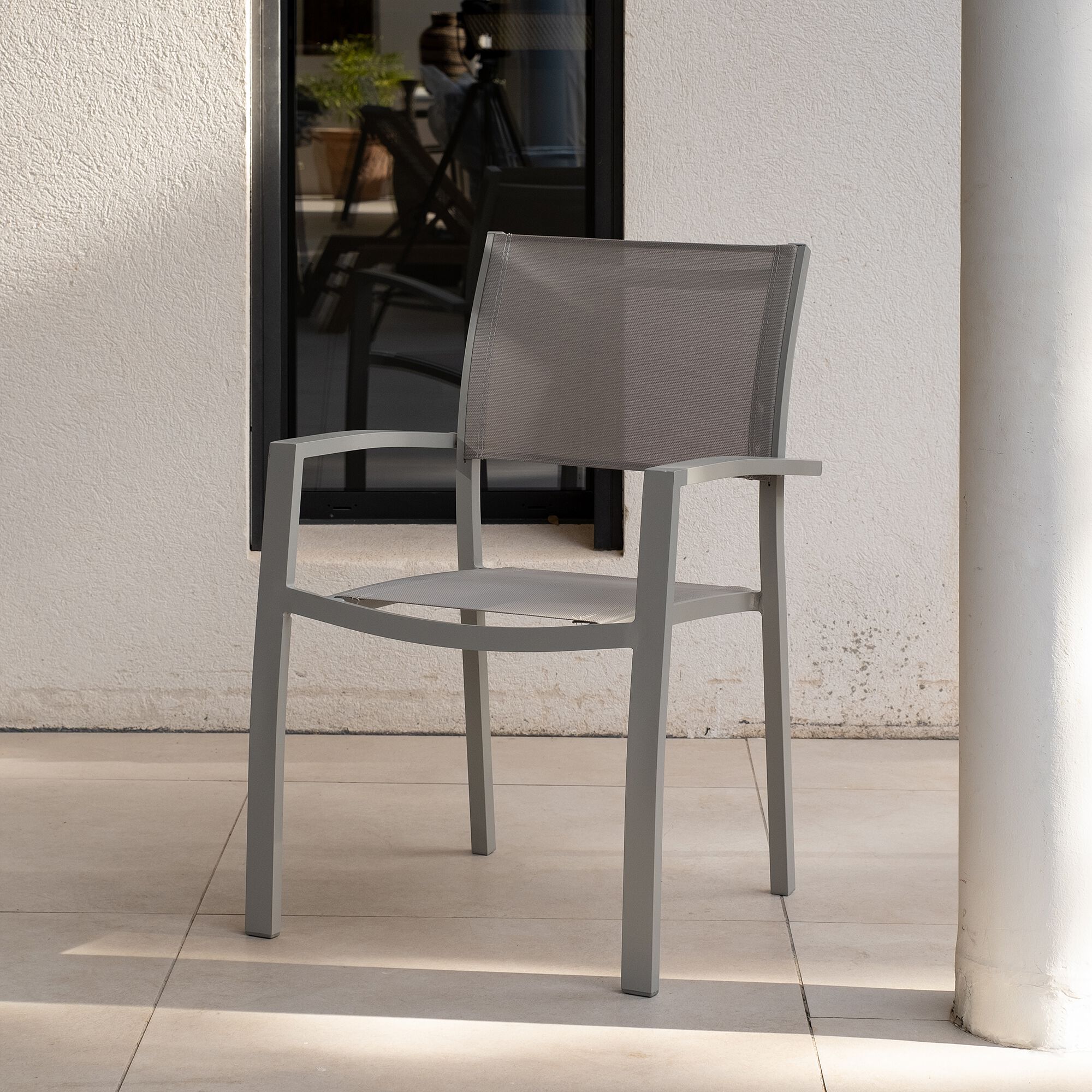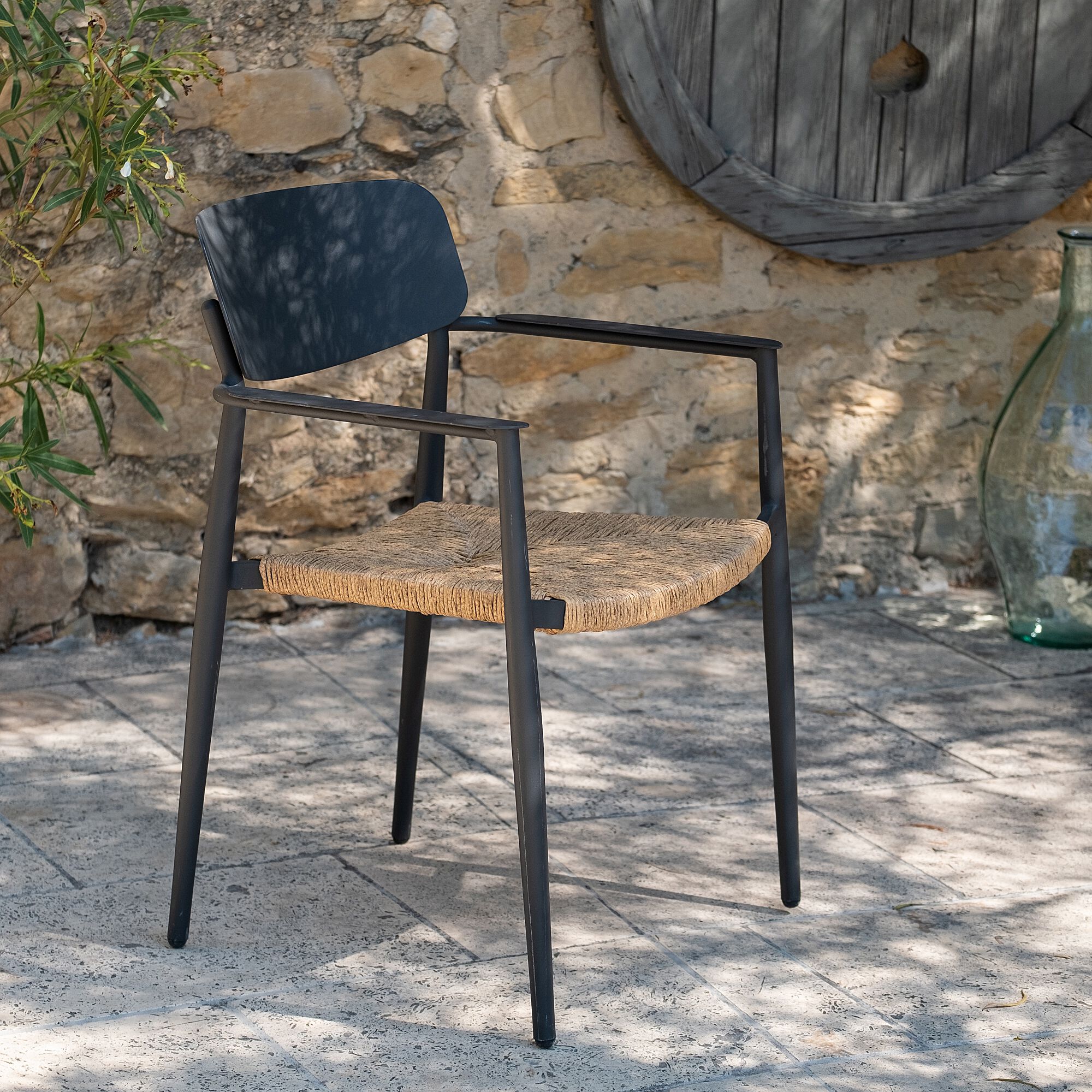 SOURIS - Chaise de jardin empilable en acier - gris vesuve
