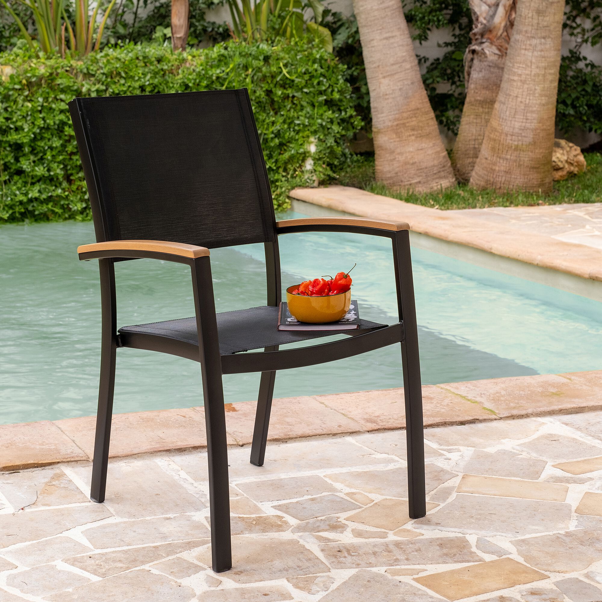 LAZZARO - Chaise de jardin avec accoudoirs en aluminium - noir