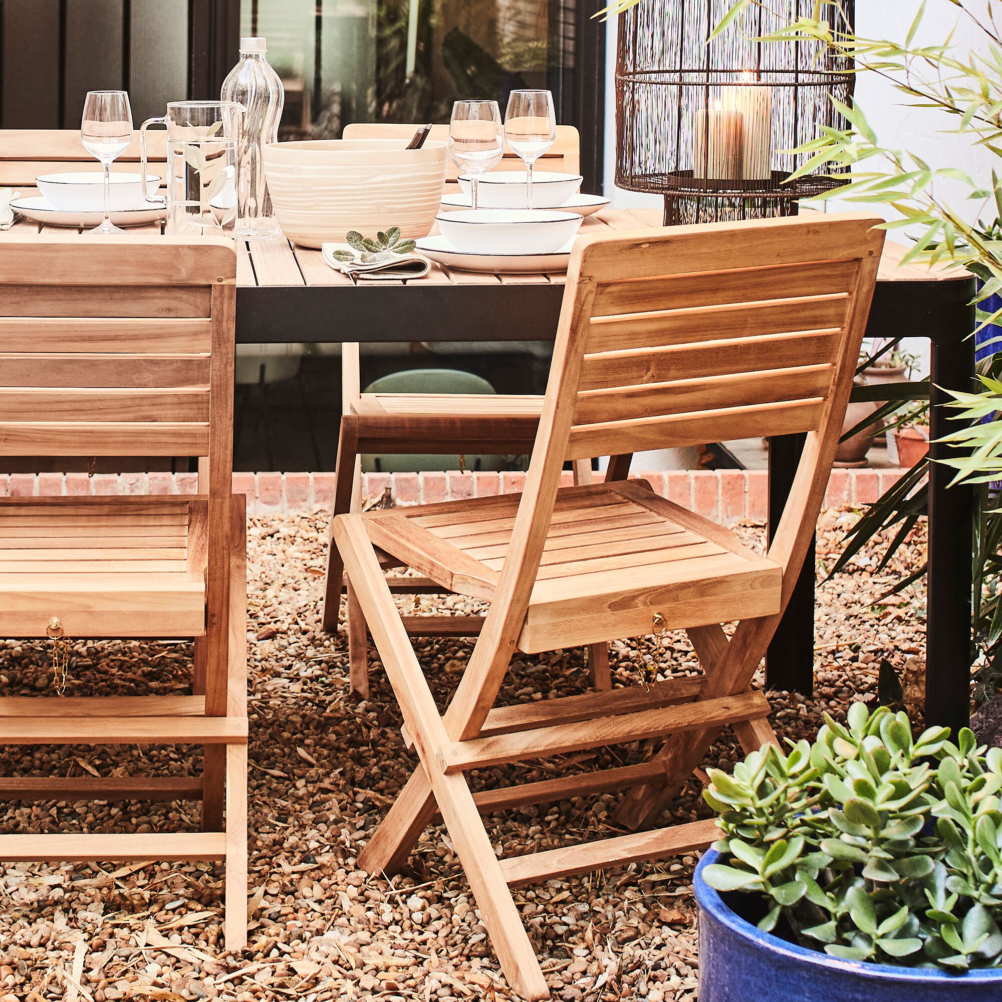 LALE - Chaise de jardin pliante en teck - bois clair