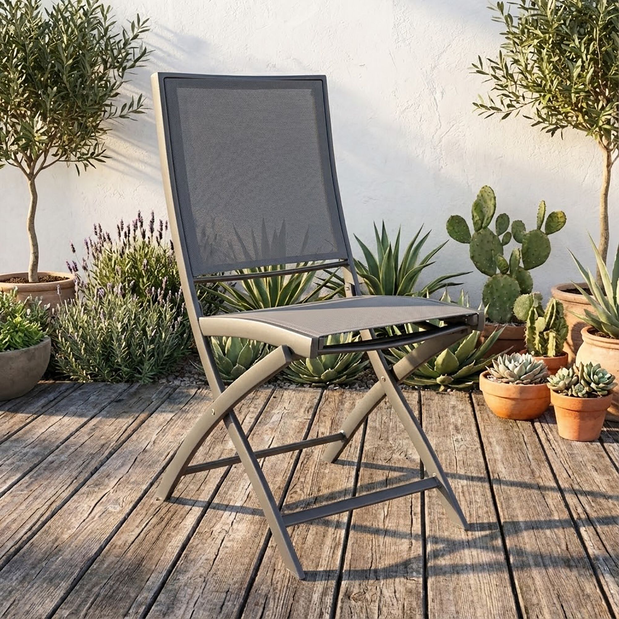 CERVIONE - Chaise de jardin pliante en acier - noir