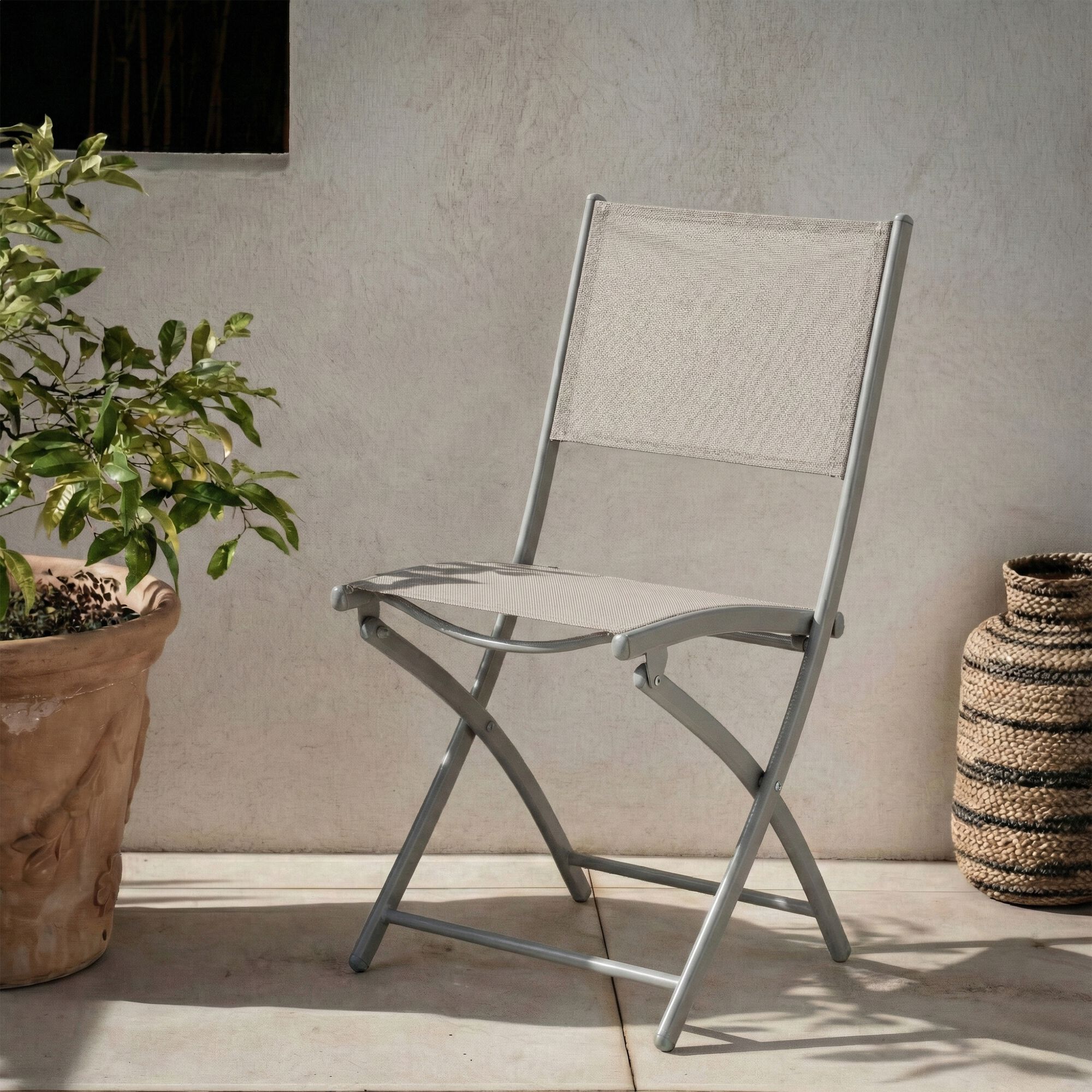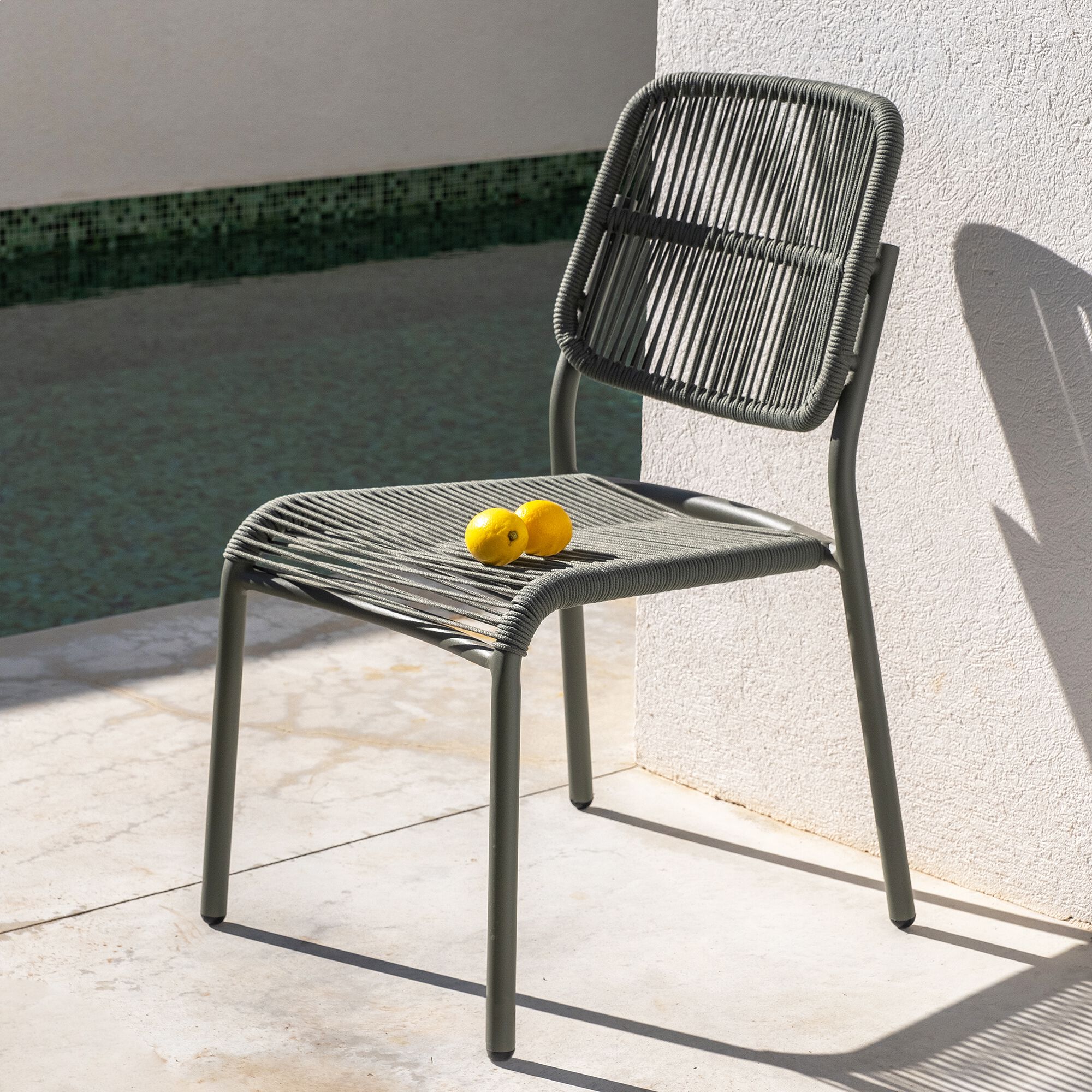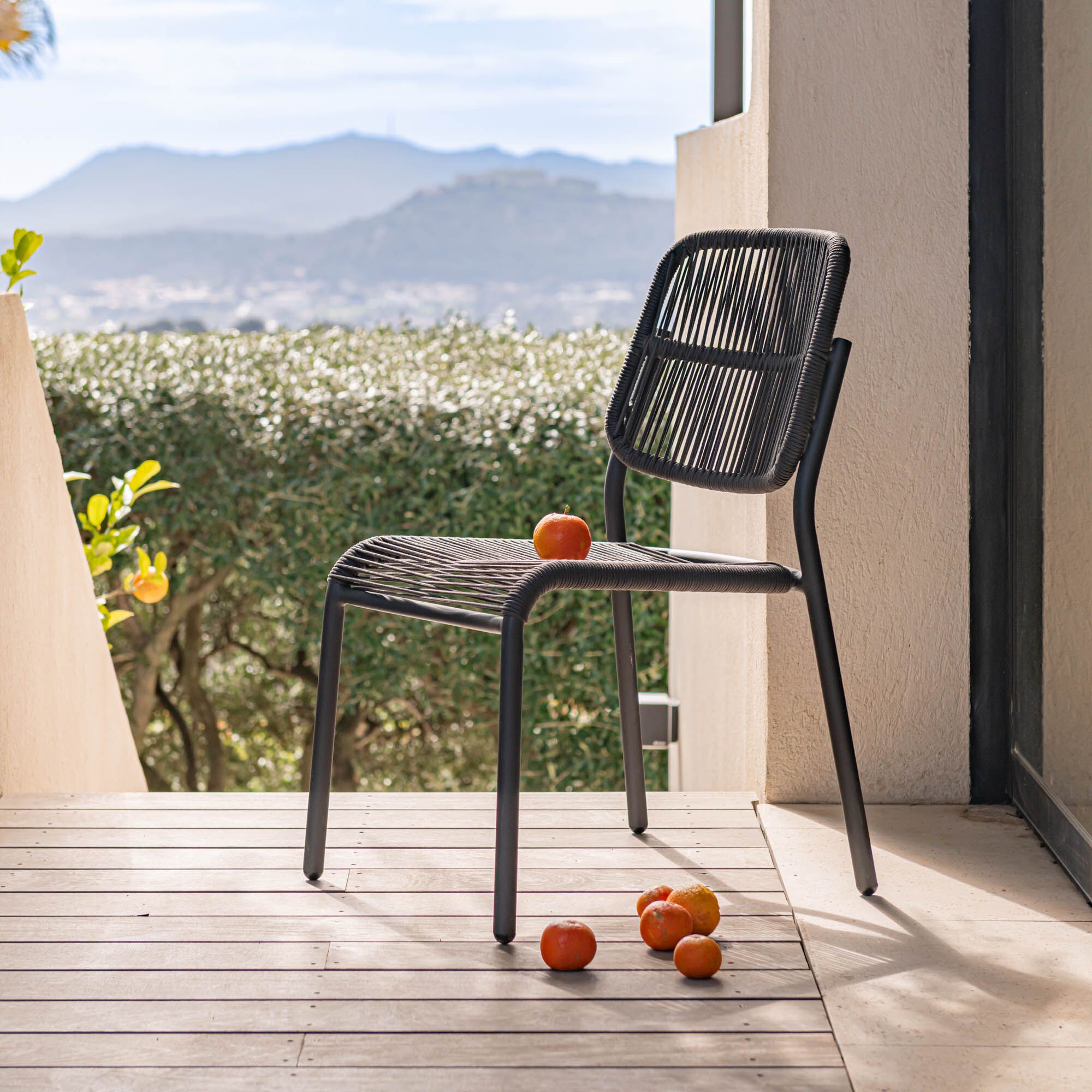 FOSSAN - Chaise de jardin en acier et corde - gris