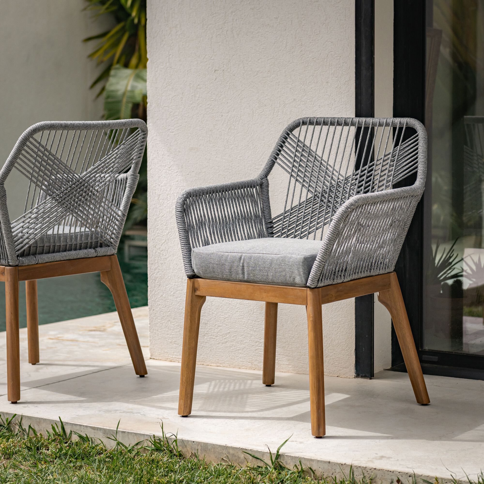 SORGUES - Chaise de jardin en acacia et assise en corde - bois foncé