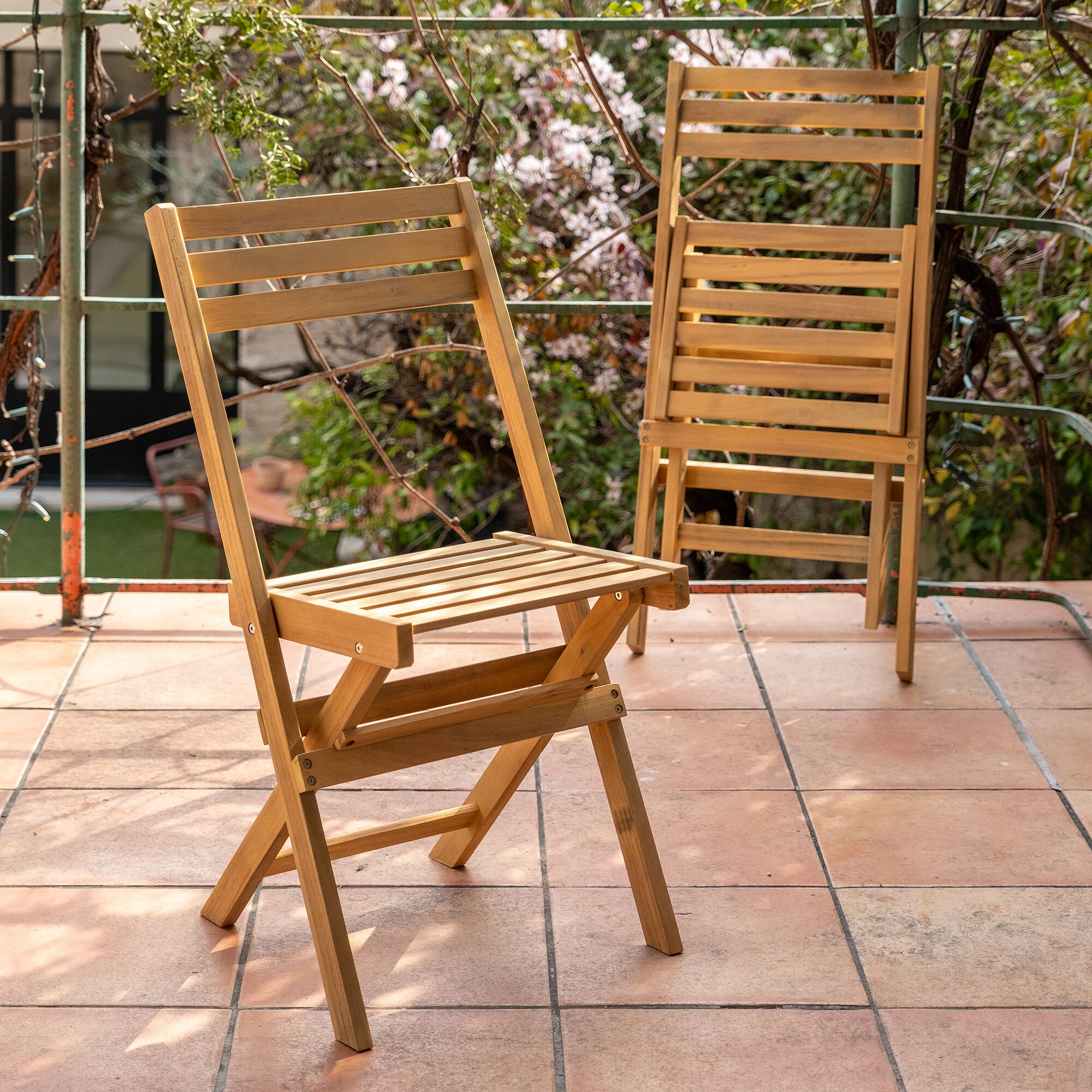 CARLOTI - Chaise de jardin pliante en acacia - bois clair