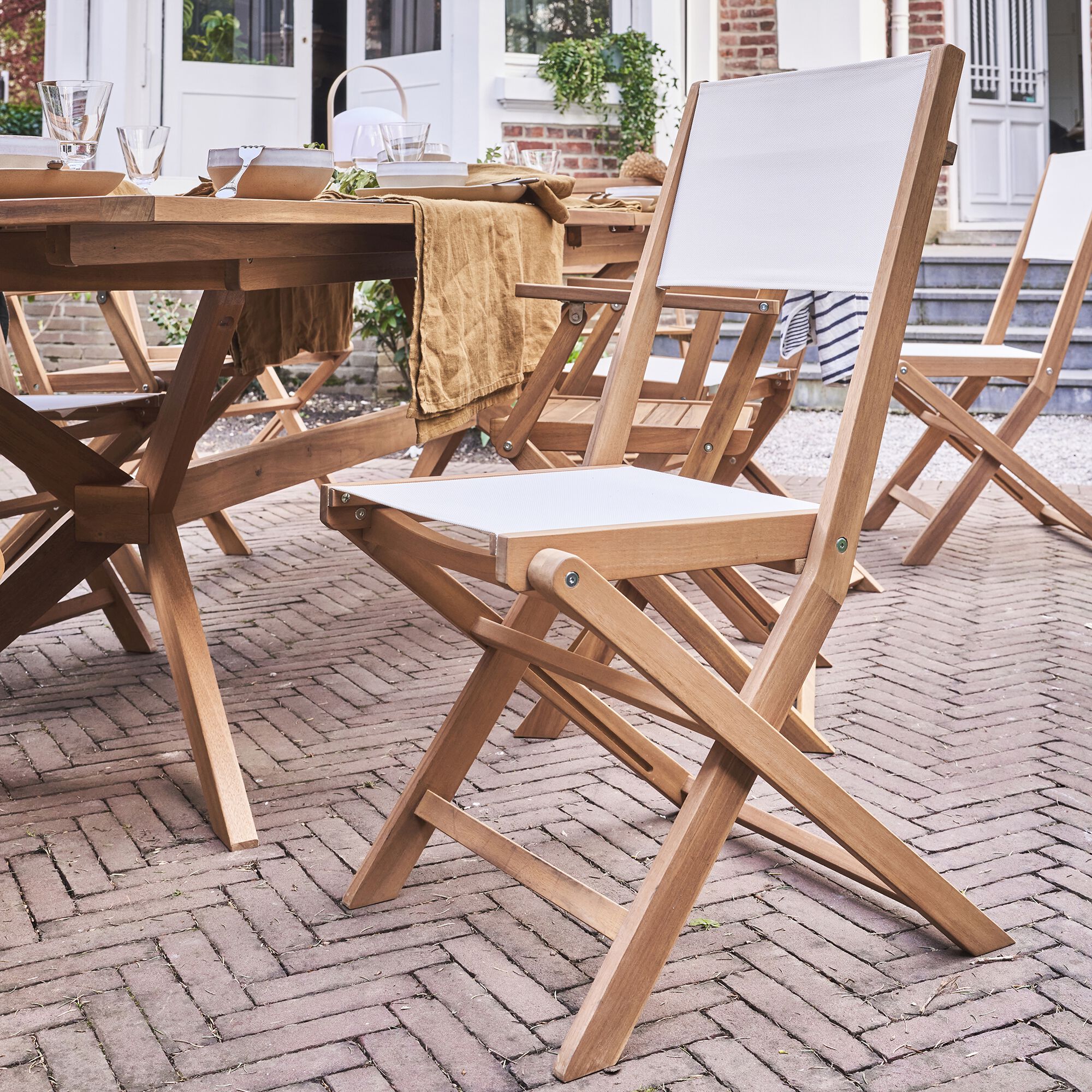 LAVISA - Chaise de jardin pliante en acacia huilé et tissu - blanc