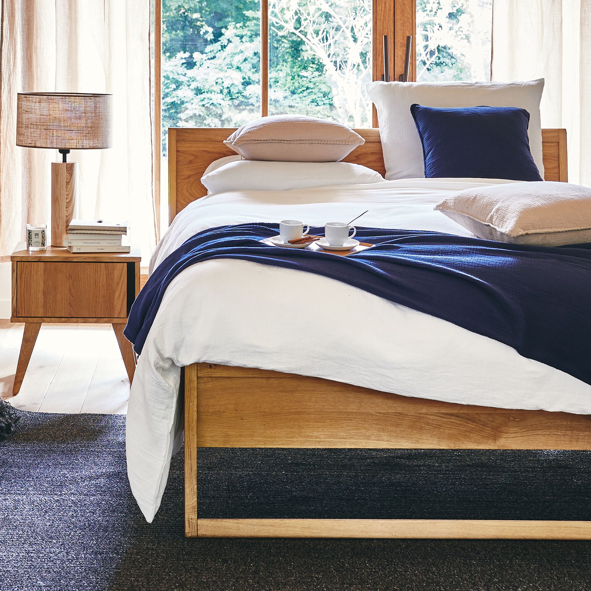 TESSALY - Couvre-lit en gaze de coton - bleu céou 230x250cm