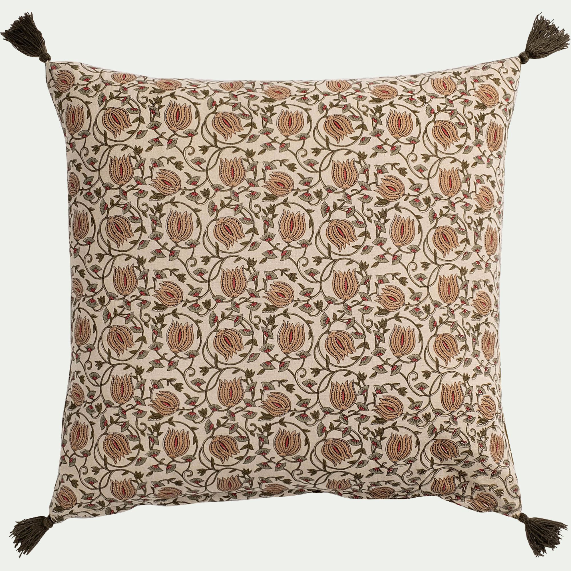 ORIS - Housse de coussin à pompons en coton 45x45cm- beige
