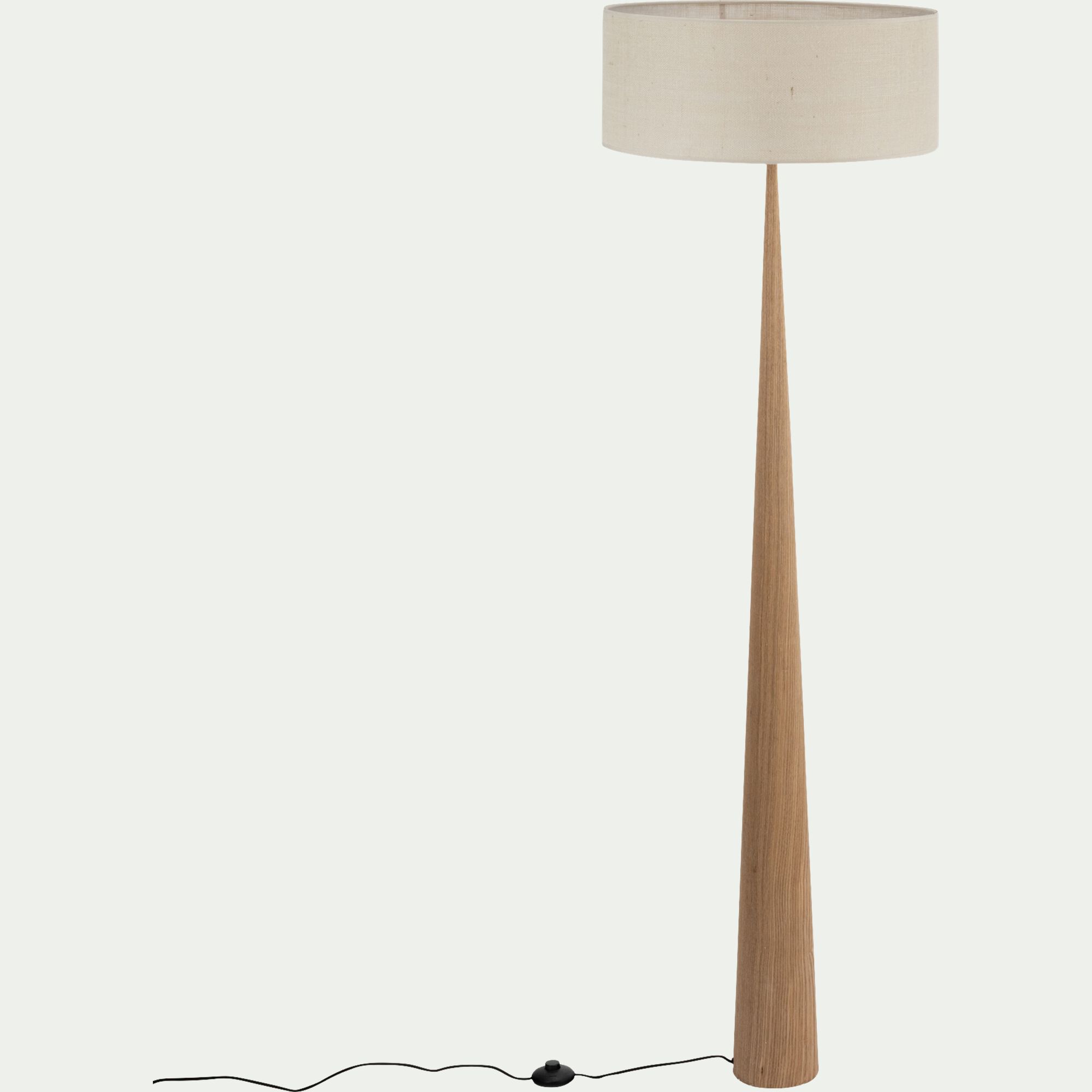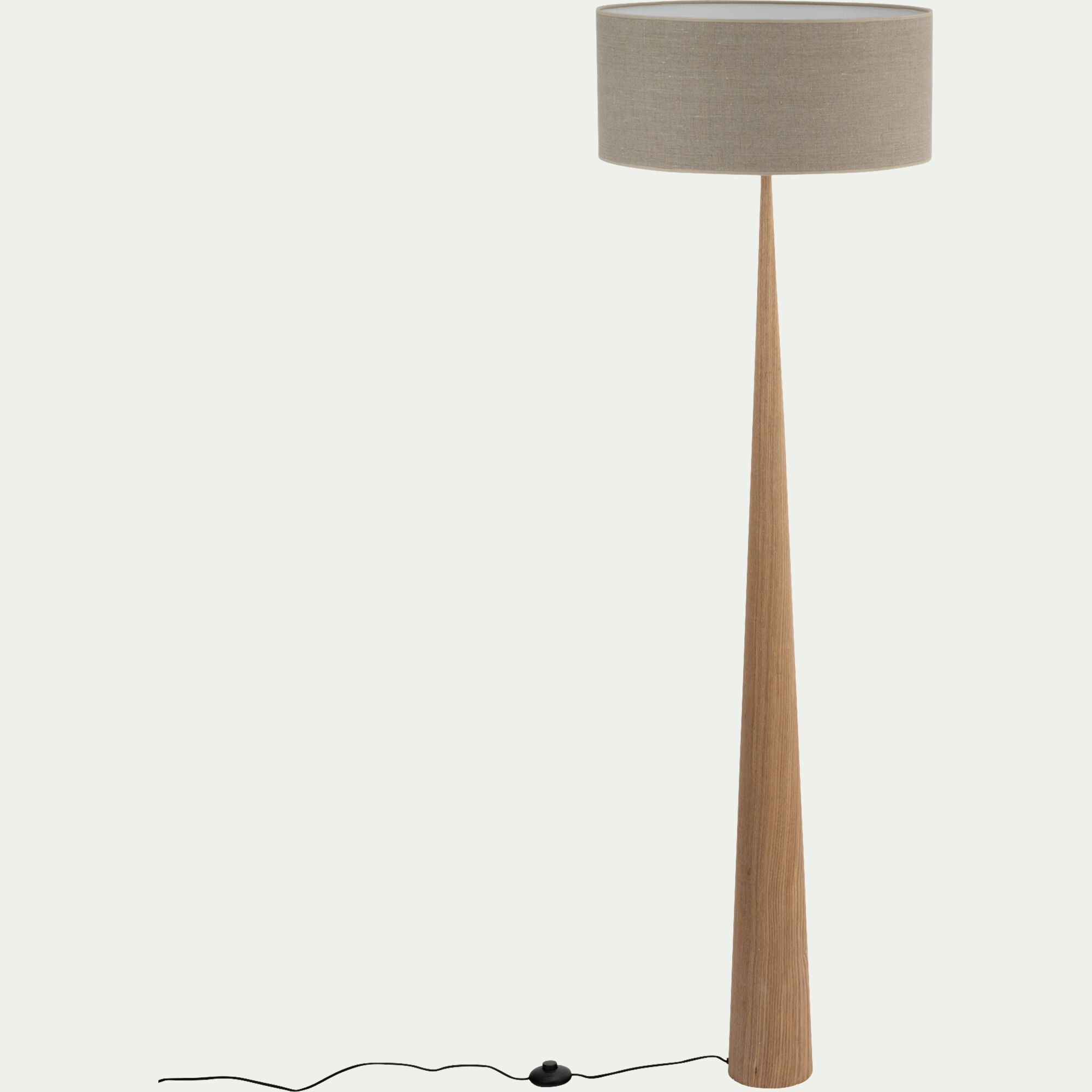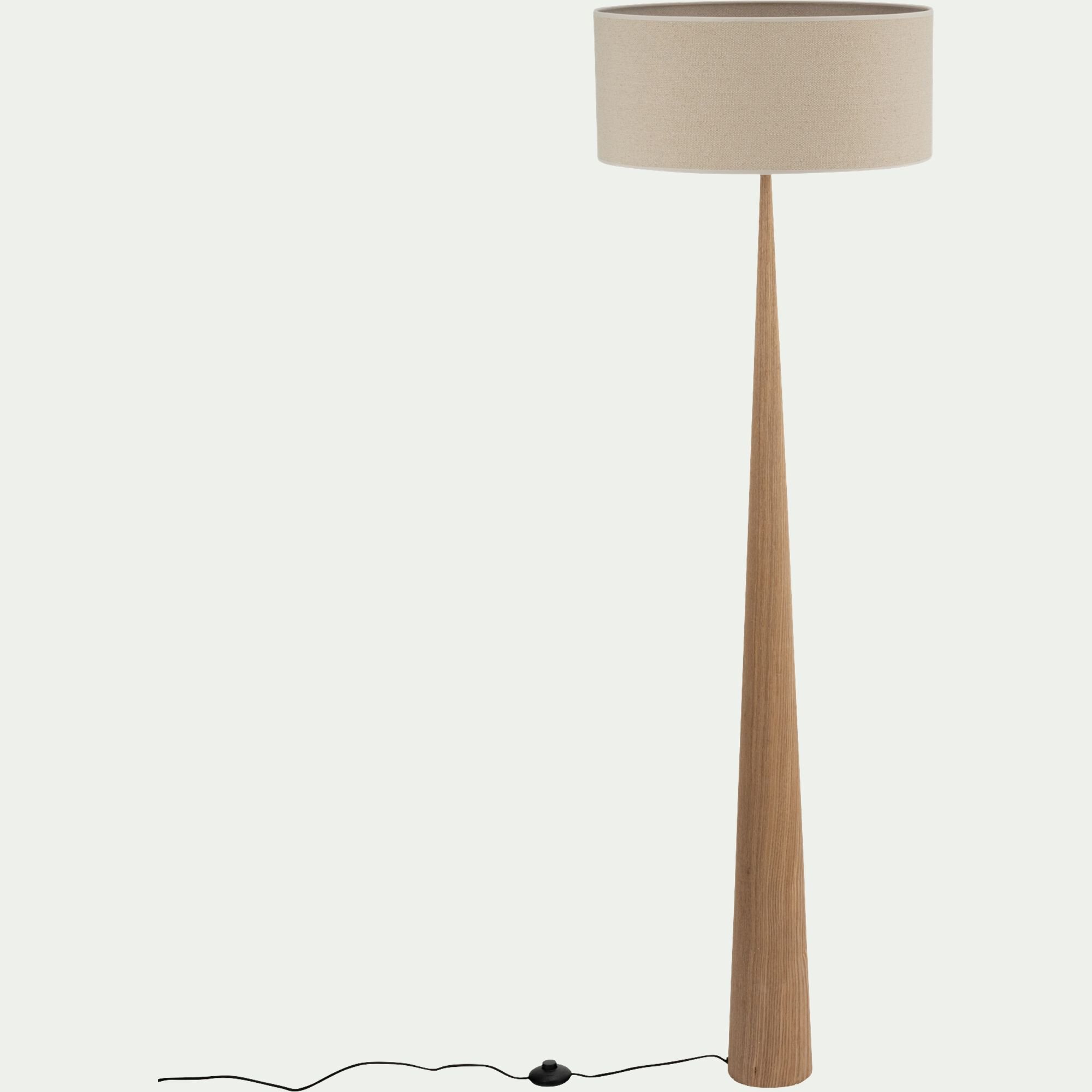 KONE - Lampadaire en métal effet bois clair et lin - gris D50cm