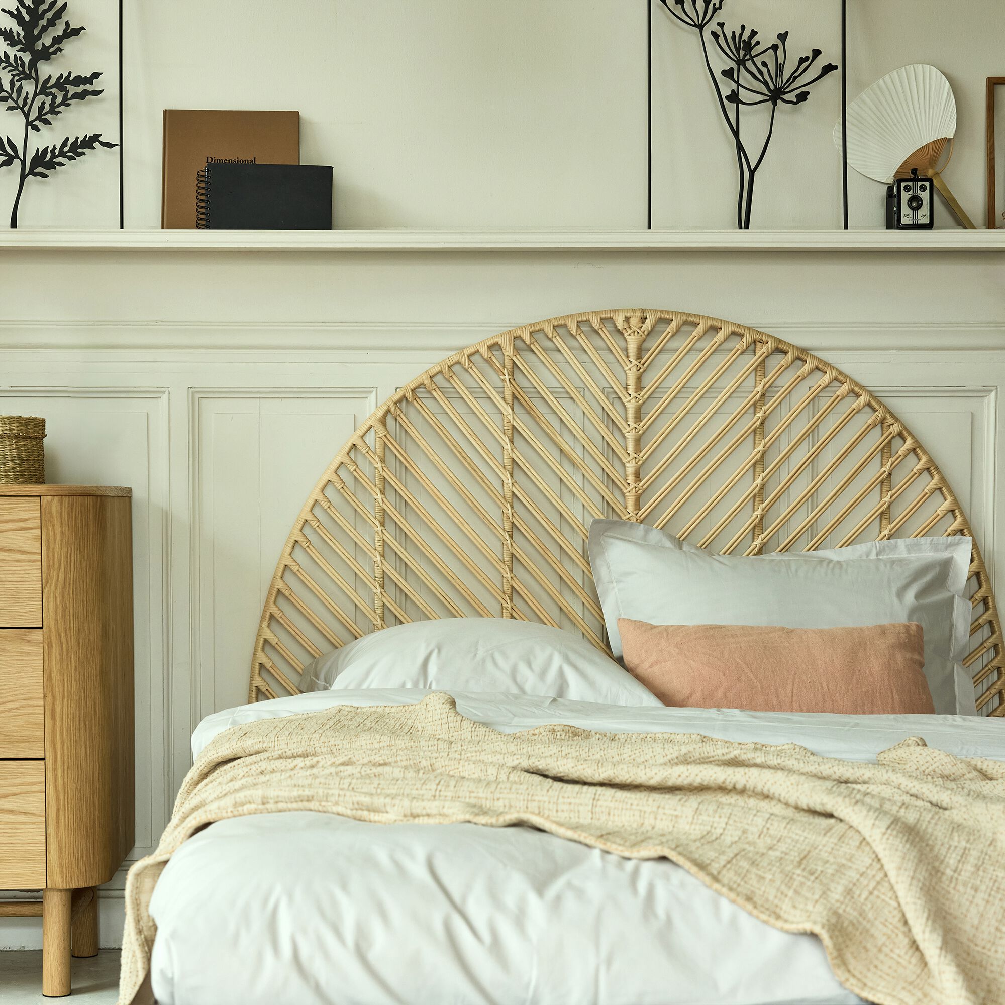 ABELLE - Tête de lit ronde en chêne et rotin L170cm - bois clair