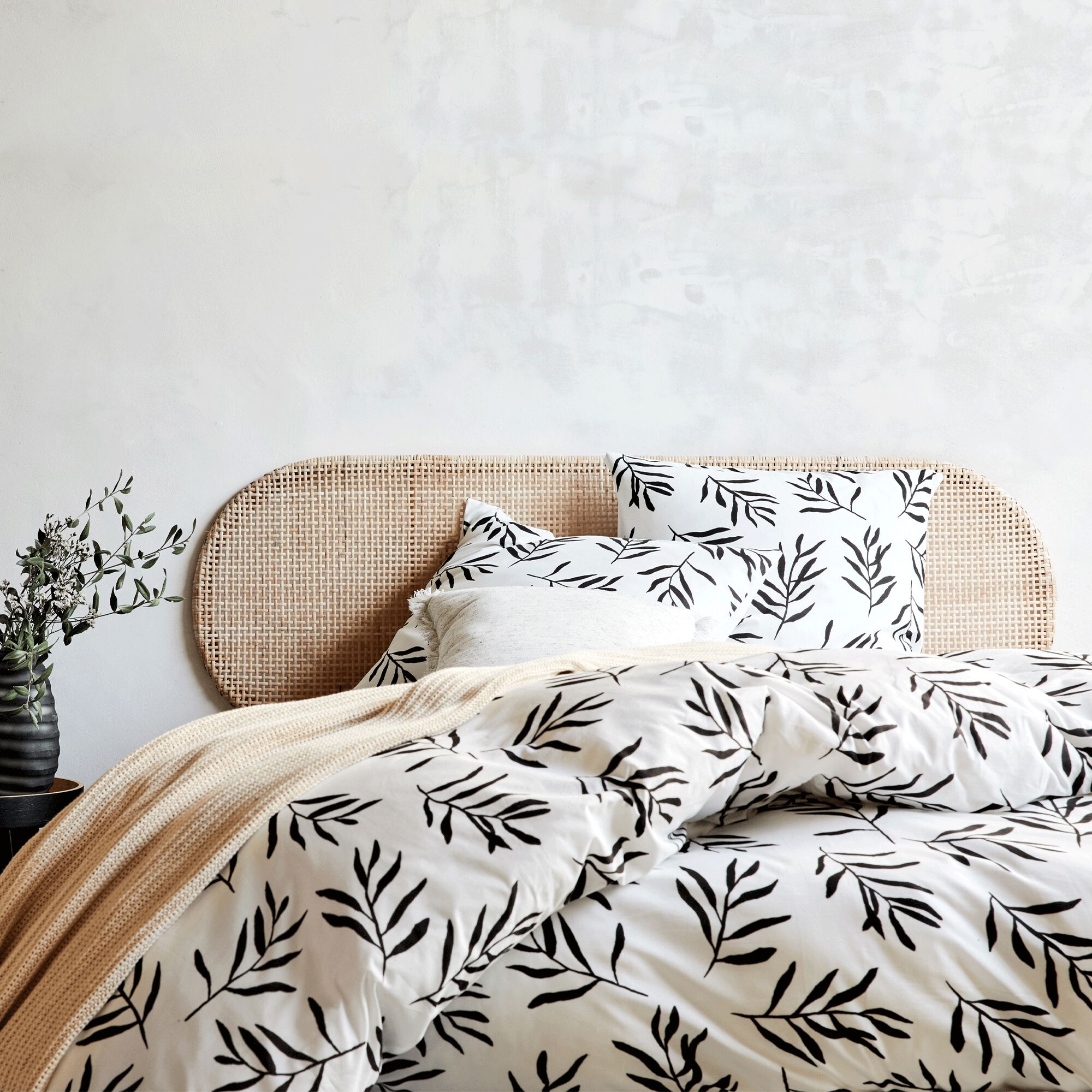 MARIETTA - Tête de lit rectangulaire en rotin 130x170 - bois clair