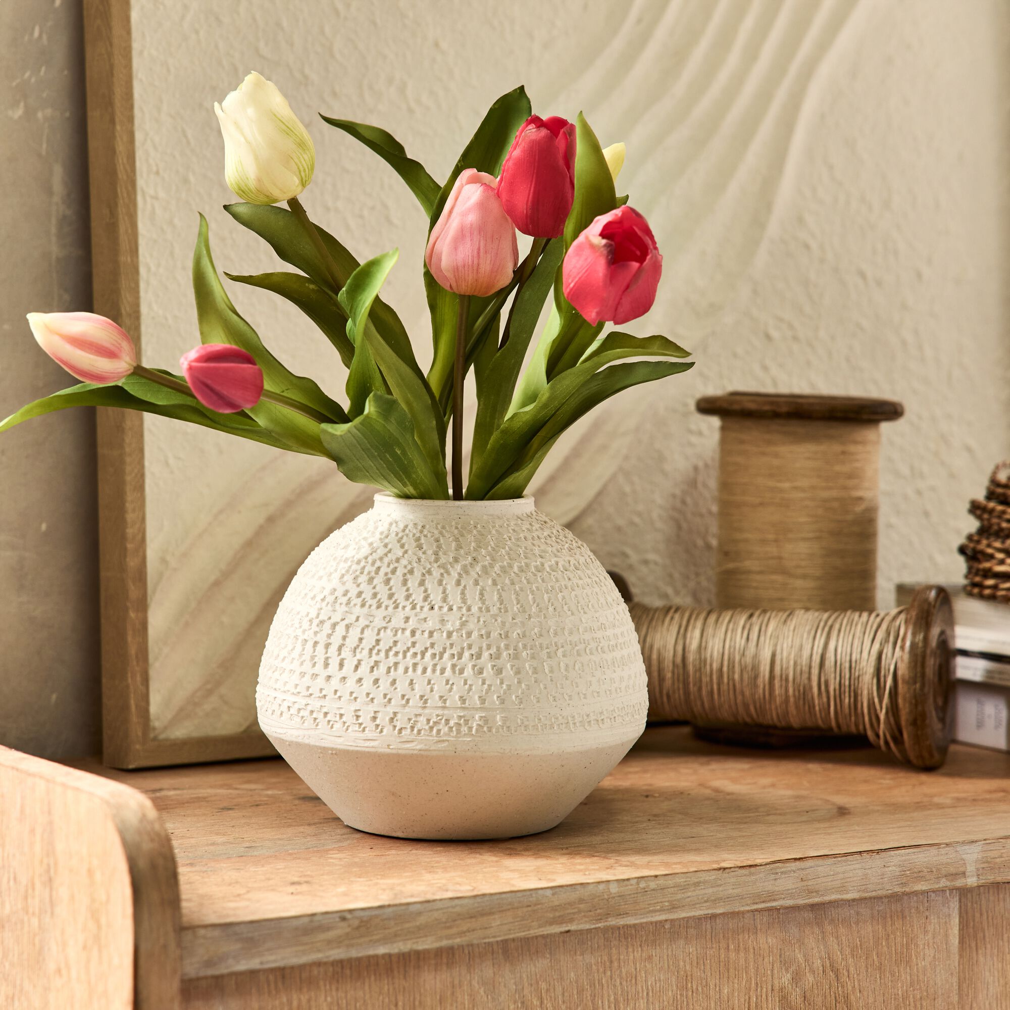 SOMMAREL - Vase classique en faïence texturée H24cm - blanc