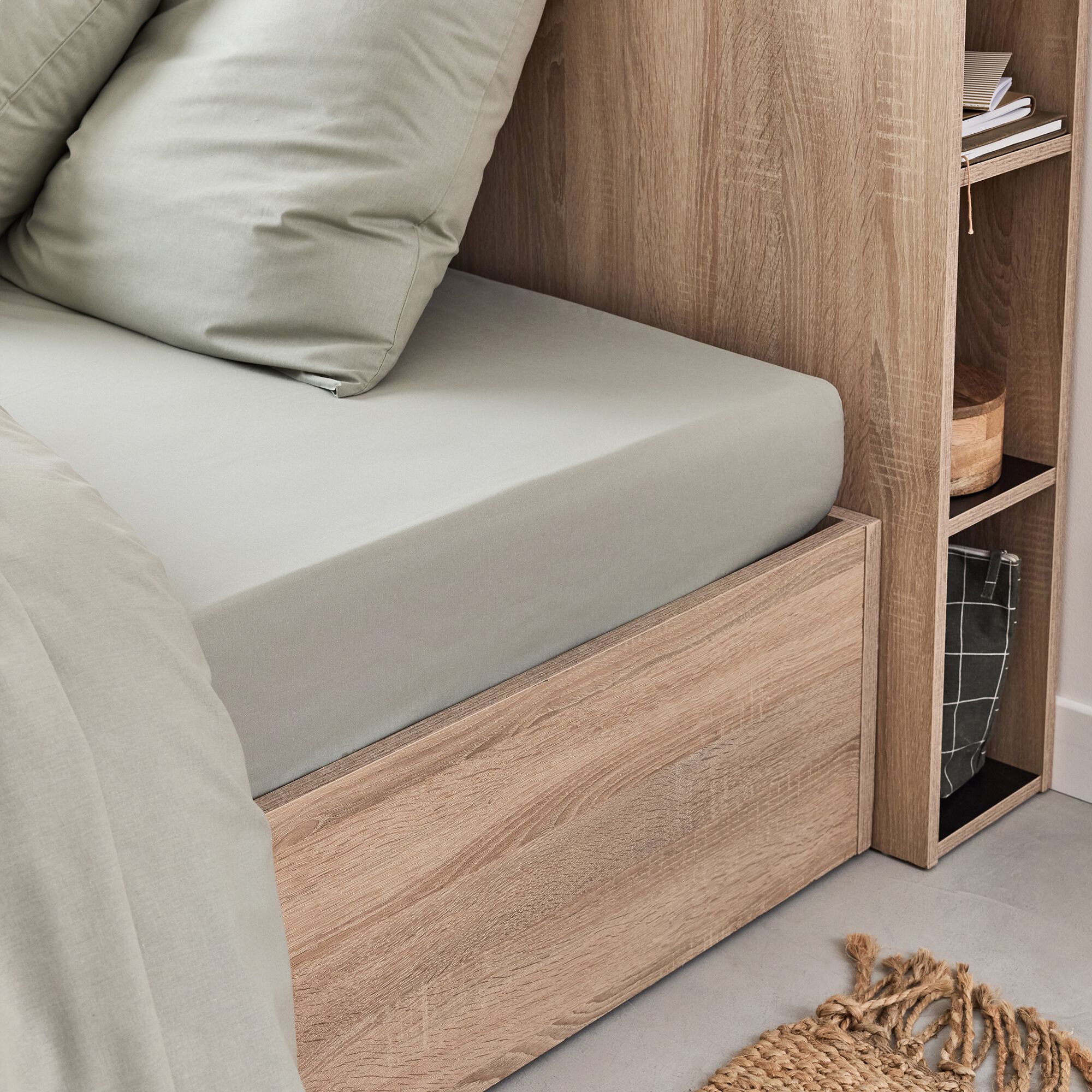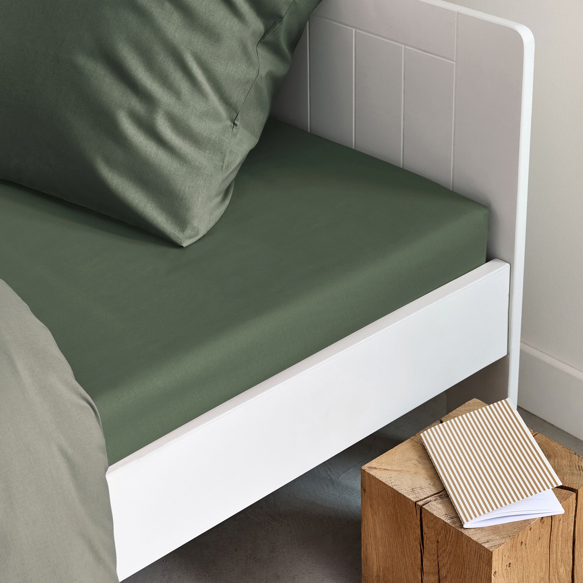 EOLI - Drap housse en coton 90x200cm B30cm - vert olivier