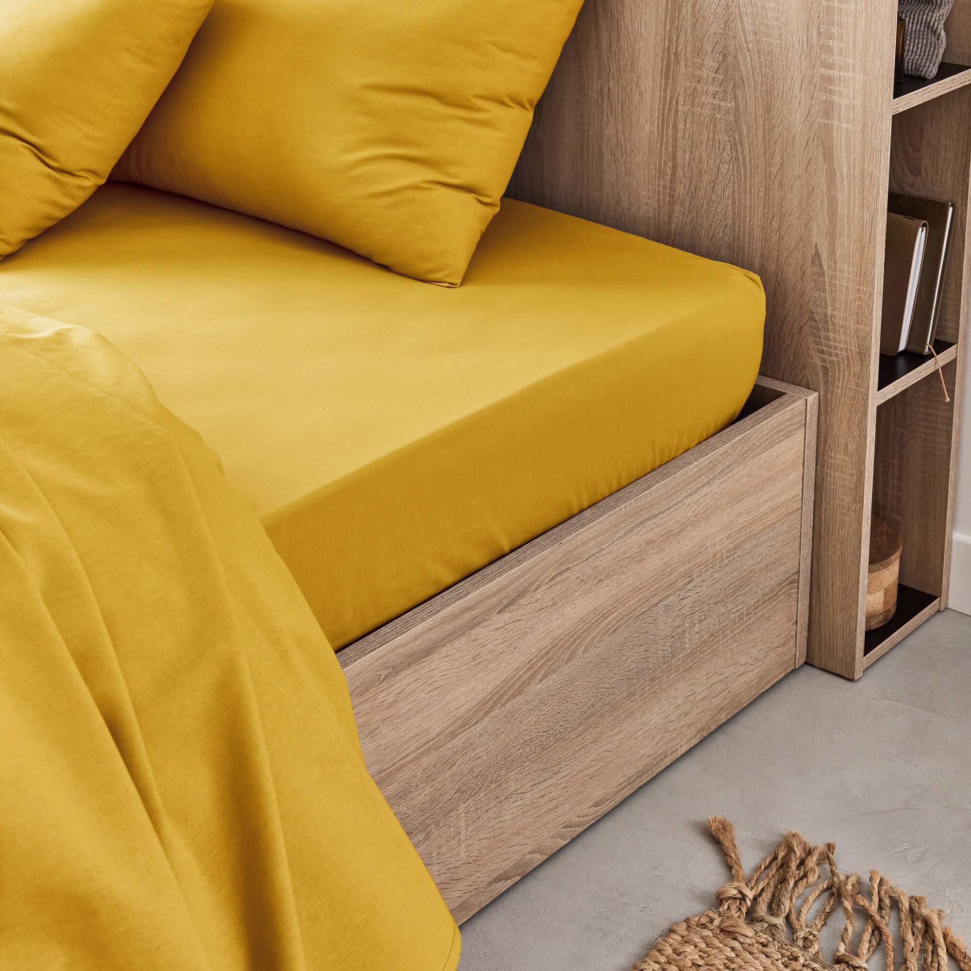 EOLI - Drap housse en coton 90x200cm B30cm - jaune paille