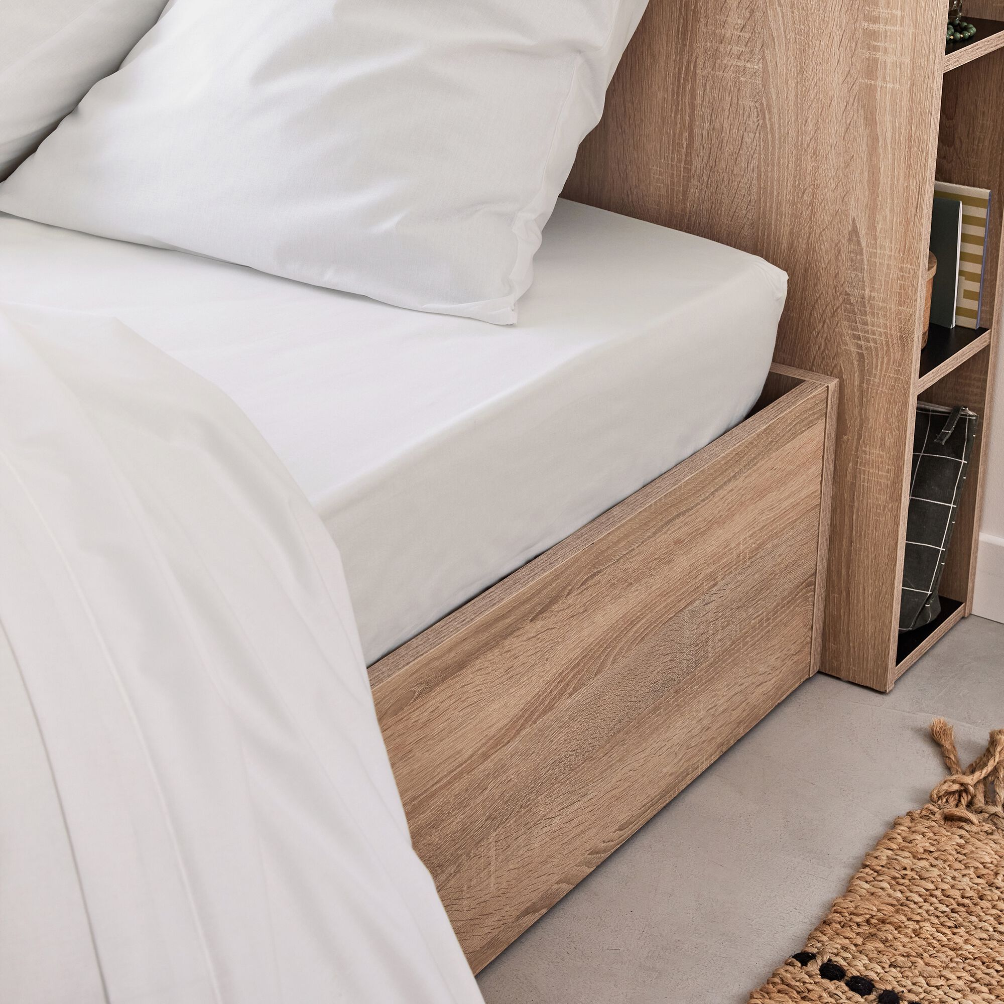 EOLI - Drap housse en coton 90x200cm B30cm - blanc optique