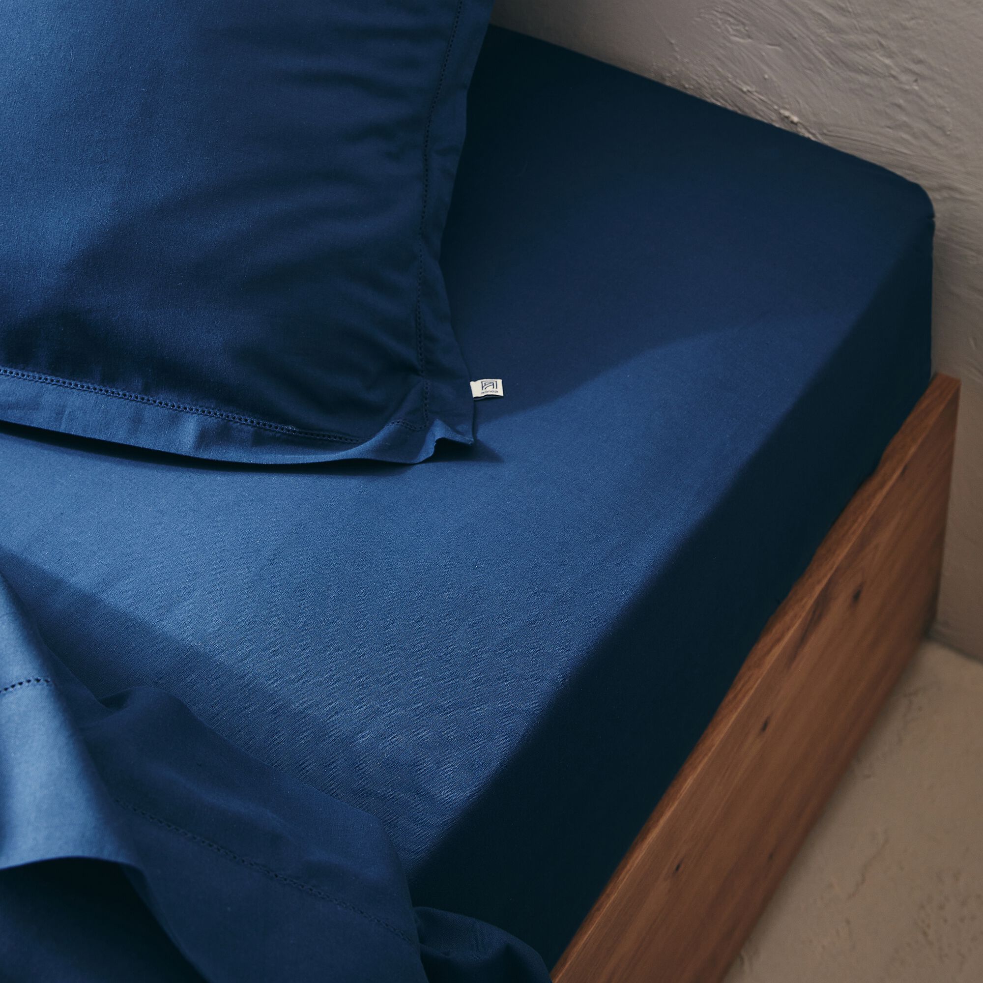 EOLI - Drap housse en coton 90x200cm B30cm - bleu calabrun