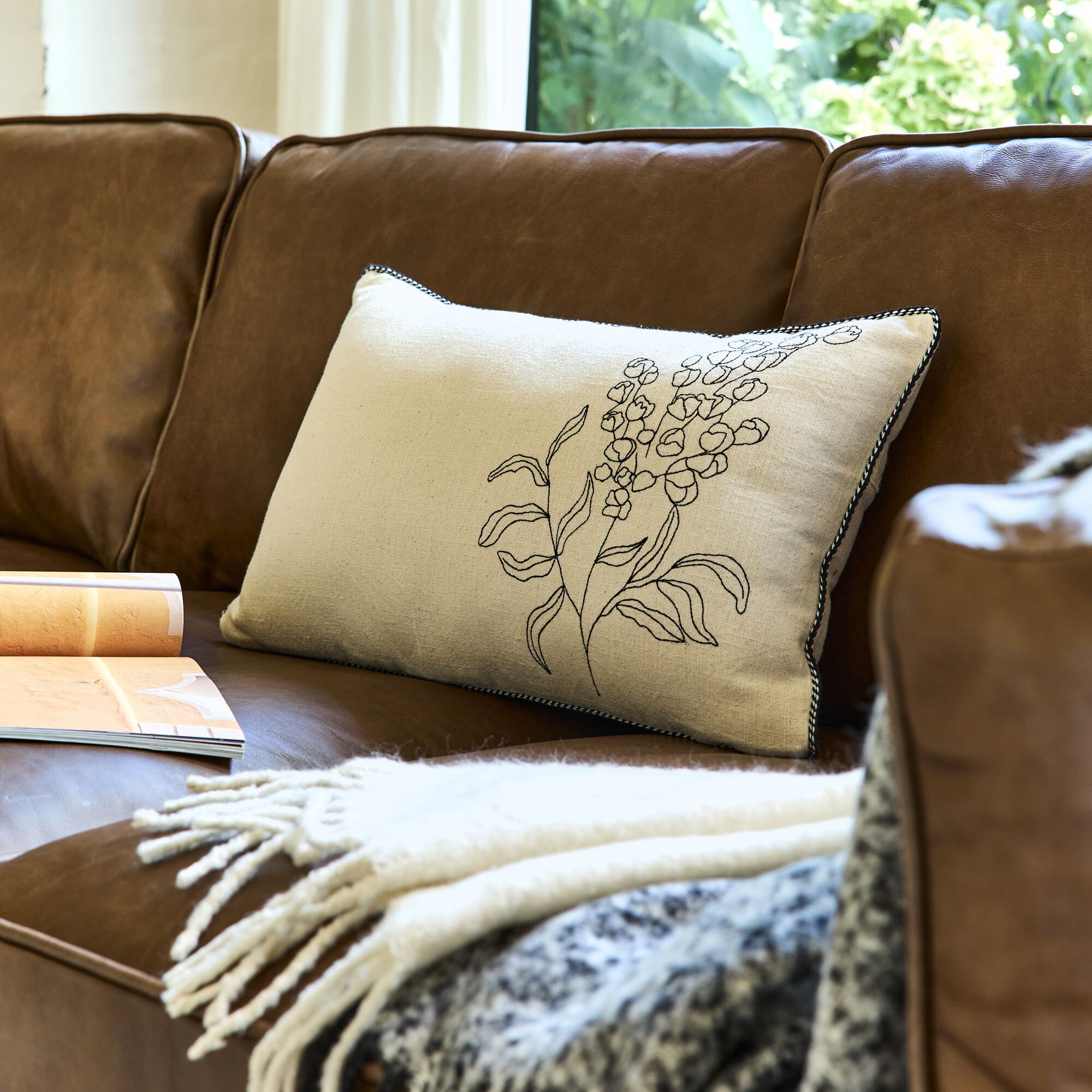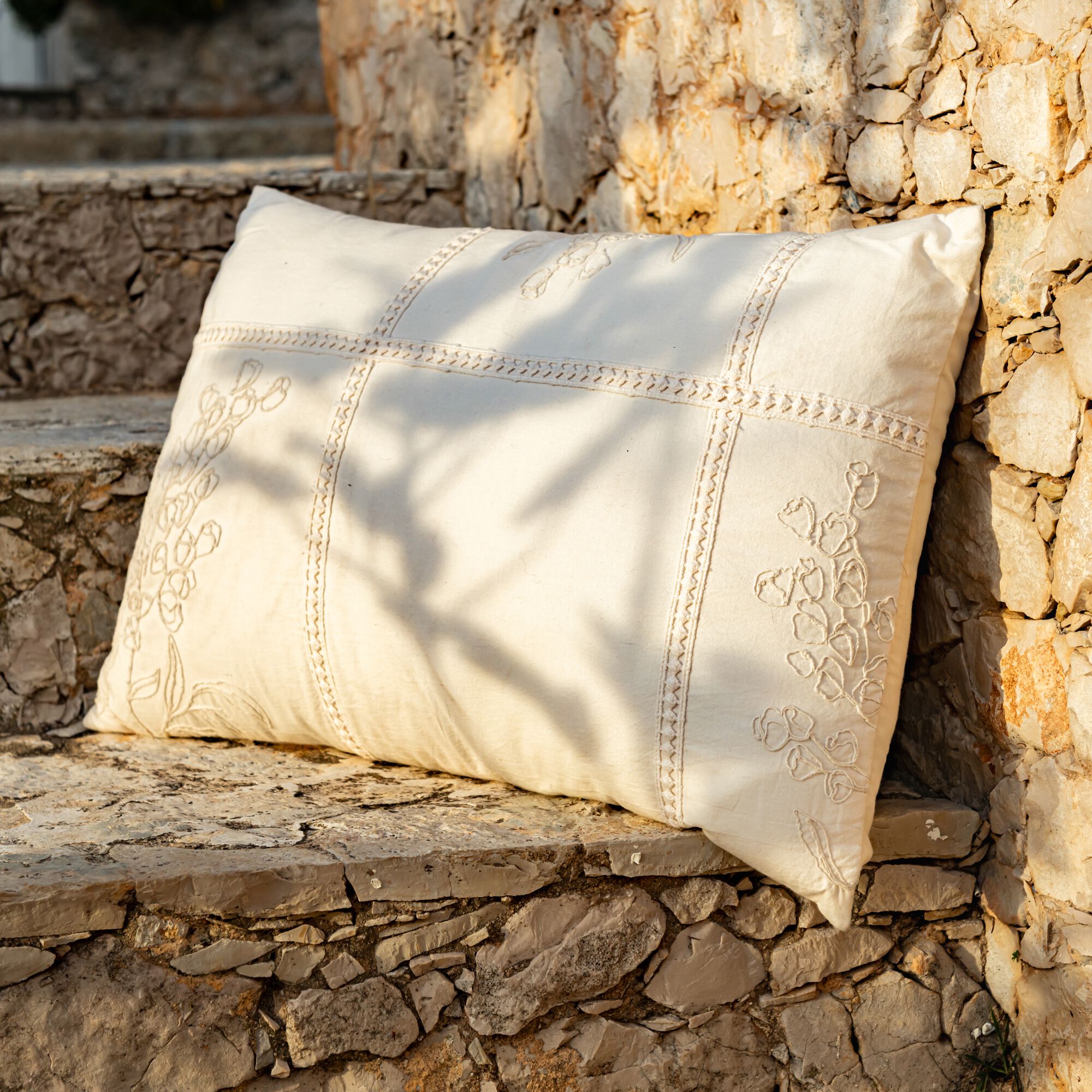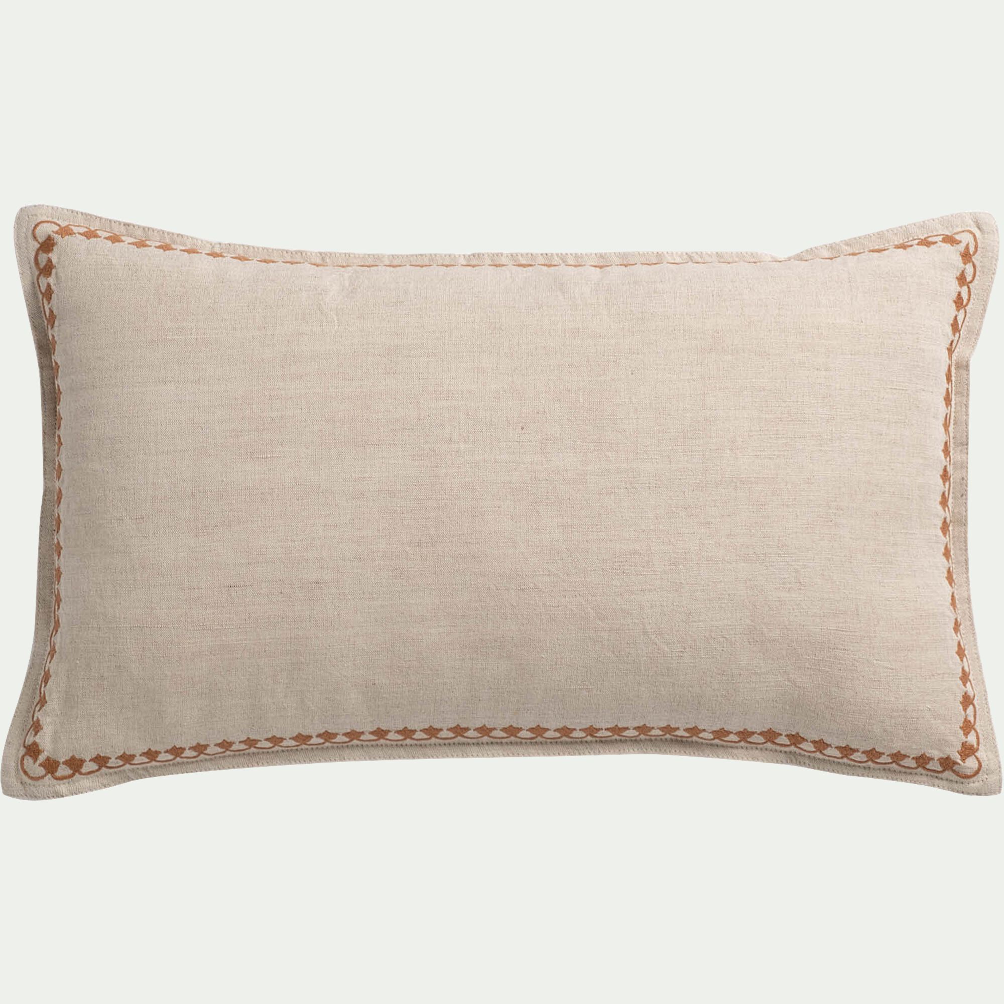 LILANE - Coussin brodé en coton 30x50cm - naturel