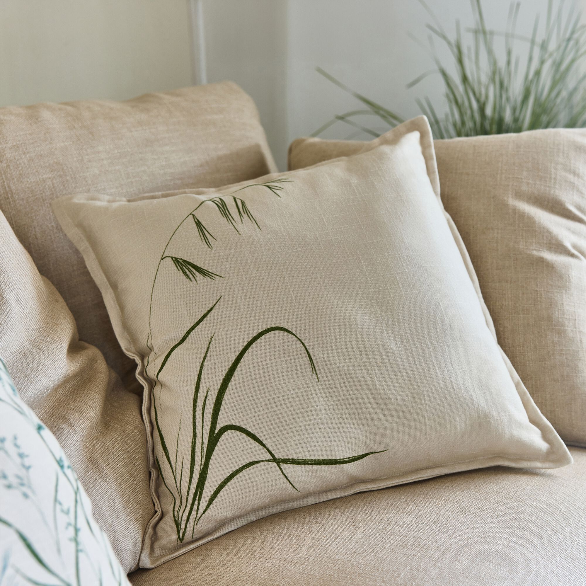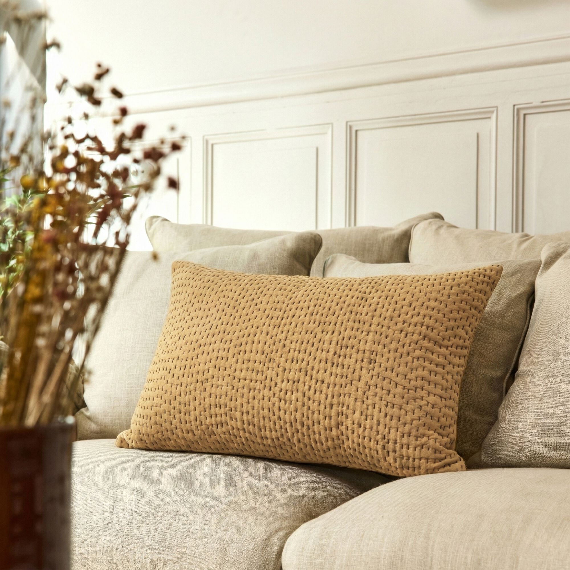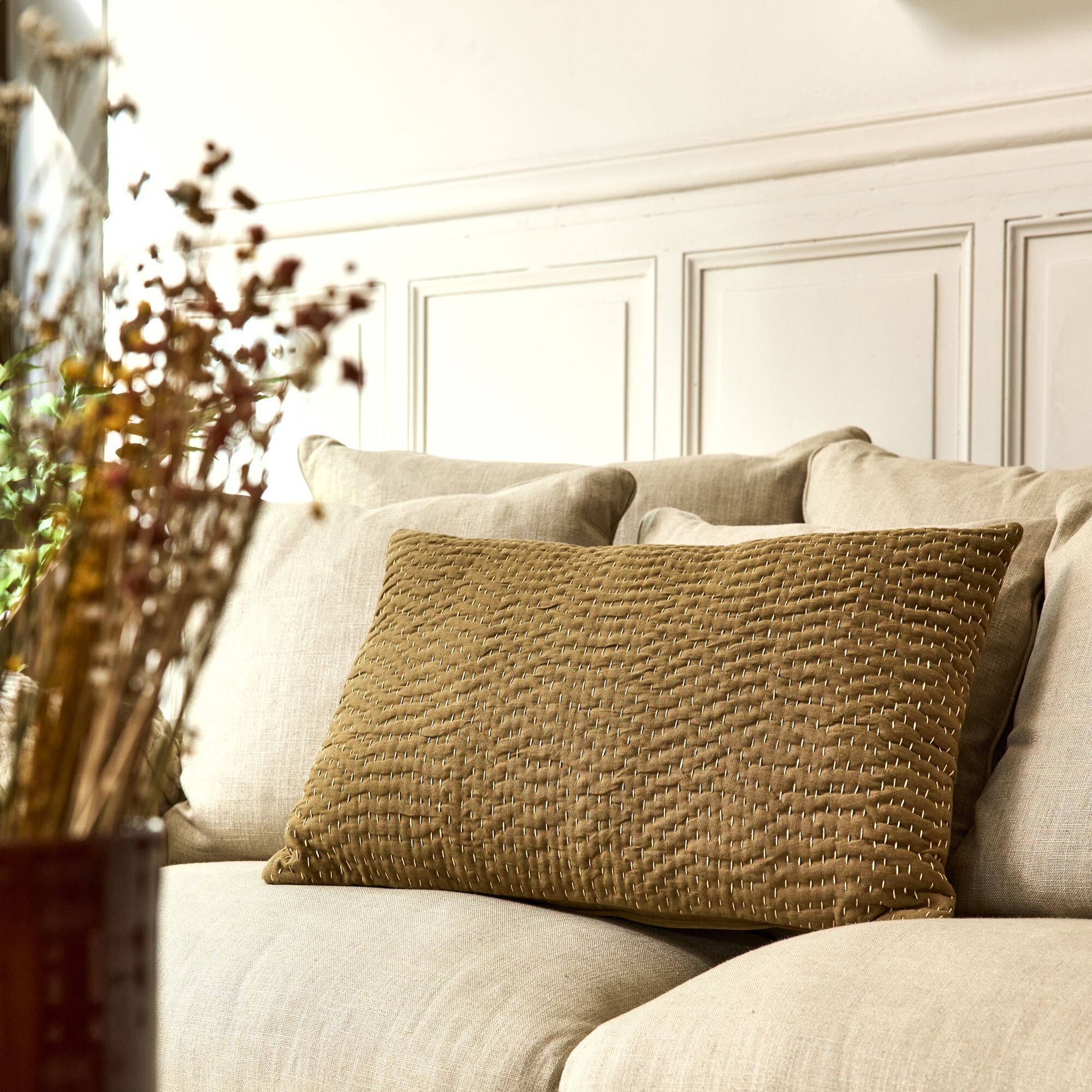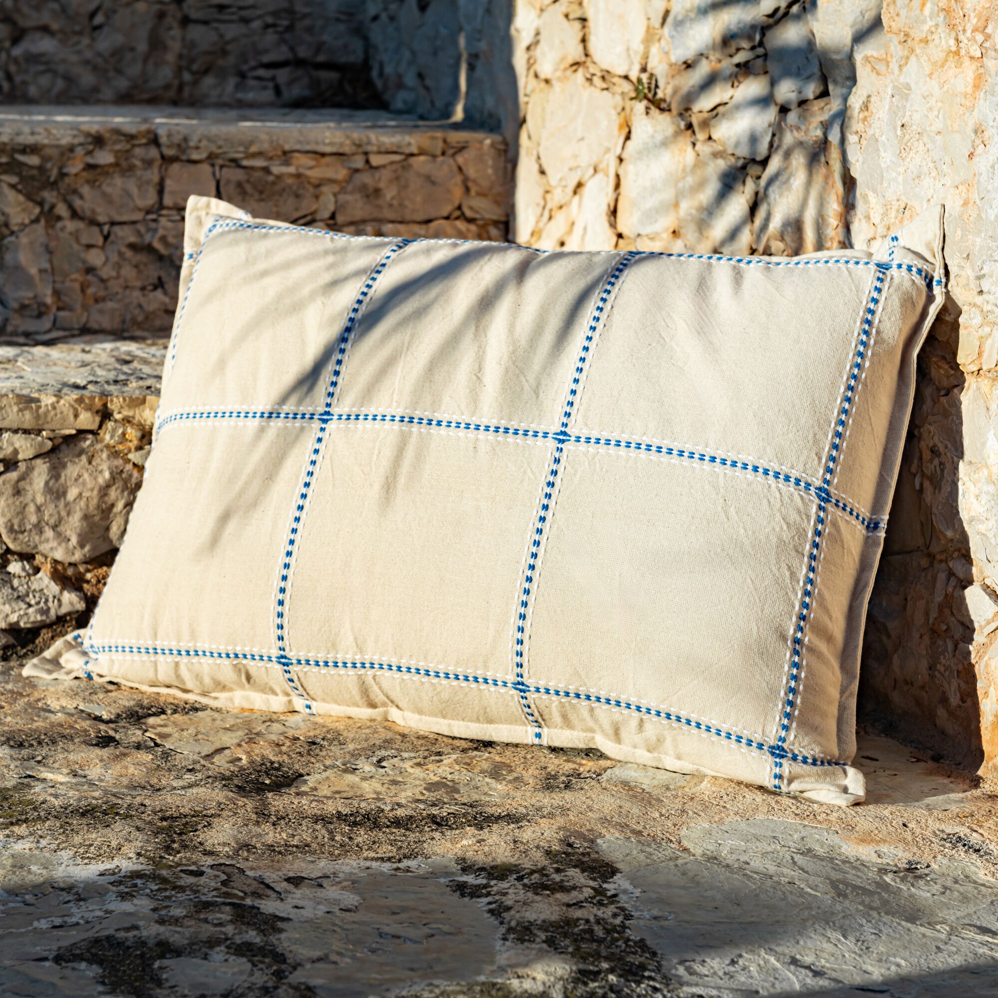 LILANE - Coussin brodé en coton 30x50cm - naturel