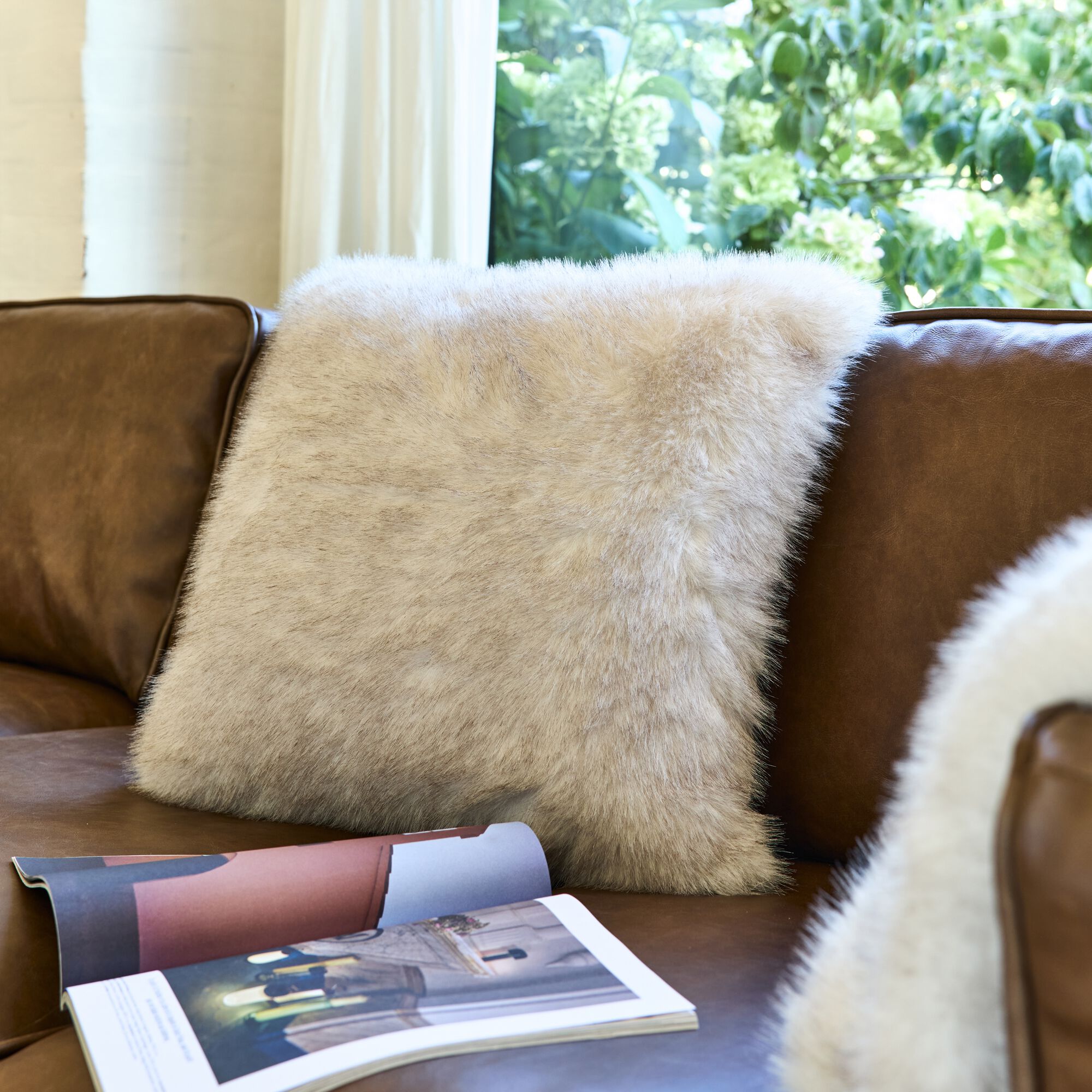 ZOE - Coussin effet fourrure 45x45cm - blanc