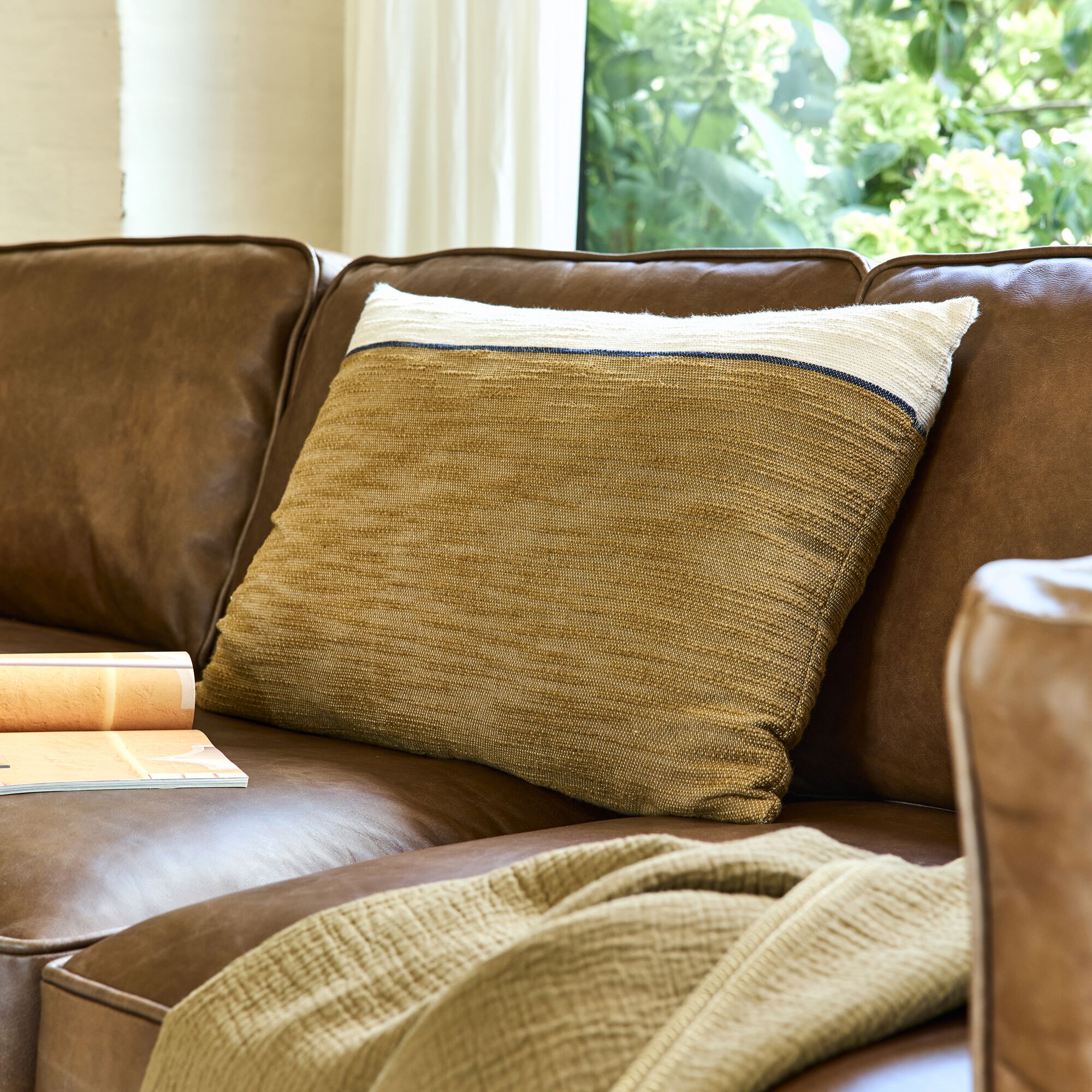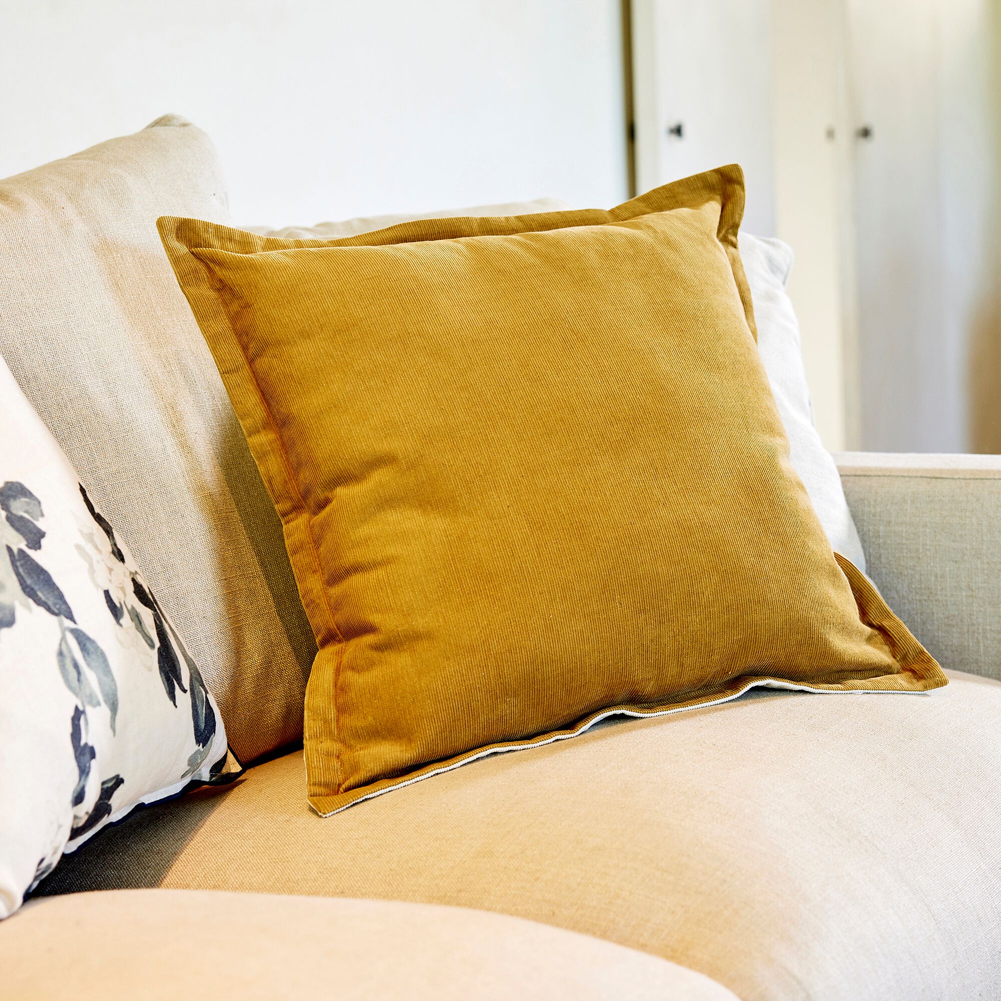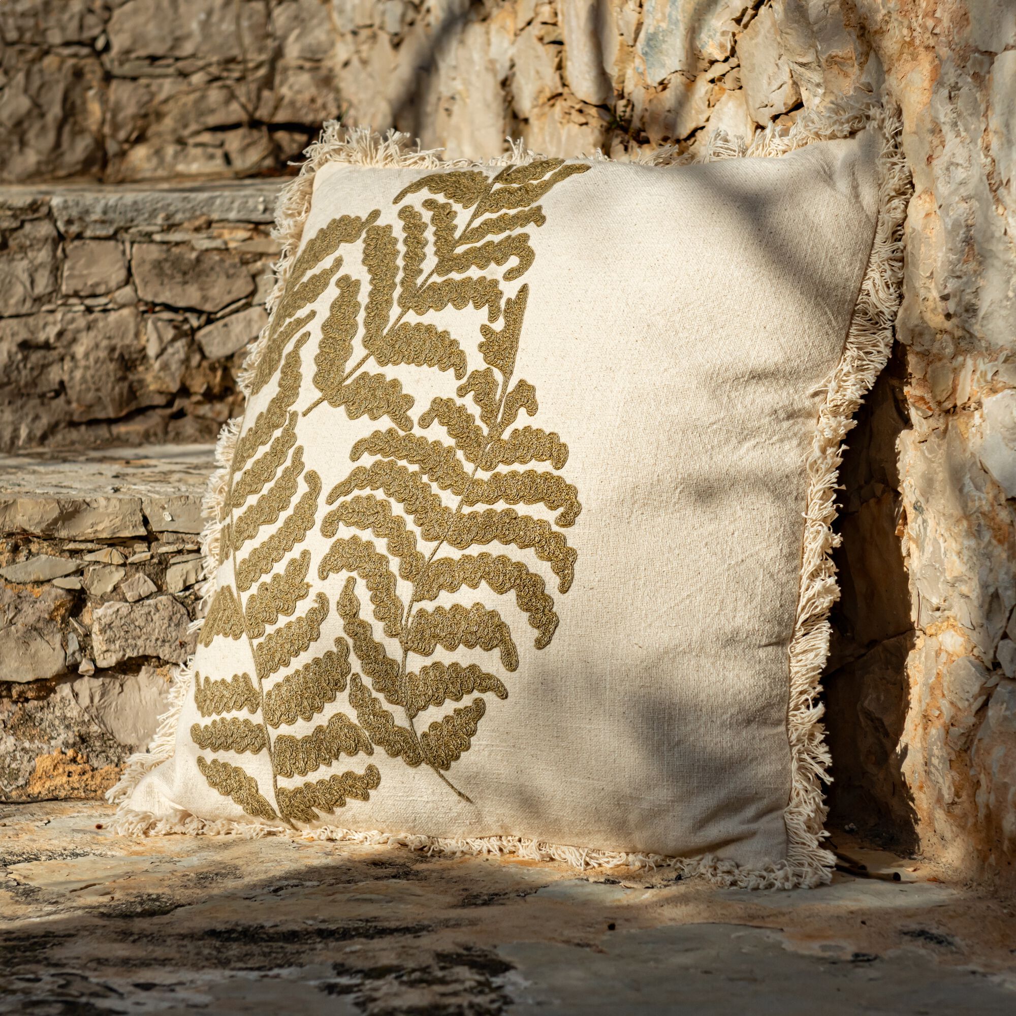 AGDE - Coussin brodé en coton 45x45cm - beige corde