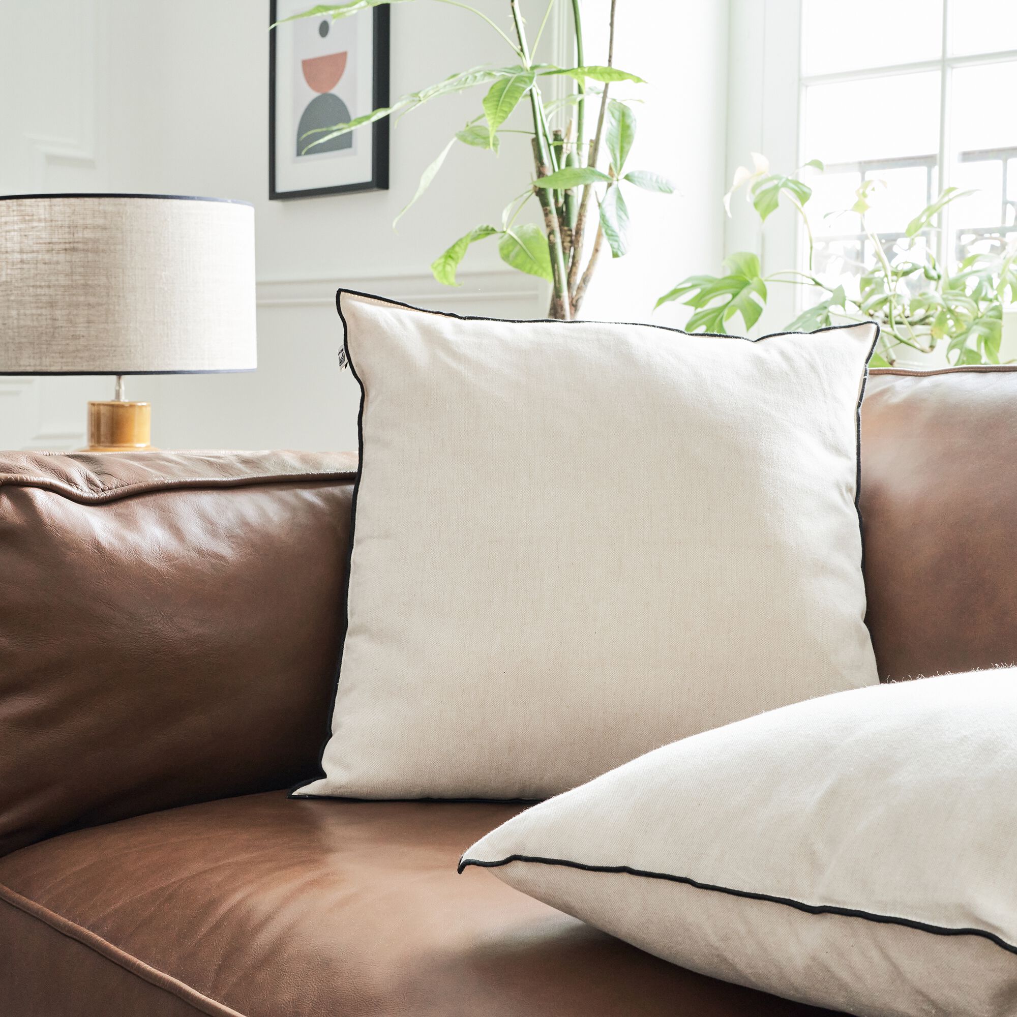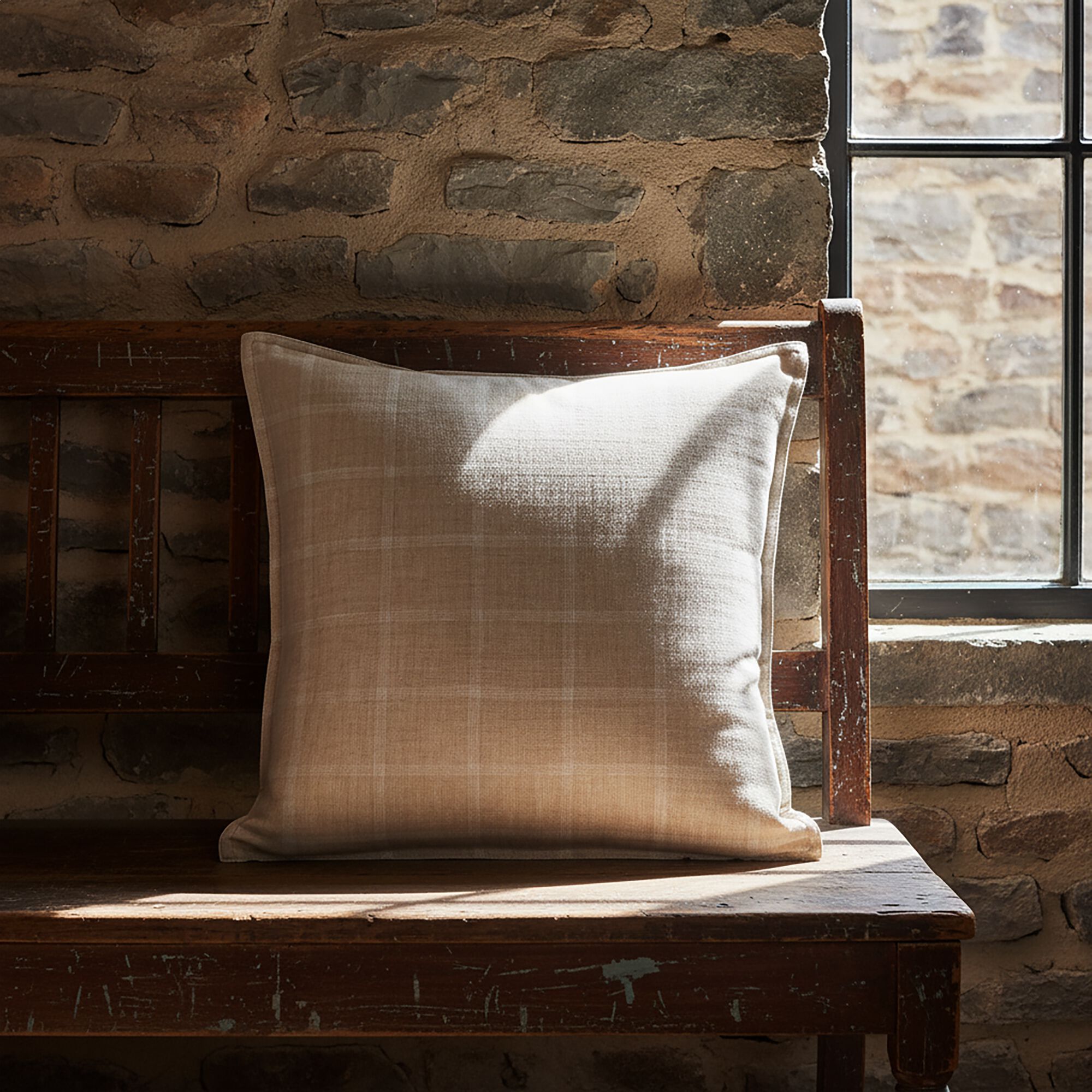 VALBEL - Coussin en lin lavé à carreaux 45x45cm - beige