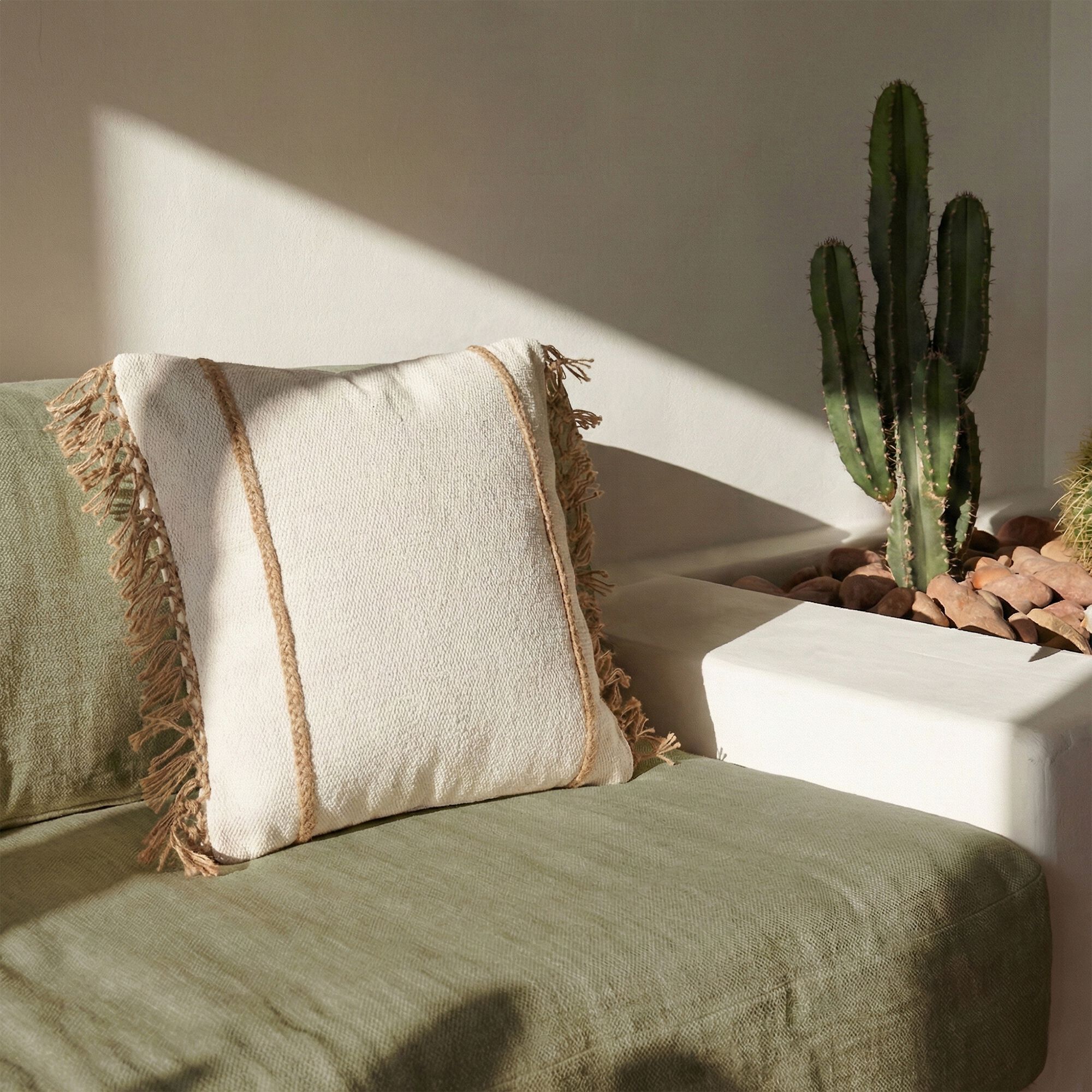 TESSALY - Coussin en gaze de coton 45x45cm - beige alpilles