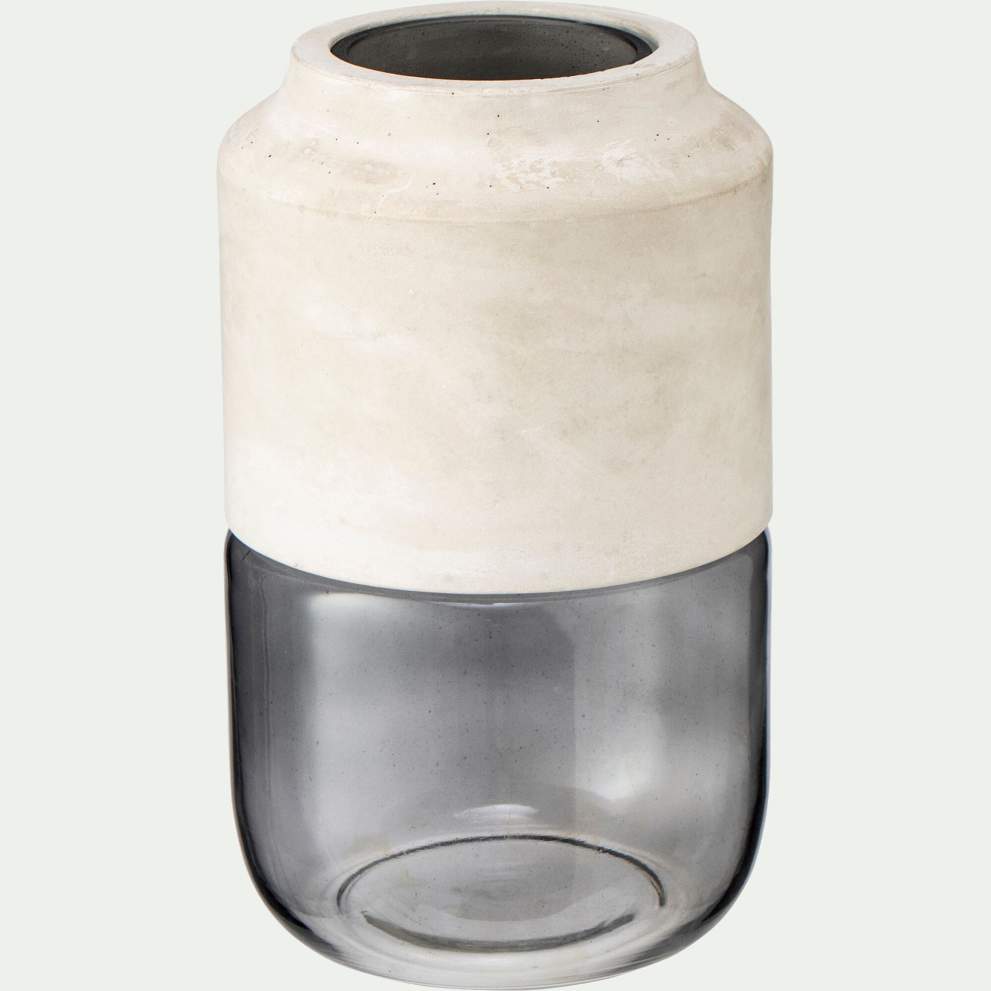 AREZZO - Vase en verre et bois - gris H23,5cm