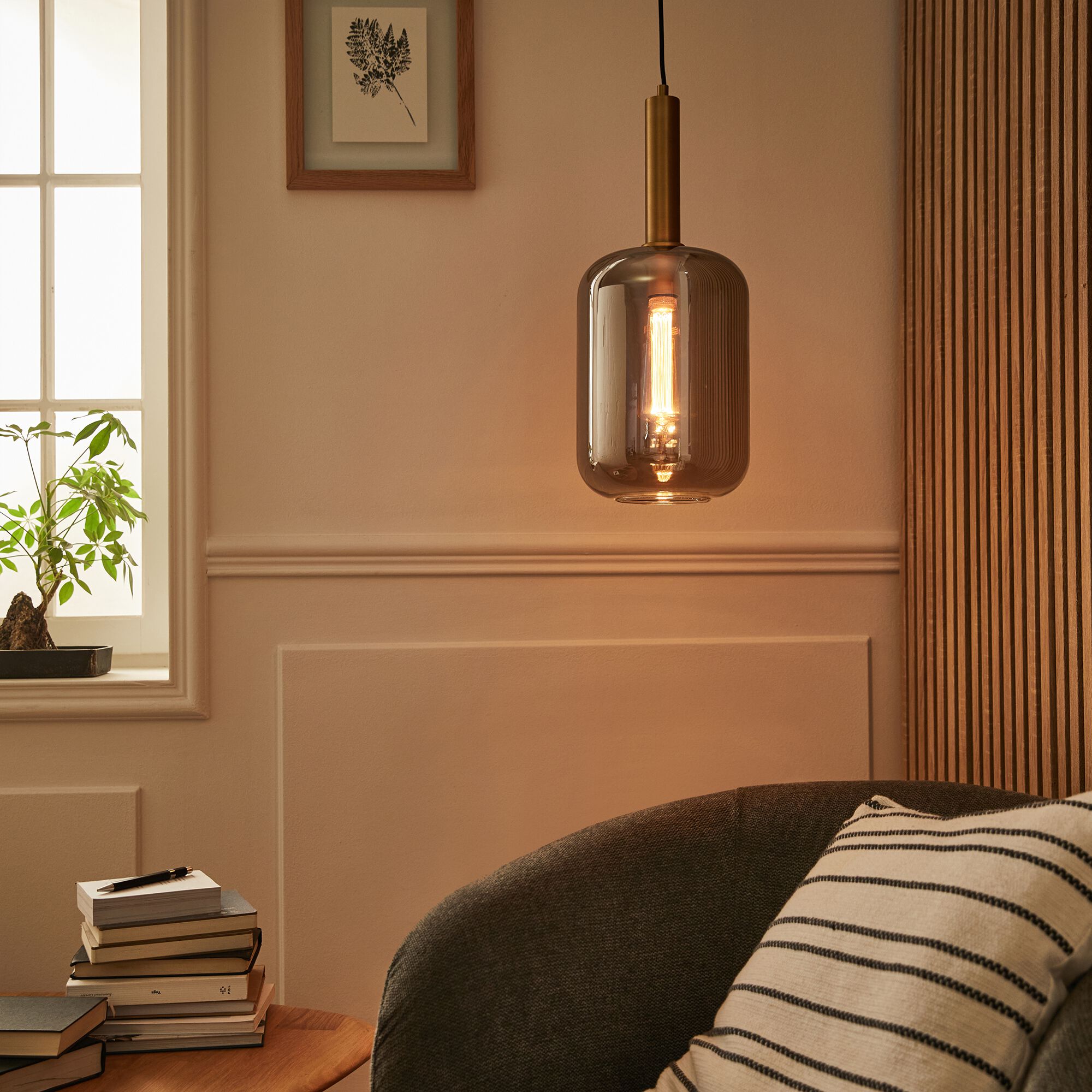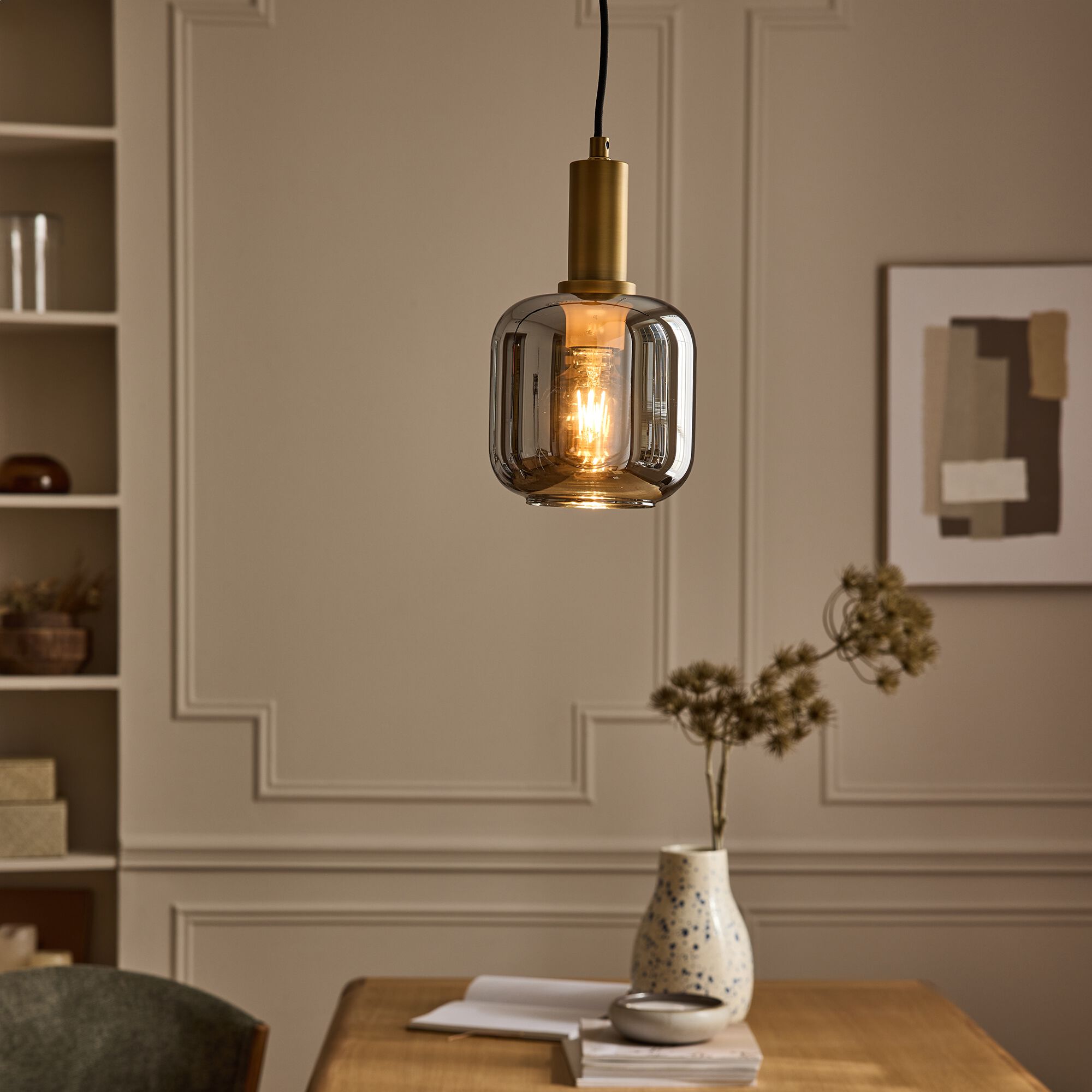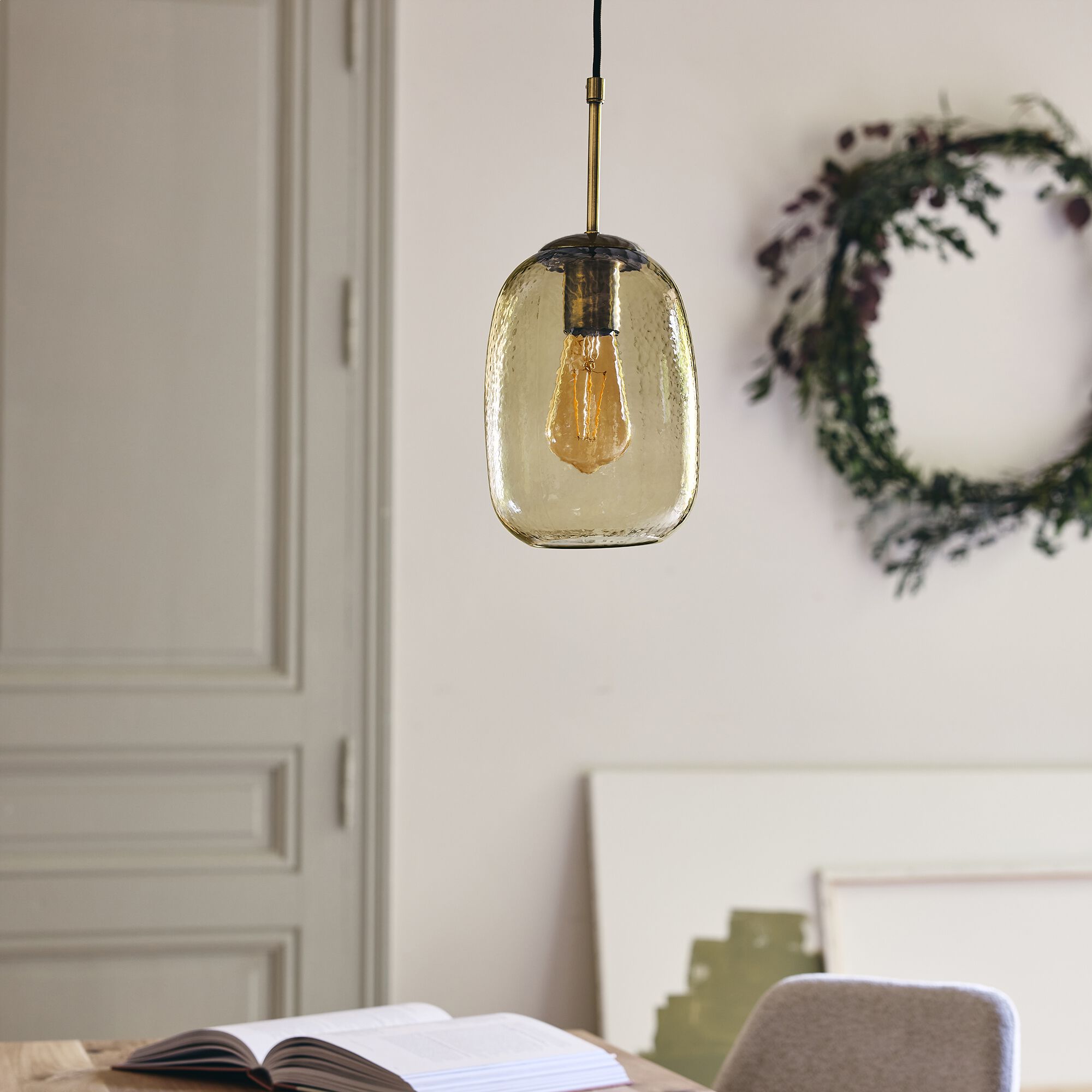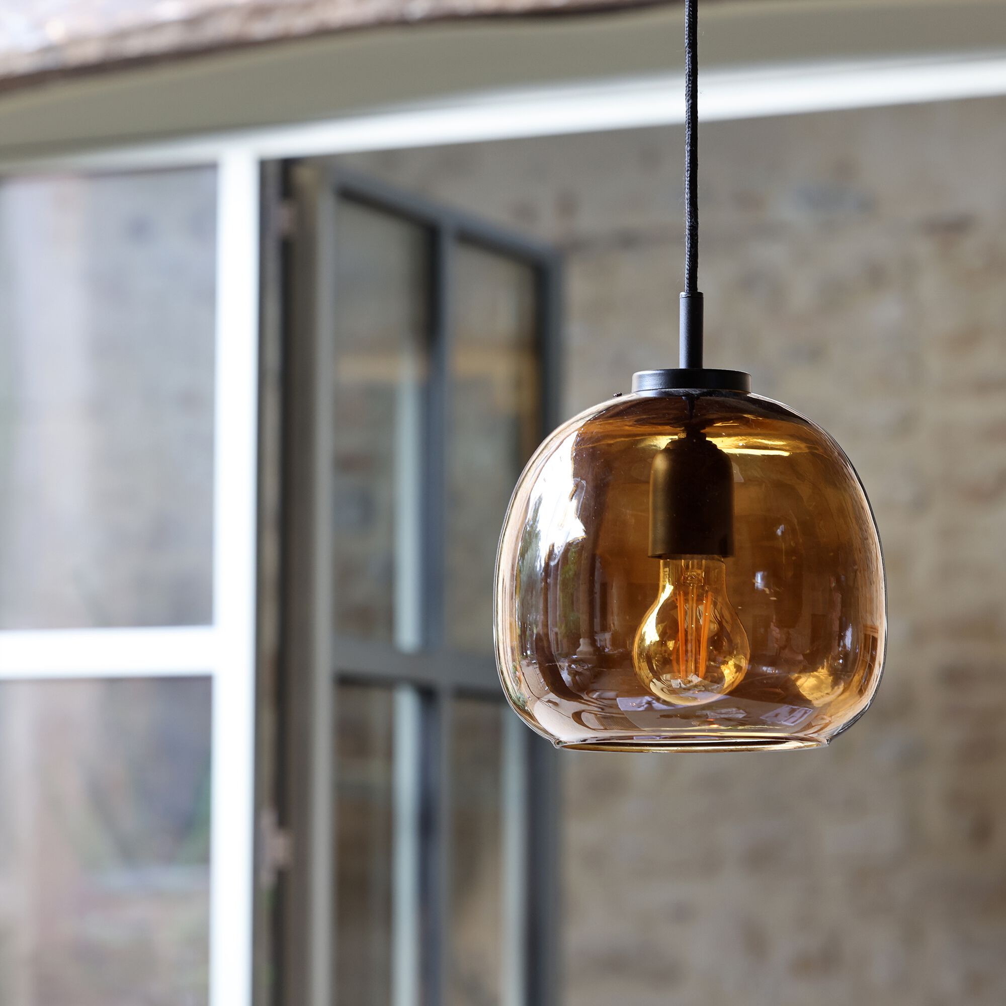 ANNI - Suspension électrifiée en verre D20cm - marron