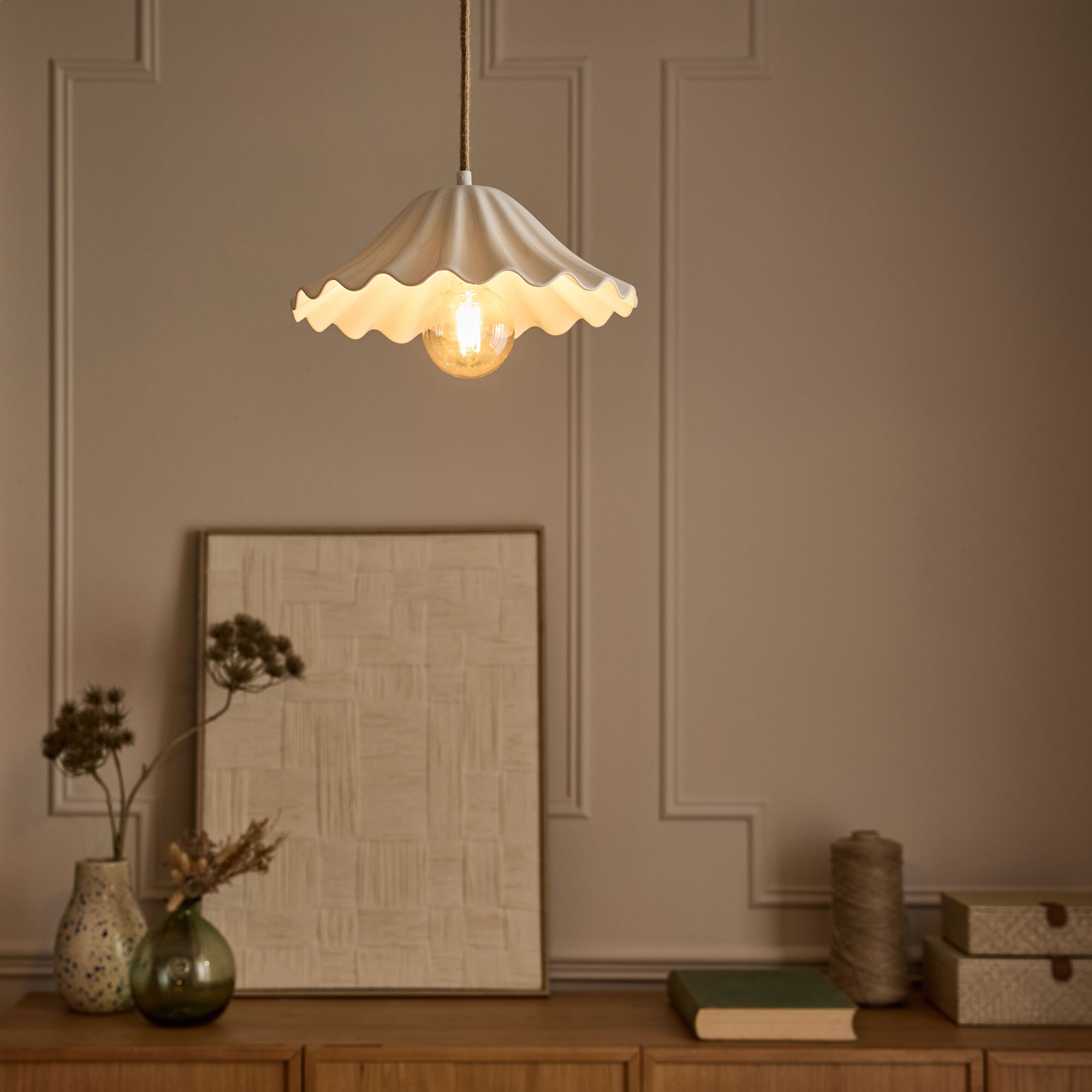 NEFTA - Suspension électrifiée en terre cuite D18cm - blanc