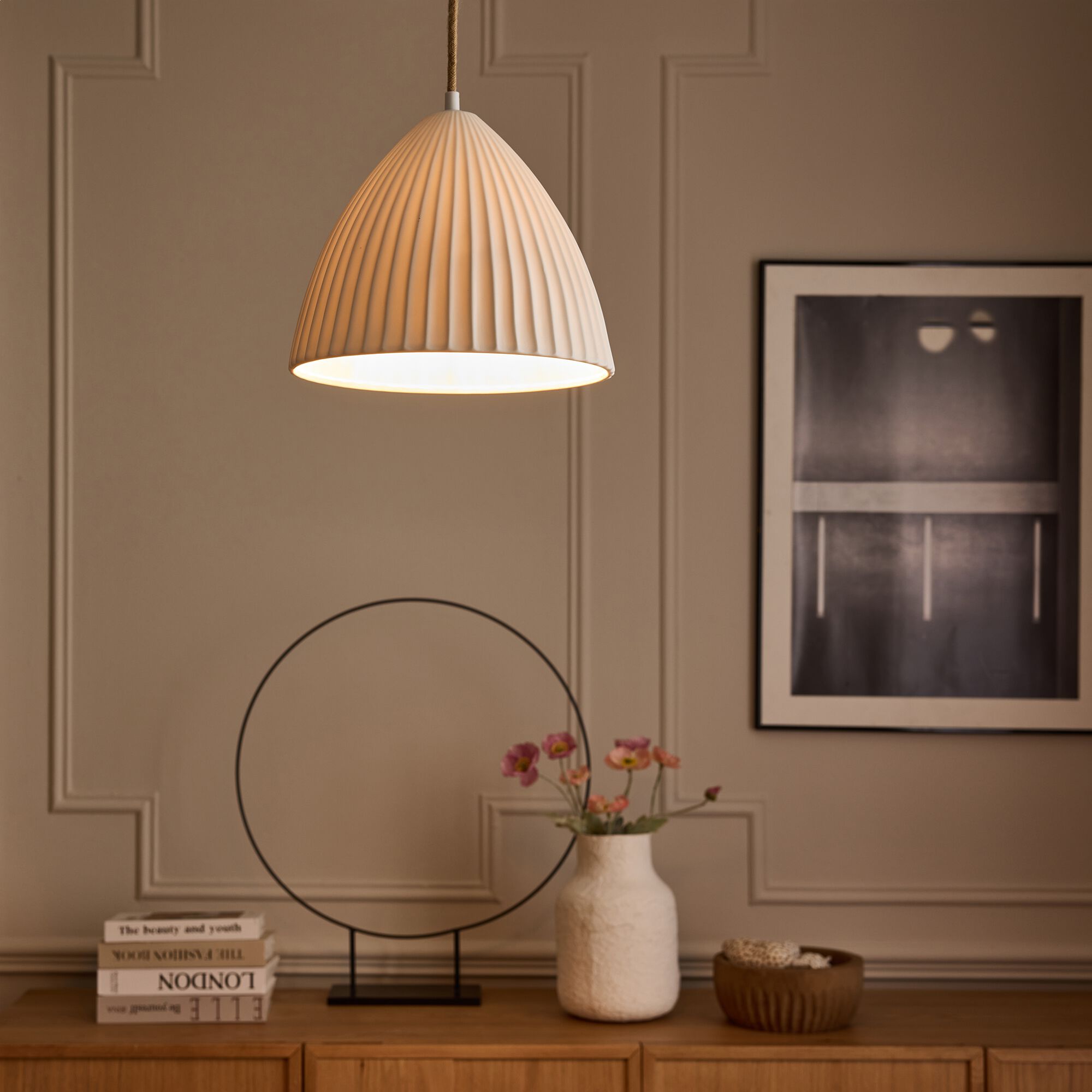 DORINE - Suspension électrifiée en porcelaine D30cm - blanc
