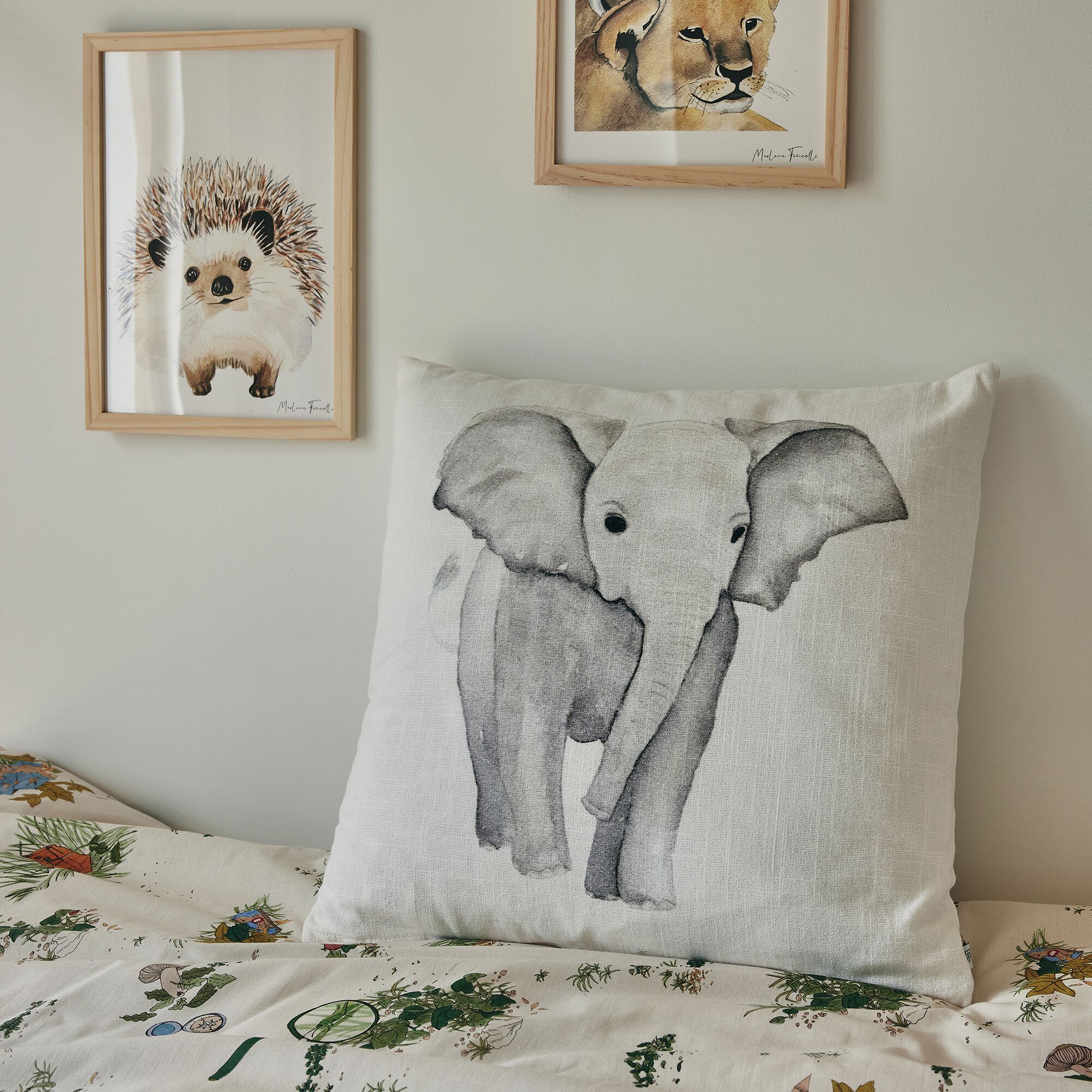 ELEPHANT - Coussin motif éléphant en coton 45x45cm - gris
