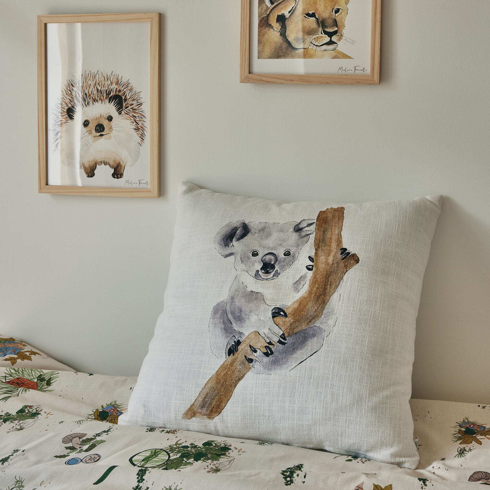 KOALA - Coussin motif koala en coton 45x45cm - gris
