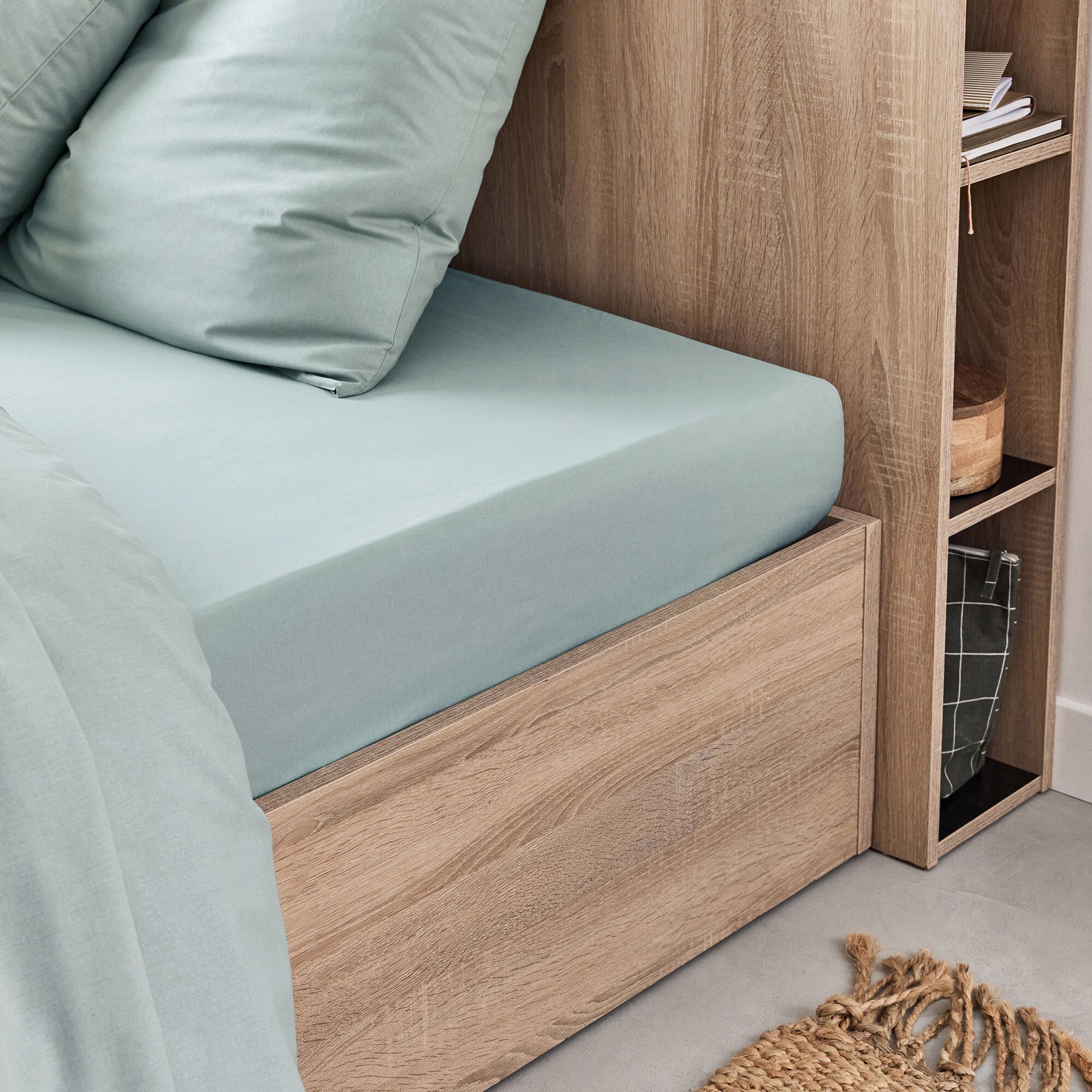 EOLI - Drap housse en coton 200x90cm B20cm - bleu calaluna