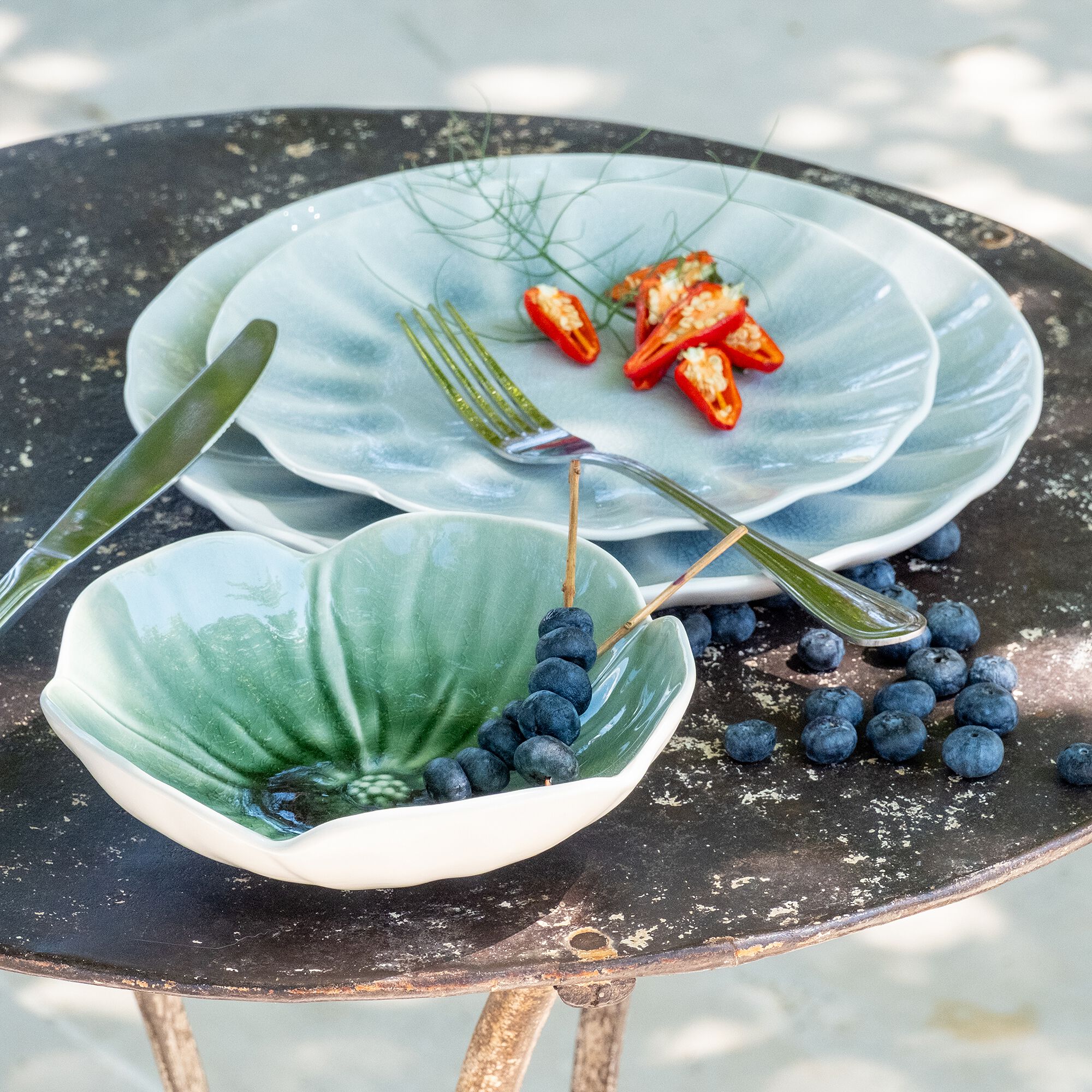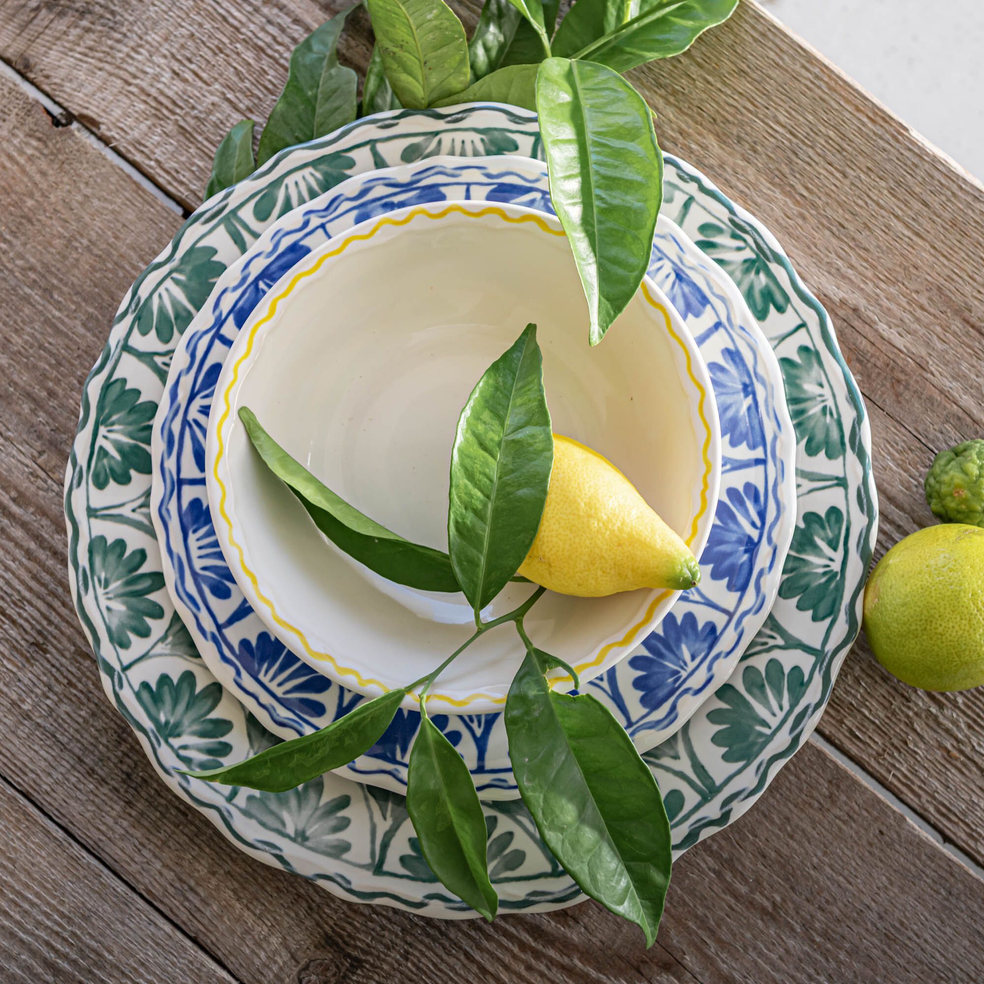 ADAO - Service de vaisselle en grès à motif floral - blanc