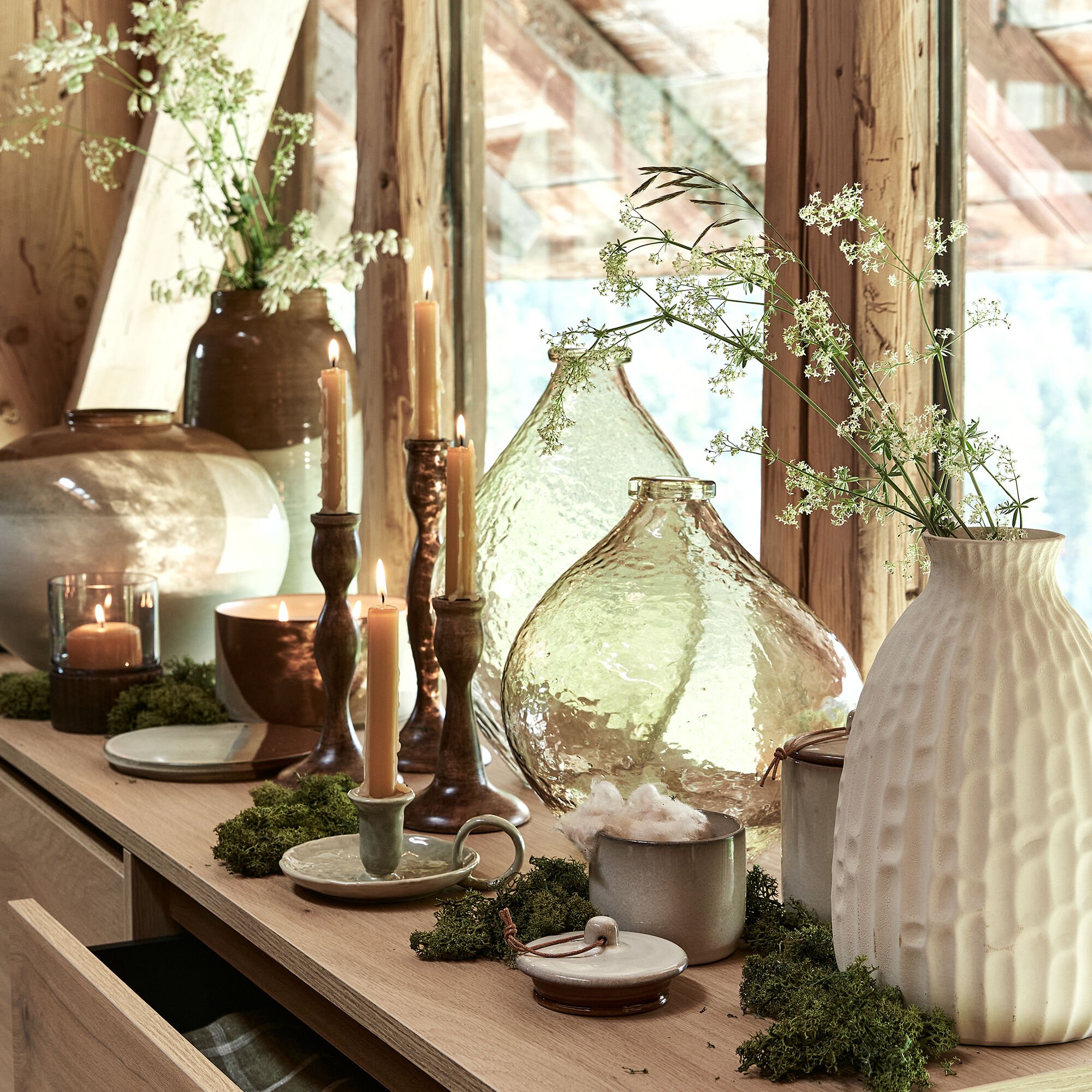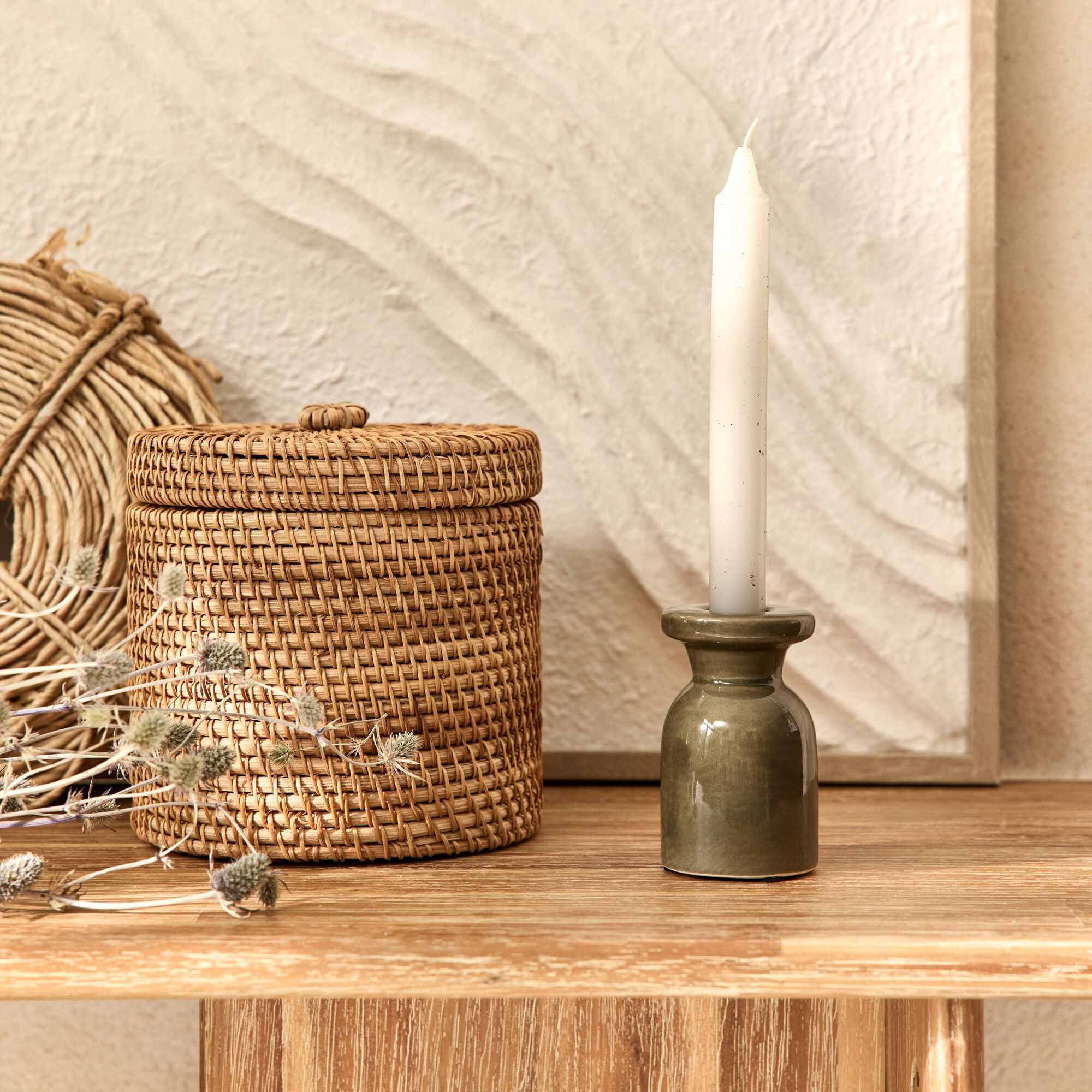 LINEO - Bougeoir en céramique D5,5xH8,5cm - vert cèdre