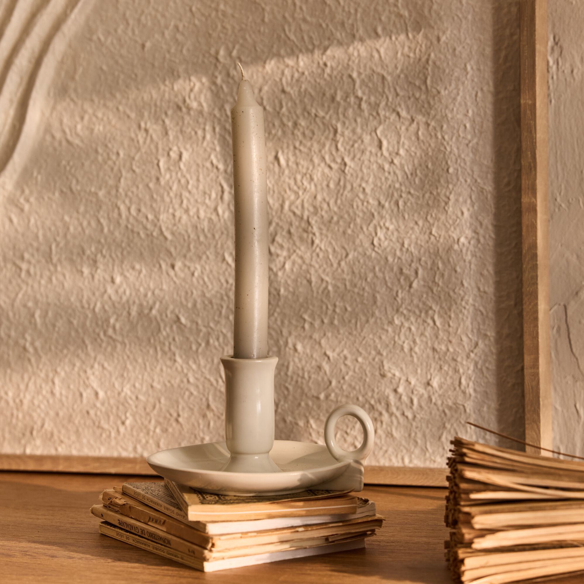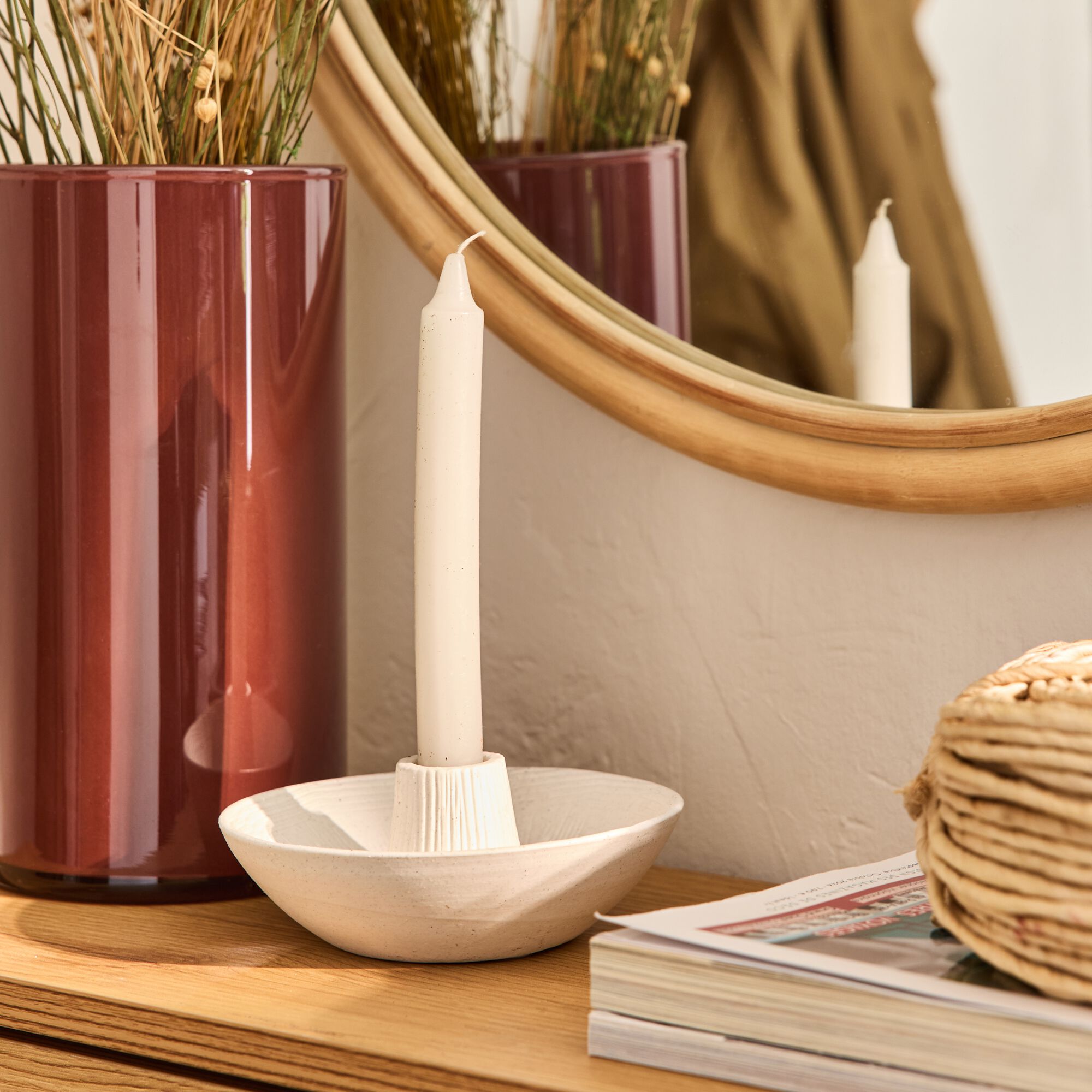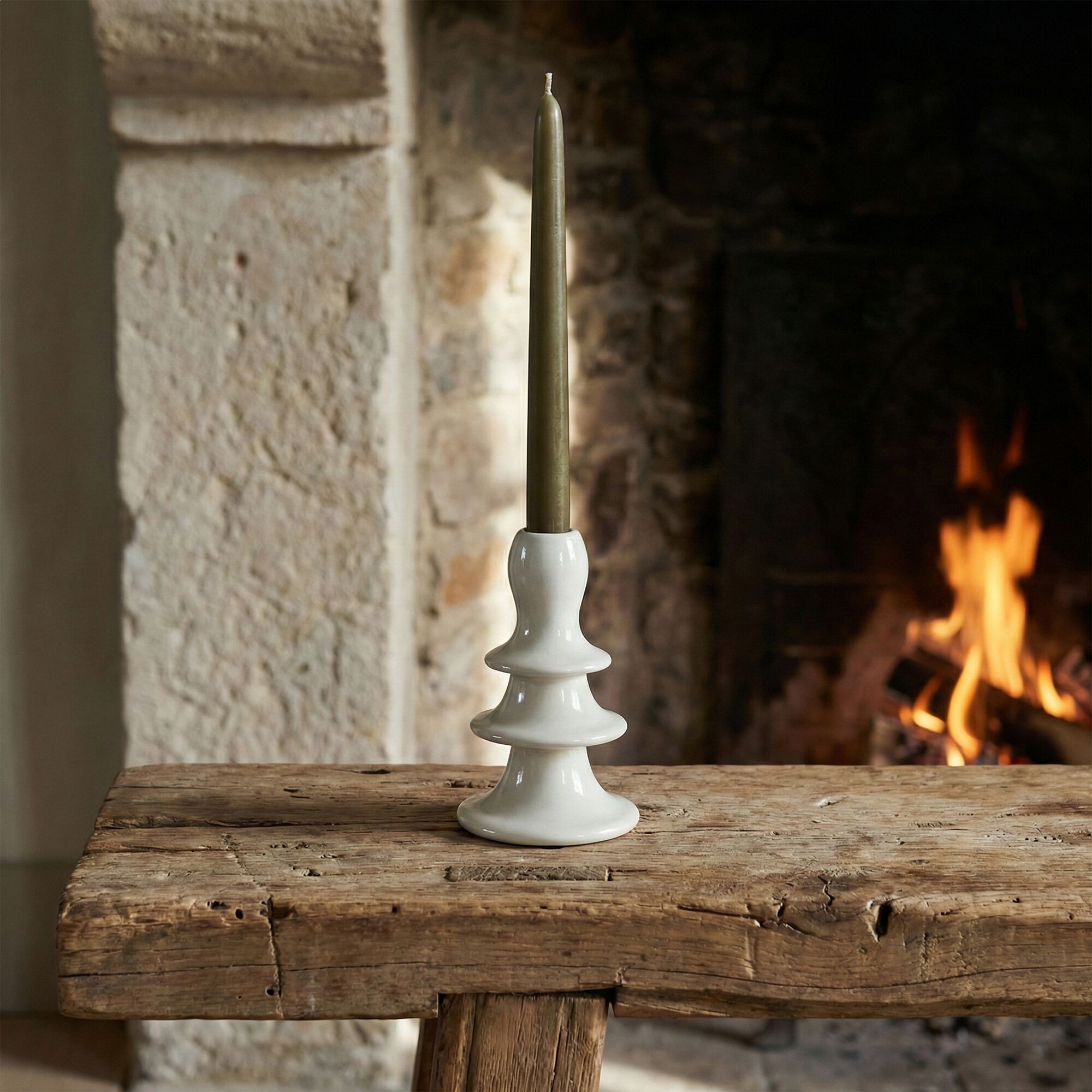 GISELE - Bougeoir en grès H7,5cm - blanc