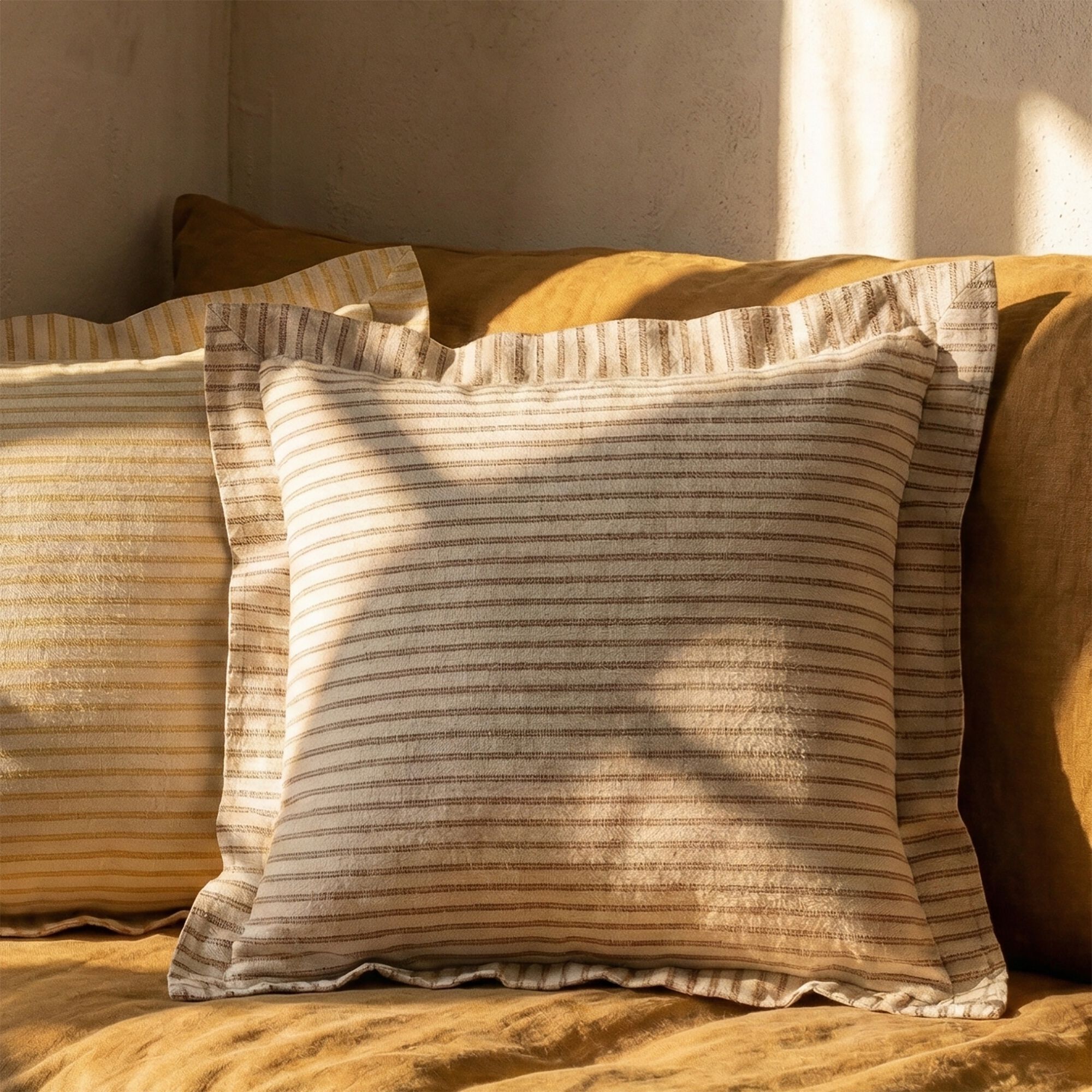 LAURET - Coussin rayé en lin 45x45cm - jaune
