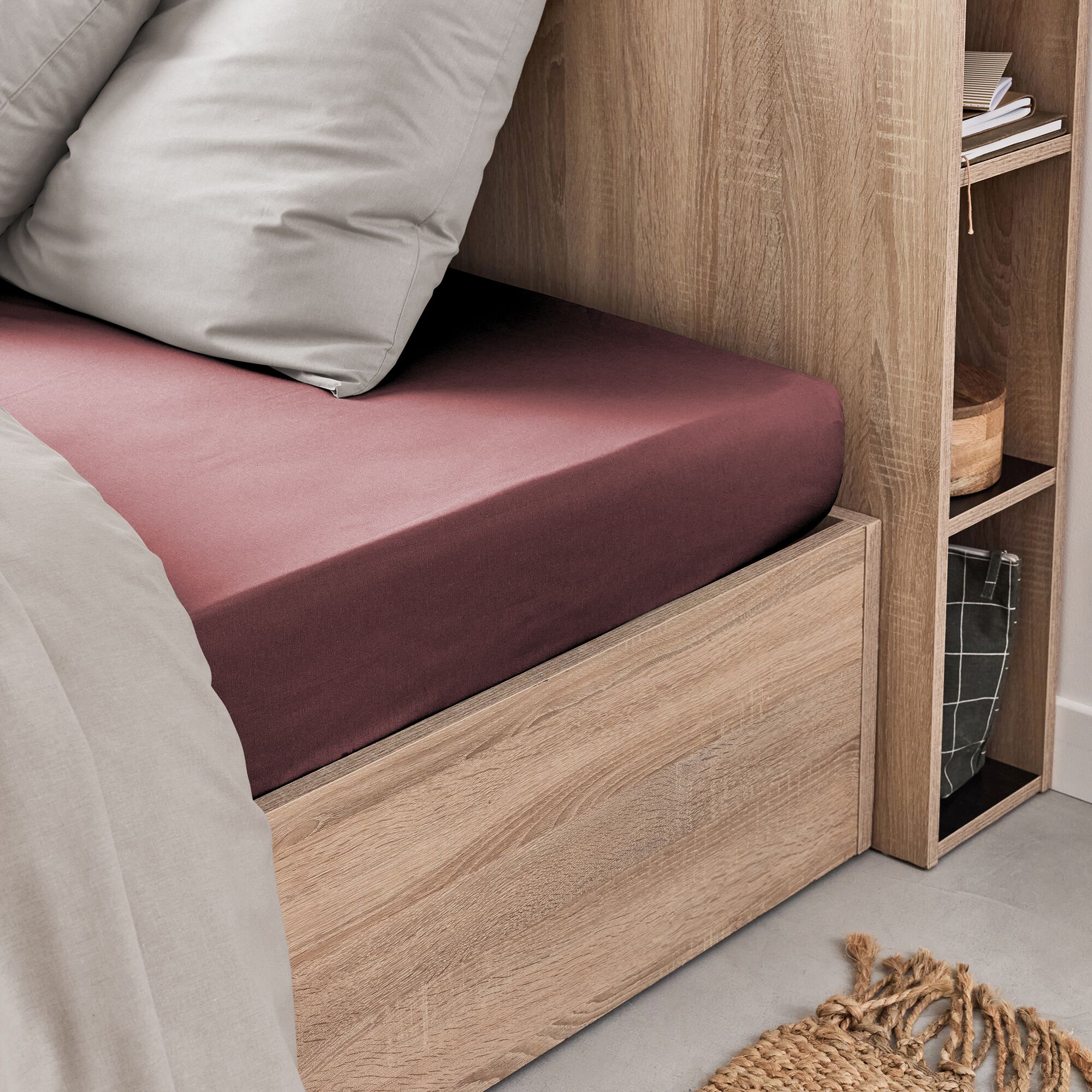 EOLI - Drap housse en coton 180x200cm B30cm - prune