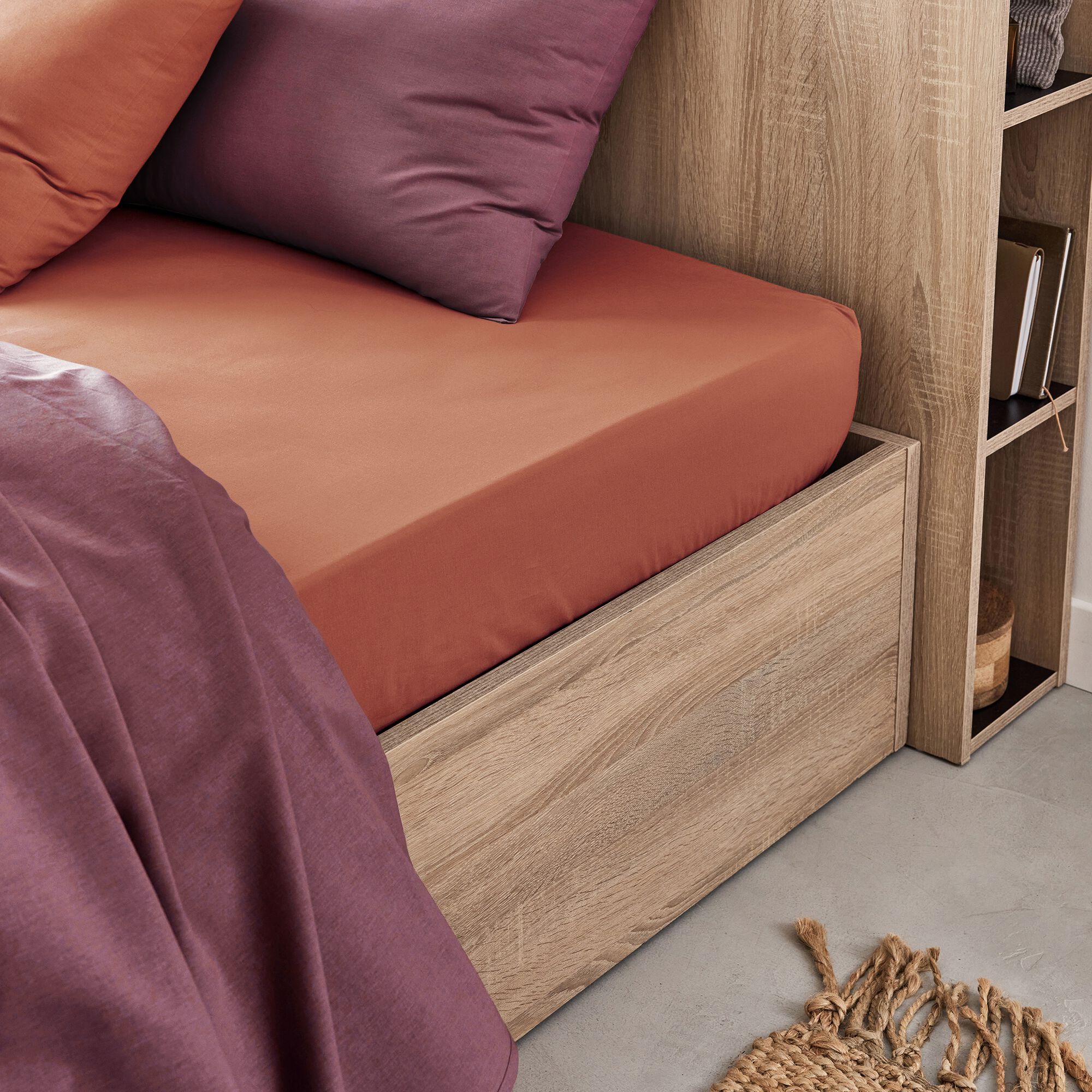 EOLI - Drap housse en coton 90x200cm B30cm - terracotta