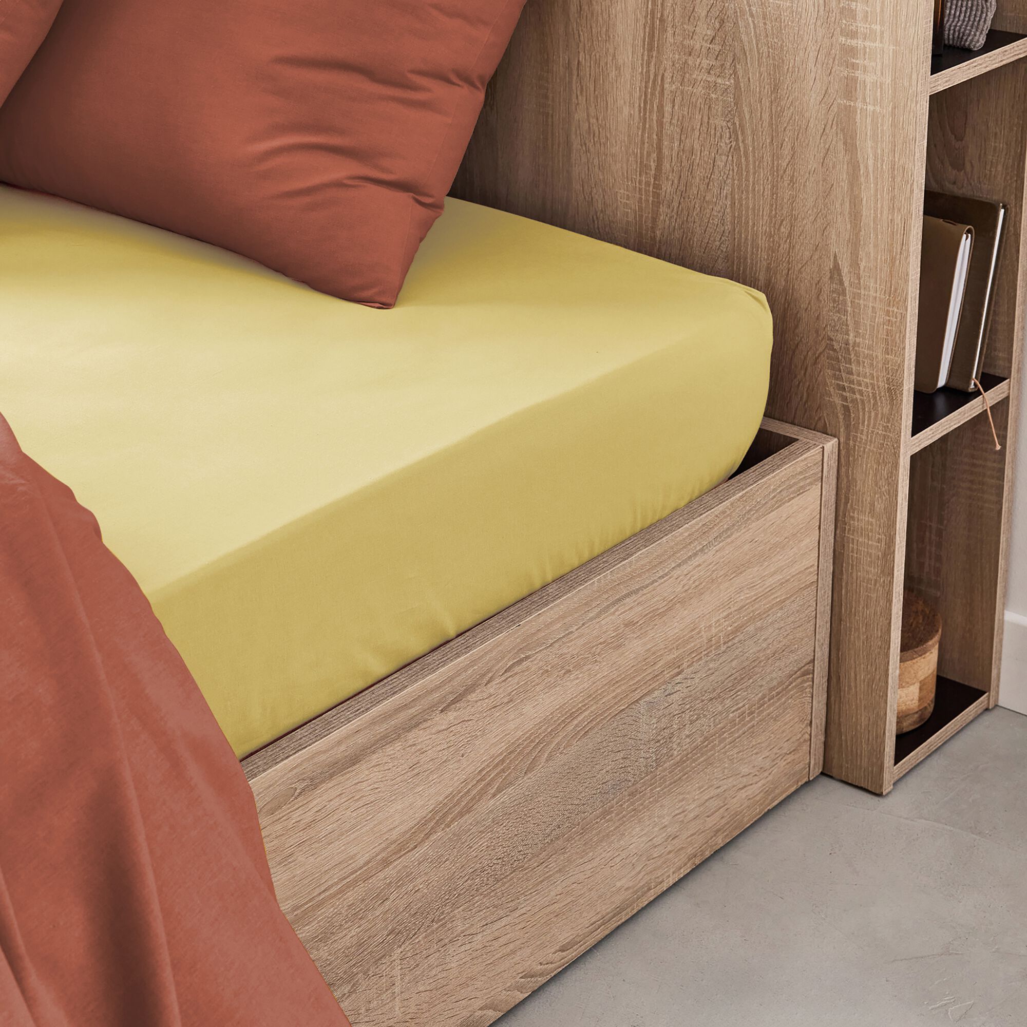EOLI - Drap housse en coton 90x200cm B30cm - jaune paille