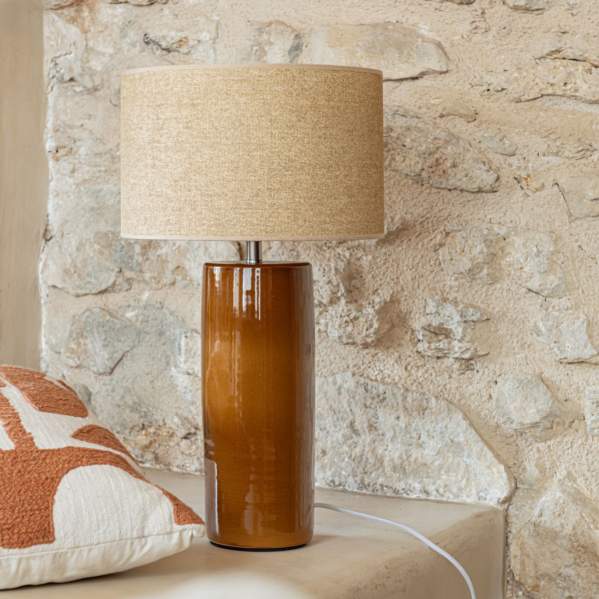 TELIO - Pied de lampe en terre cuite - marron