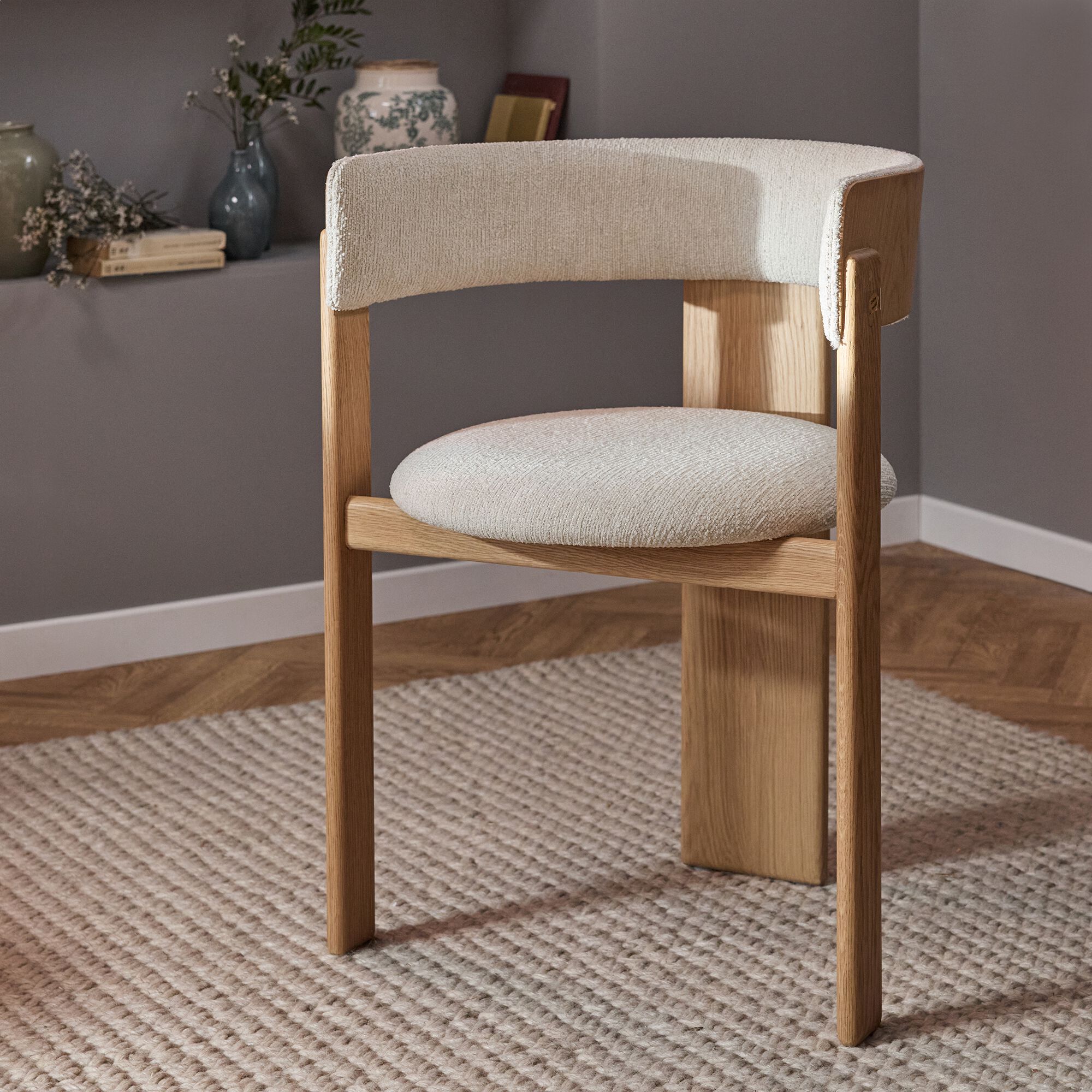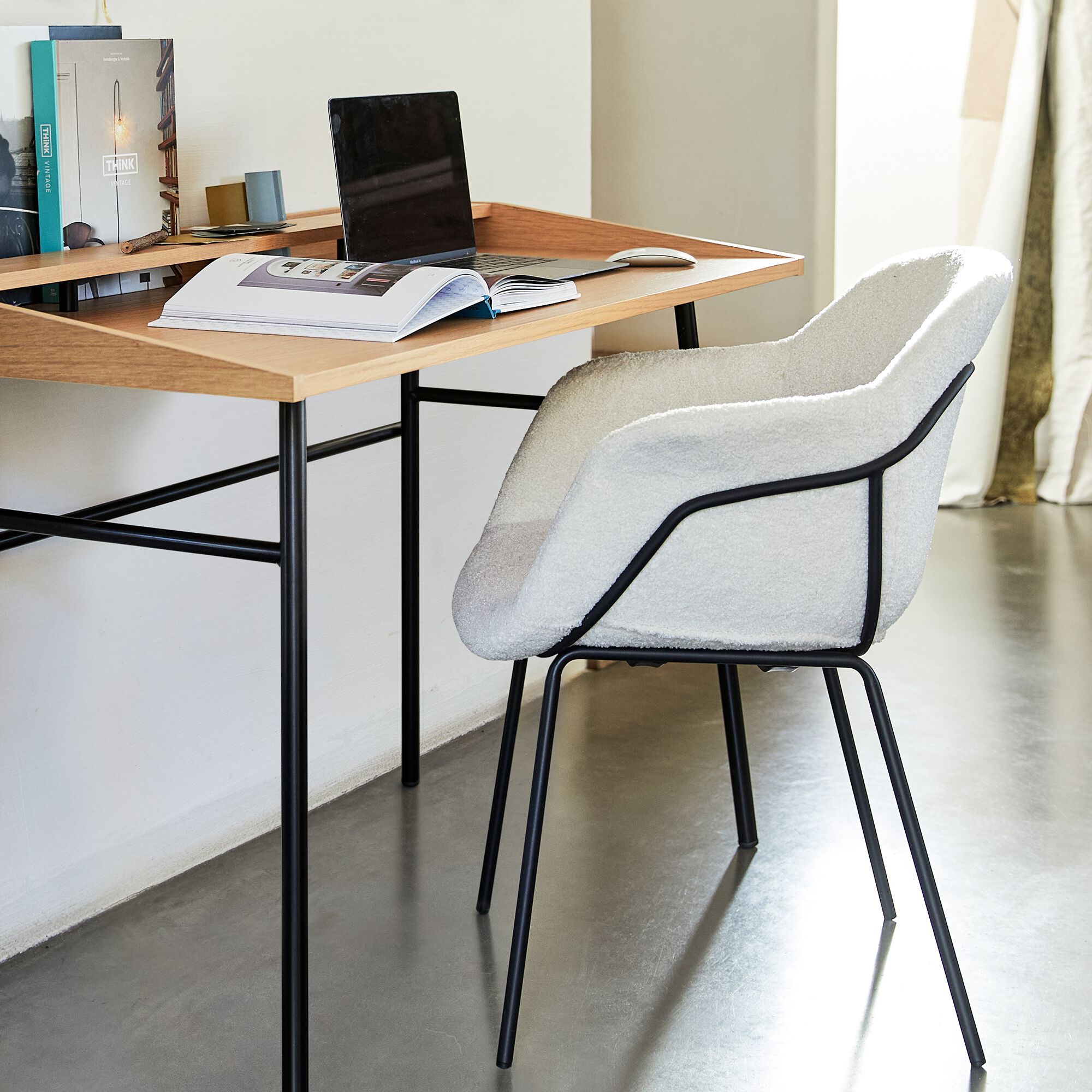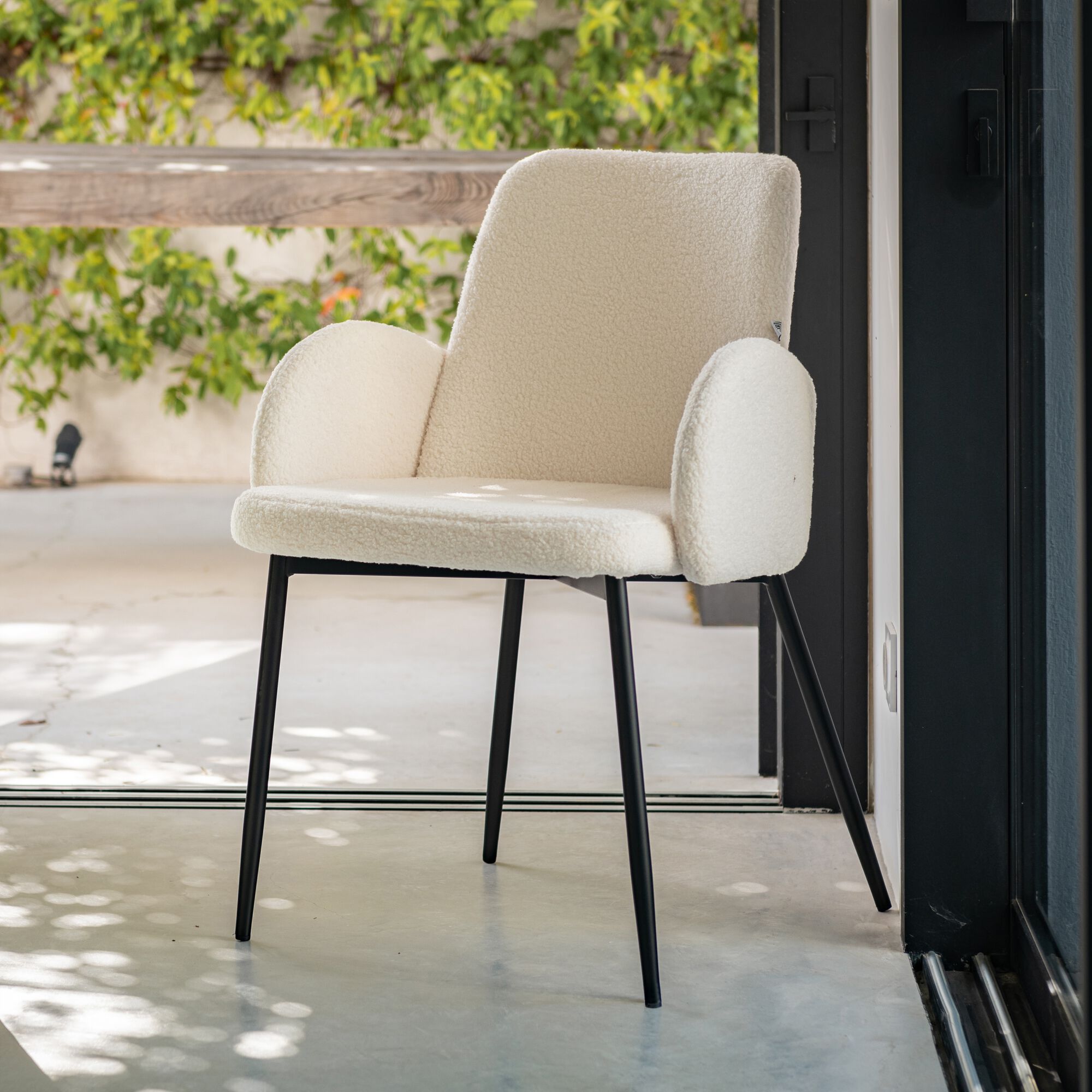 CHLOE - Chaise en tissu bouclette avec accoudoirs - blanc