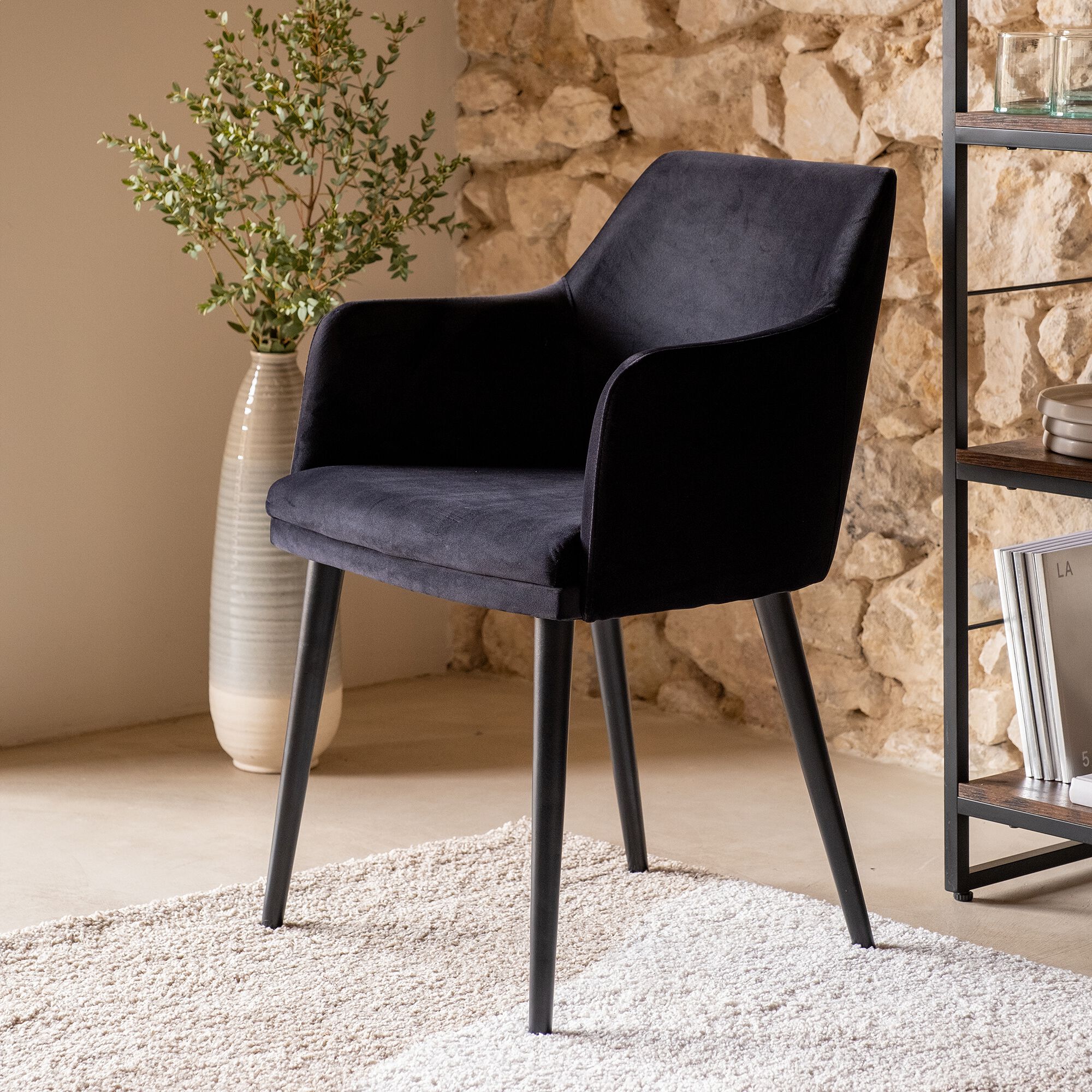 MANE - Chaise en tissu effet velours avec accoudoirs - noir