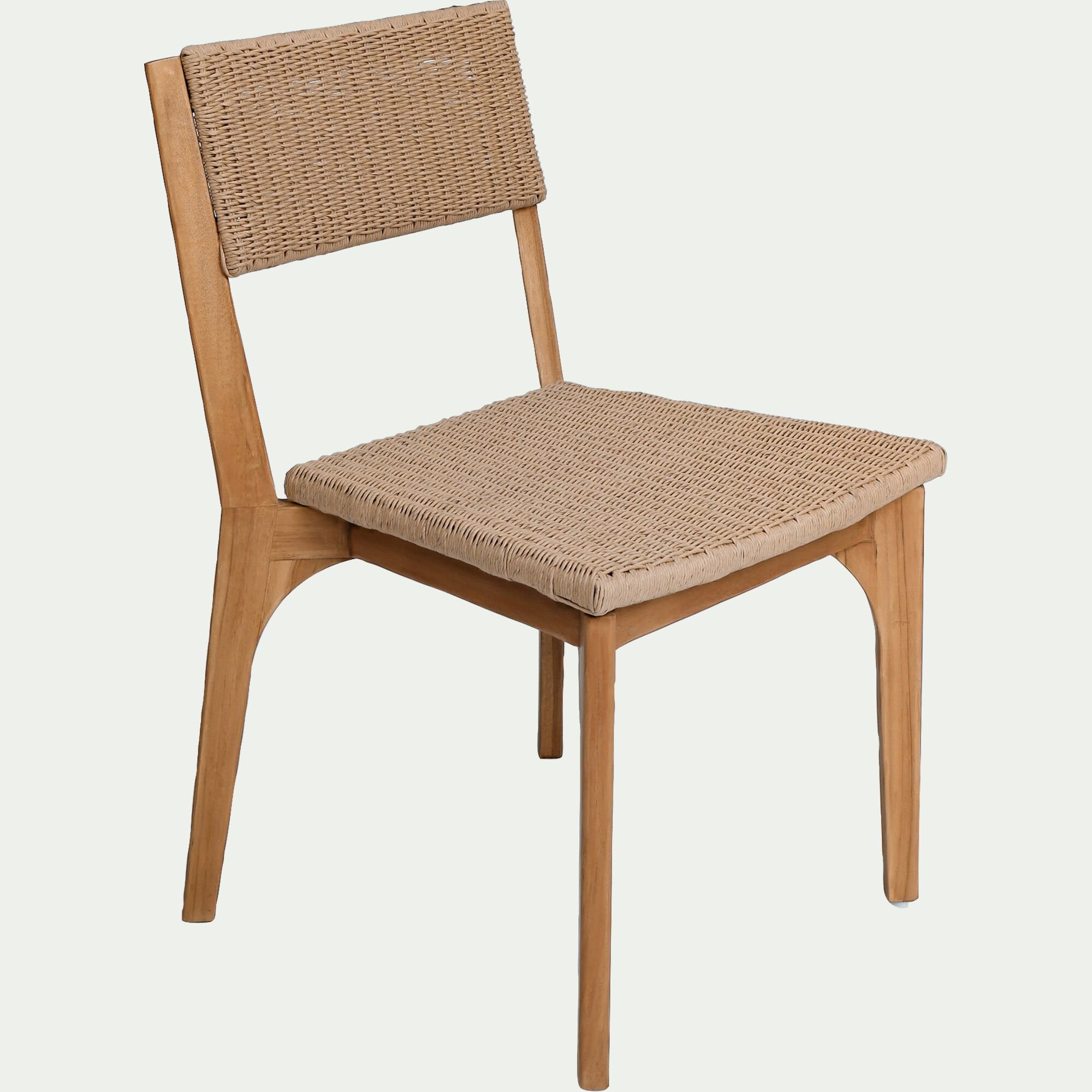 BAHIA - Chaise en teck avec dossier effet tressé - bois foncé